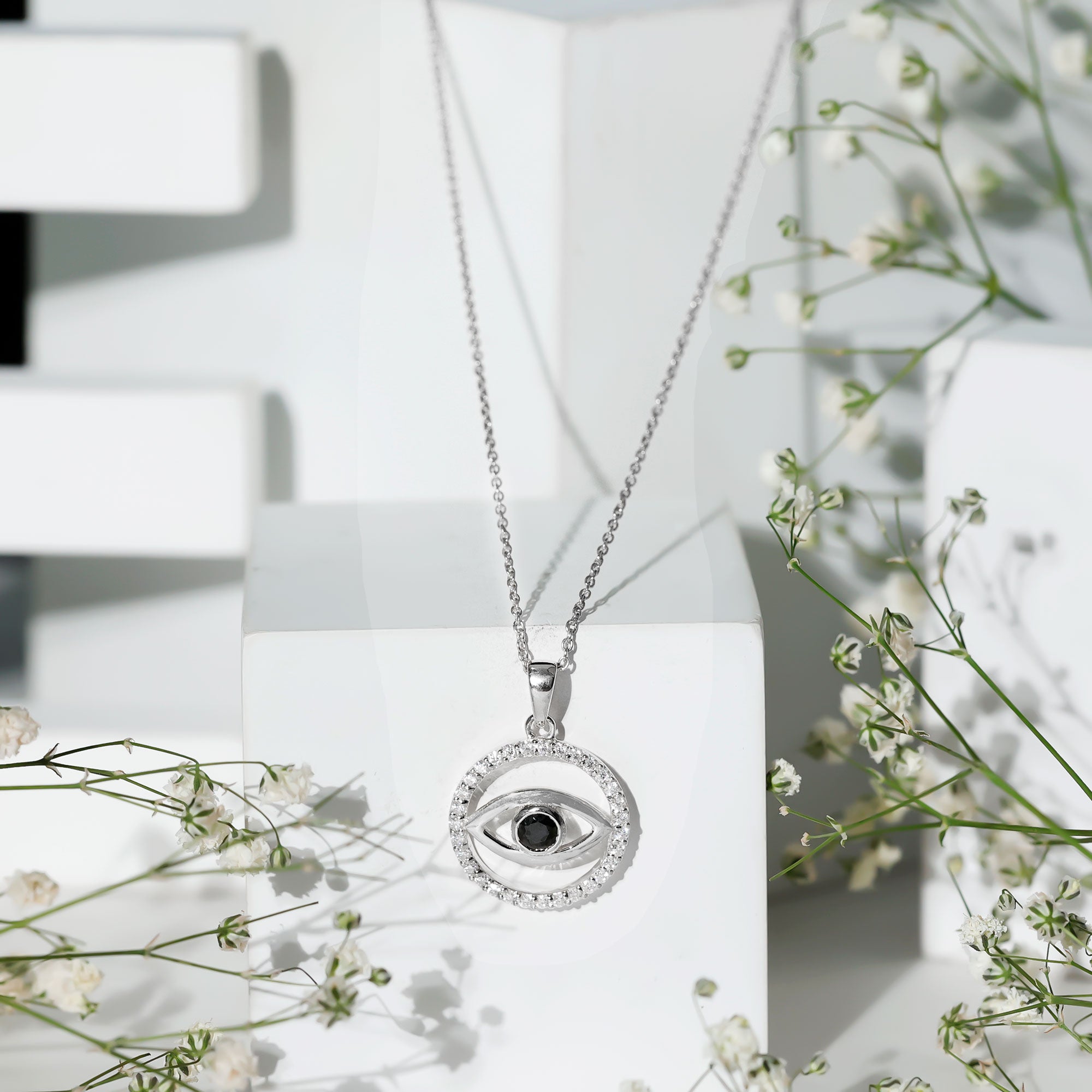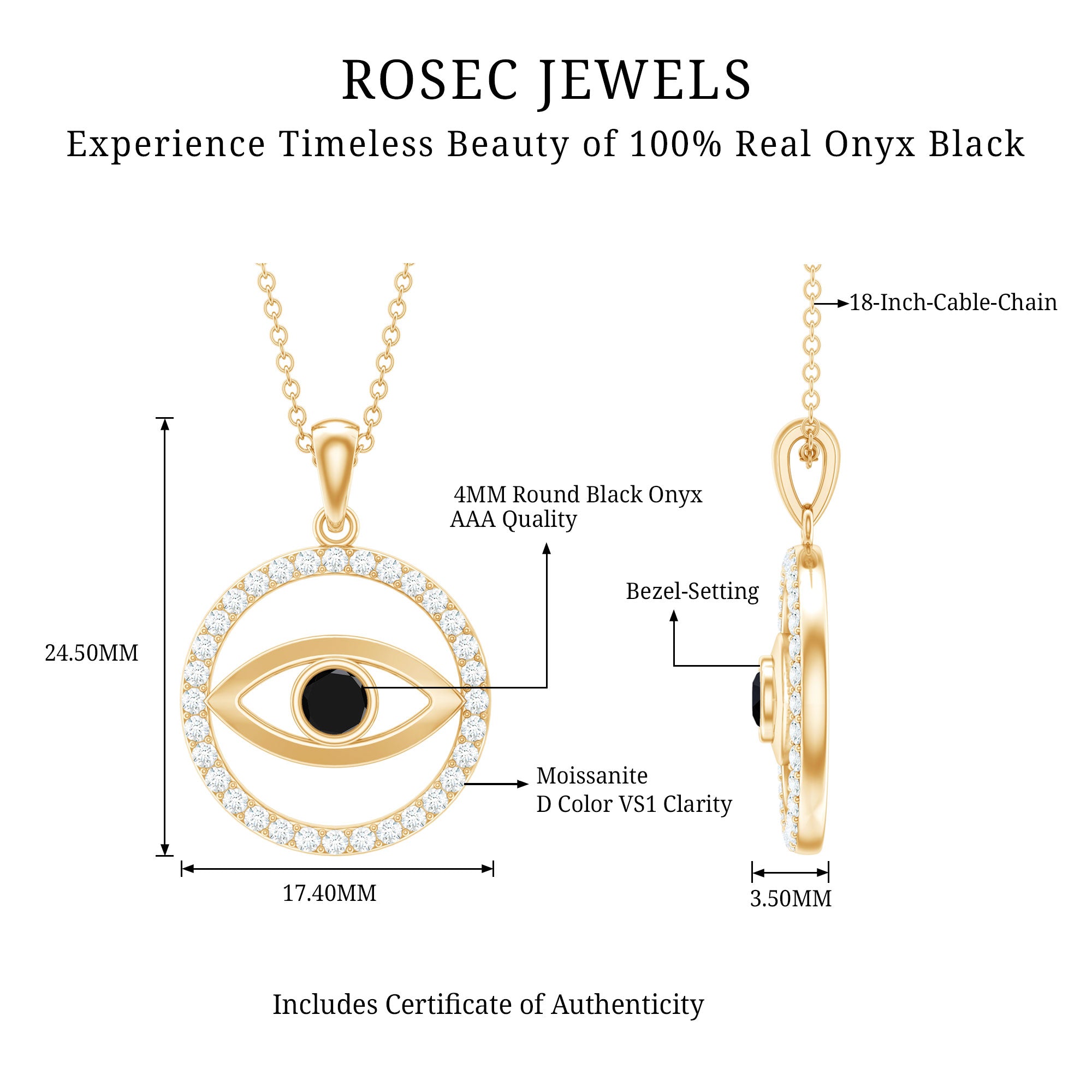 1 CT Black Onyx Evil Eye Pendant with Moissanite Eternity Circle
