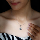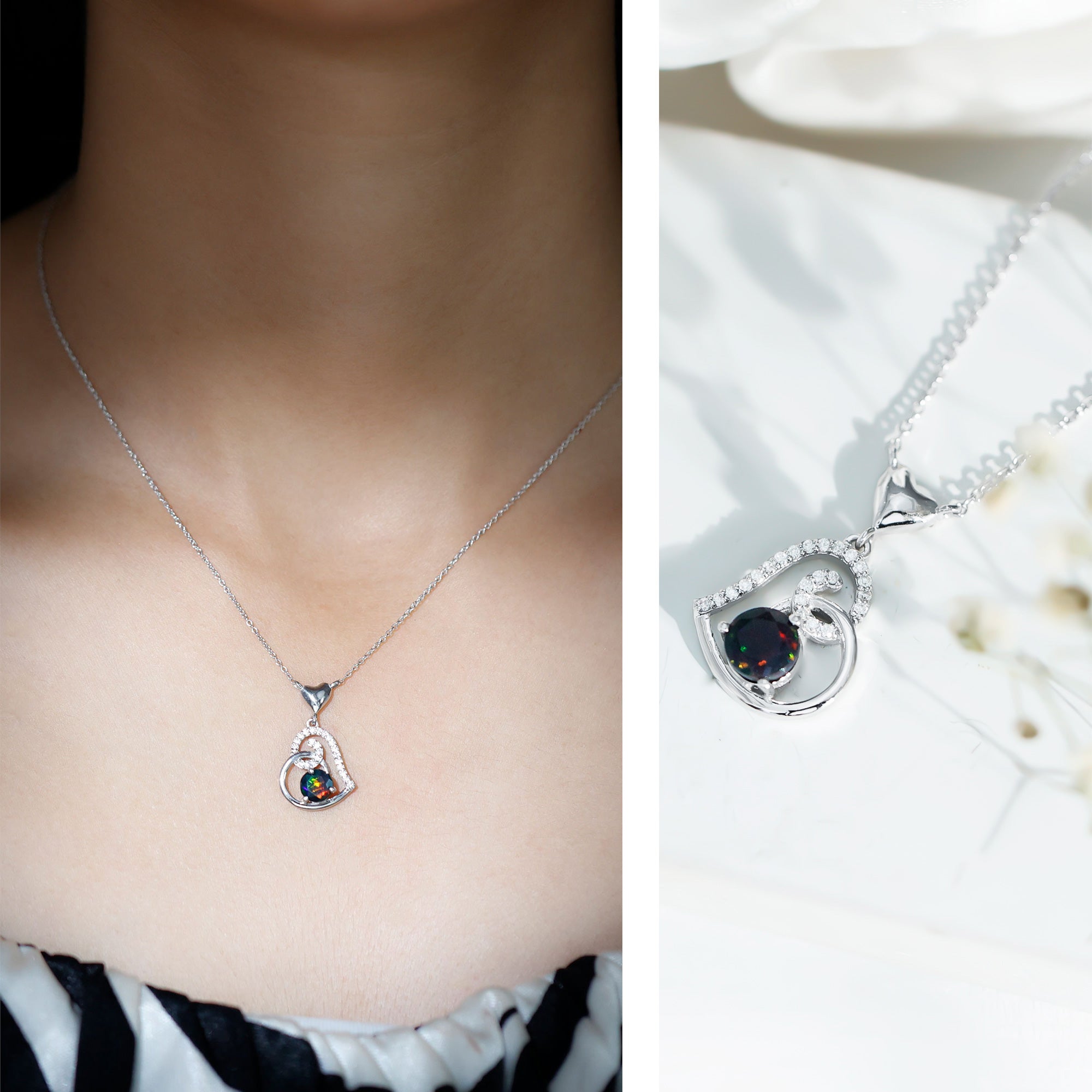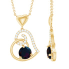 Add a touch of enchantment to your look with this stunning Heart Drop Pendant, crafted in Solid Gold and adorned with a Round Shape Black Opal as a Solitaire in a 3 Prong Setting, and a Round Shape Moissanite in a Surface Prong Setting. Let the brilliance of these precious gemstones light up your world and make you shine.