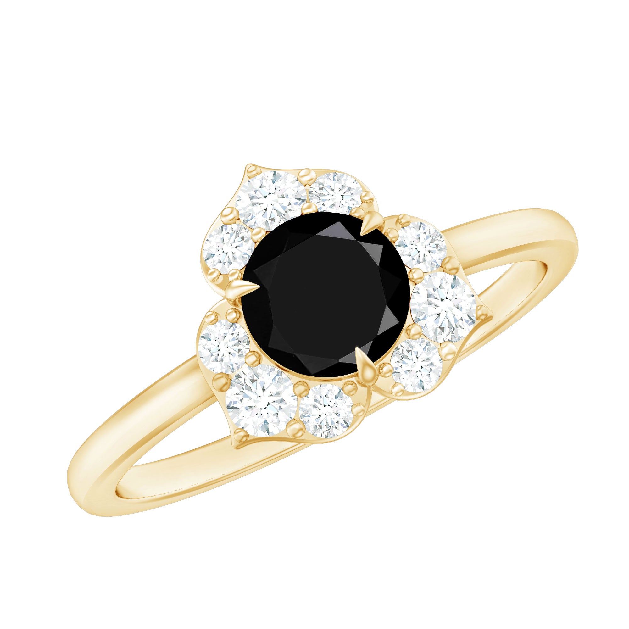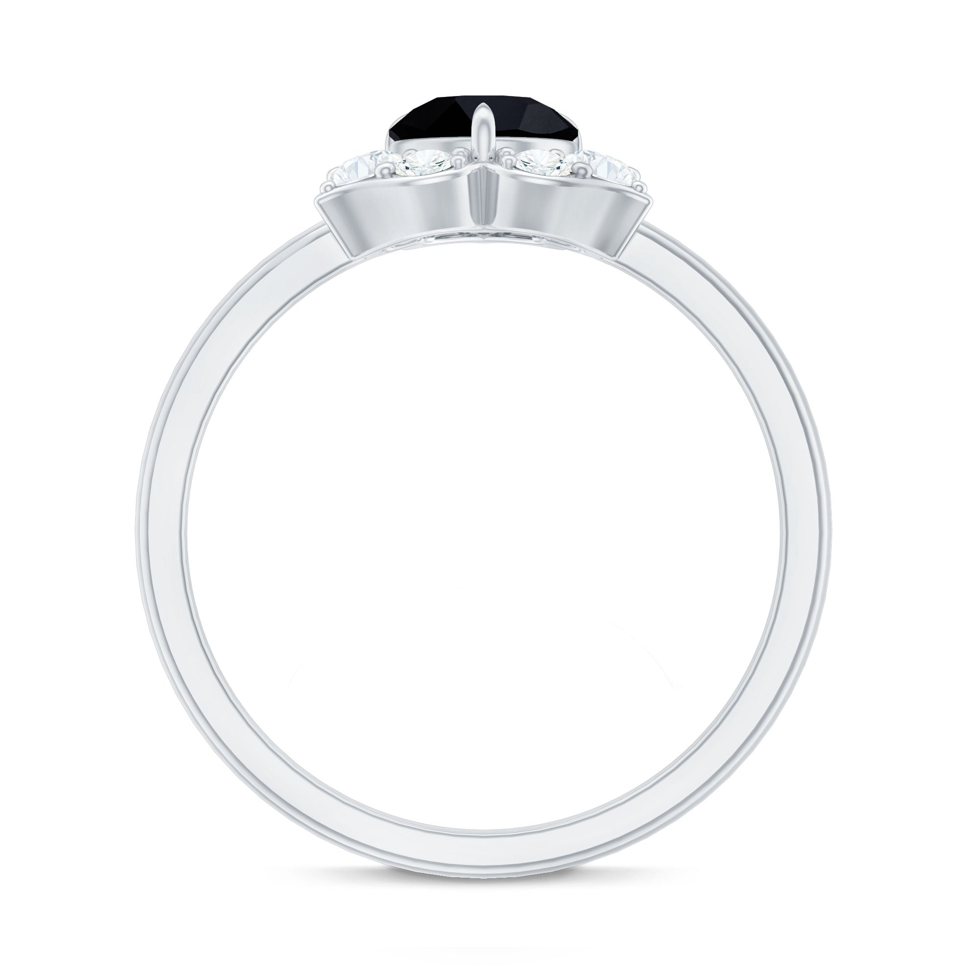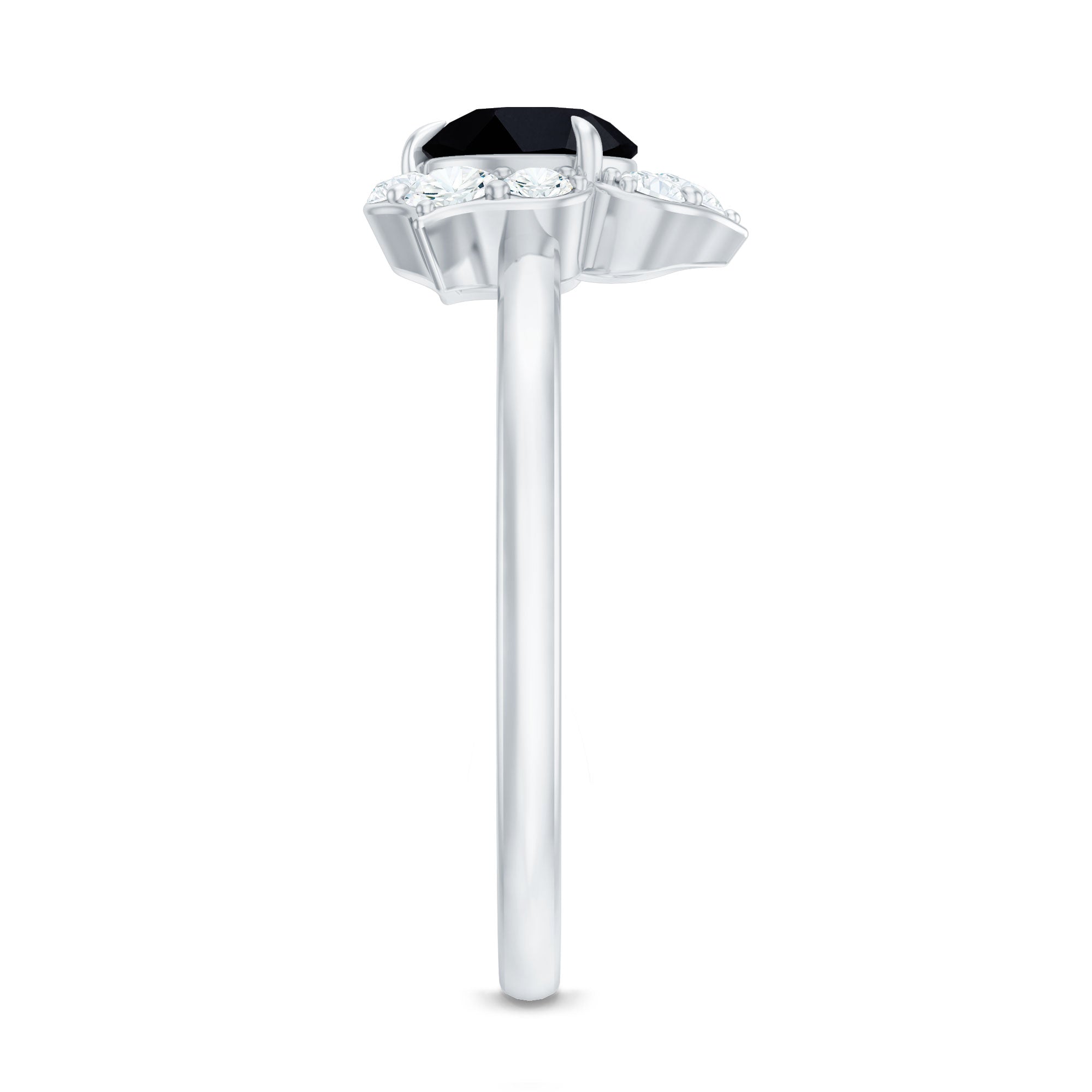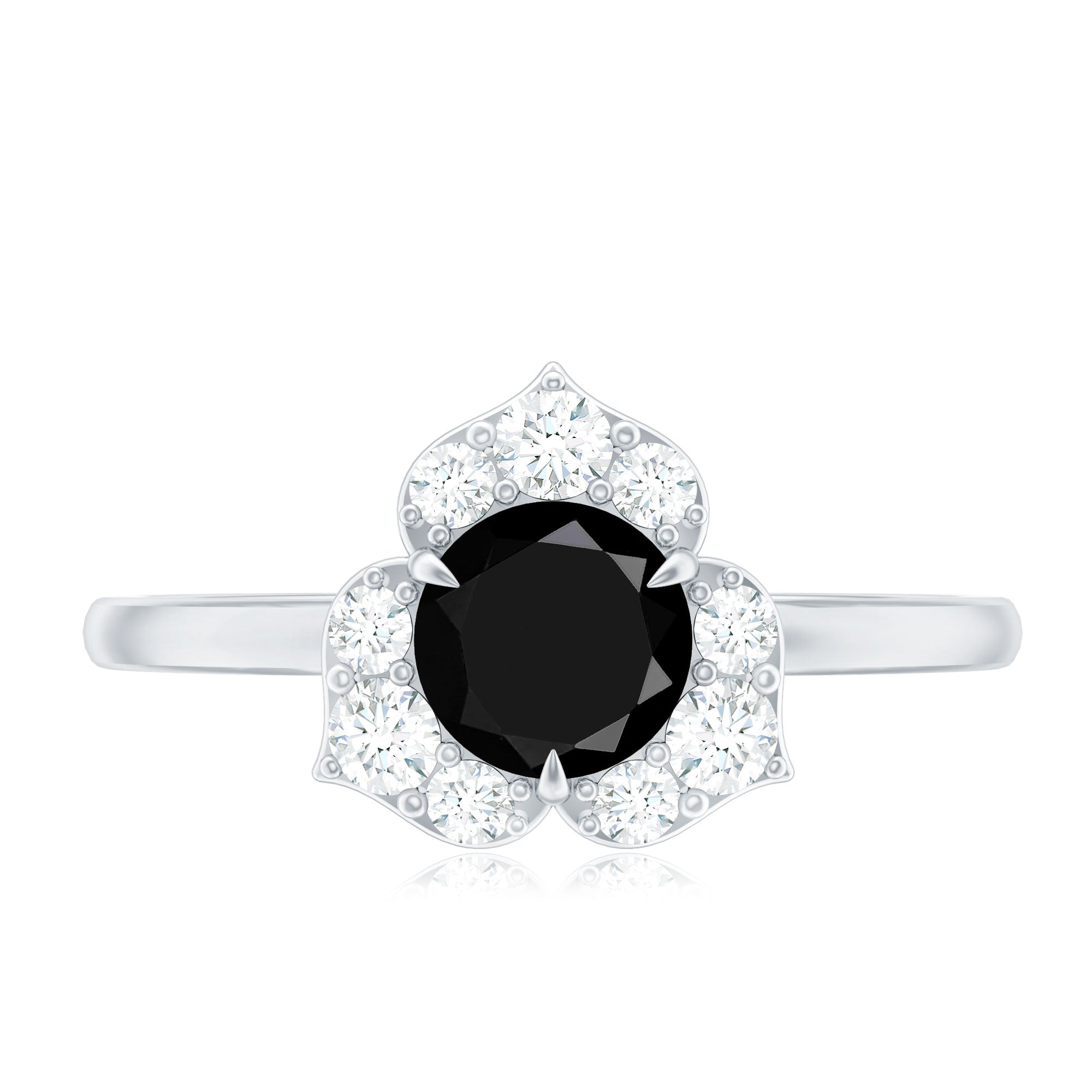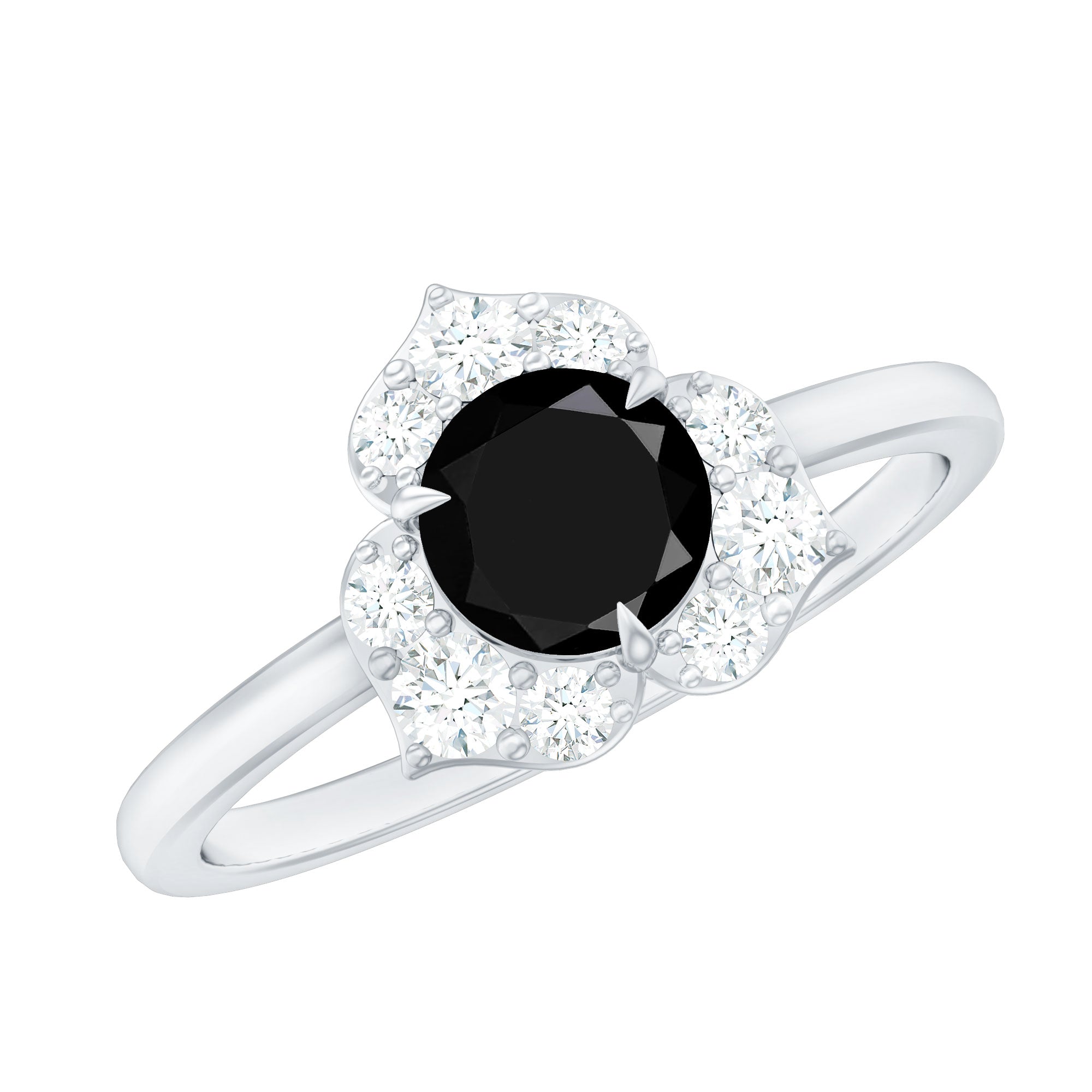 1 CT Black Spinel and Diamond Flower Engagement Ring