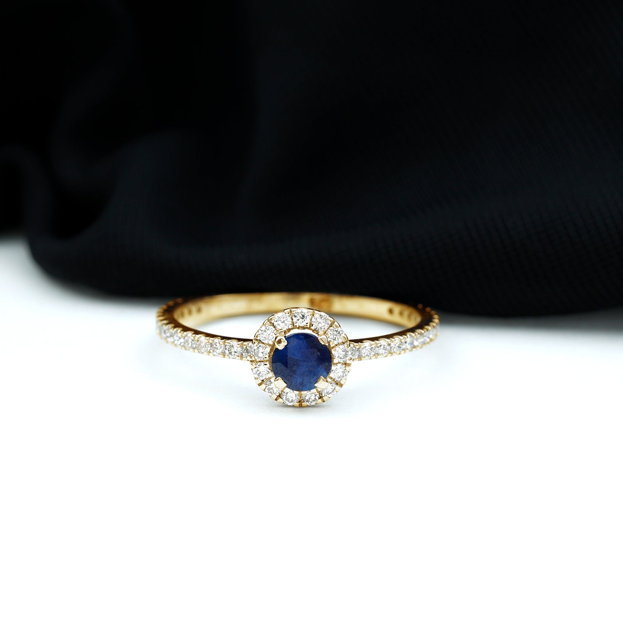 1 CT Blue Sapphire and Diamond Minimal Engagement Ring