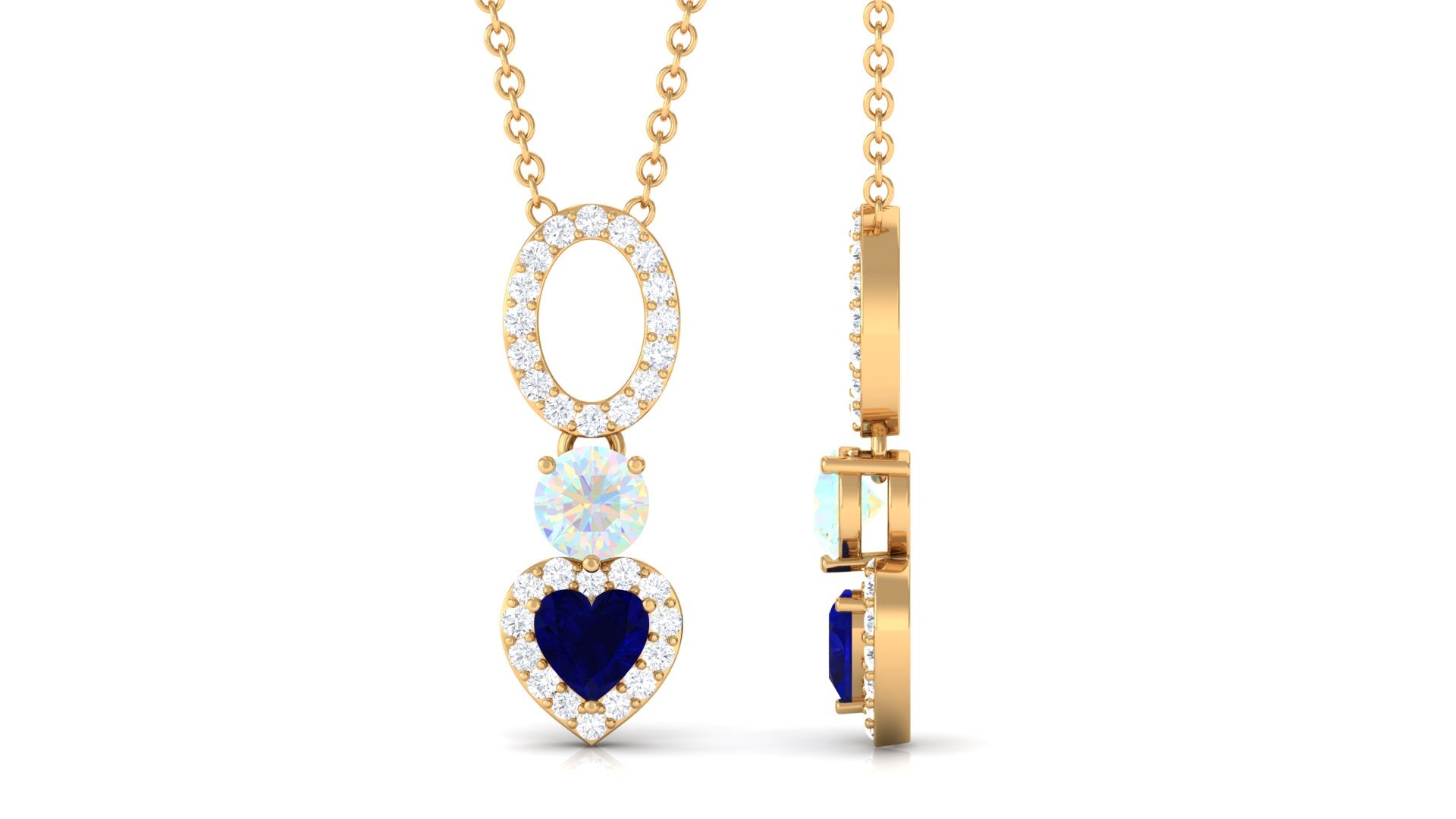 1 CT Blue Sapphire Heart Dangle Necklace with Ethiopian Opal and Moissanite