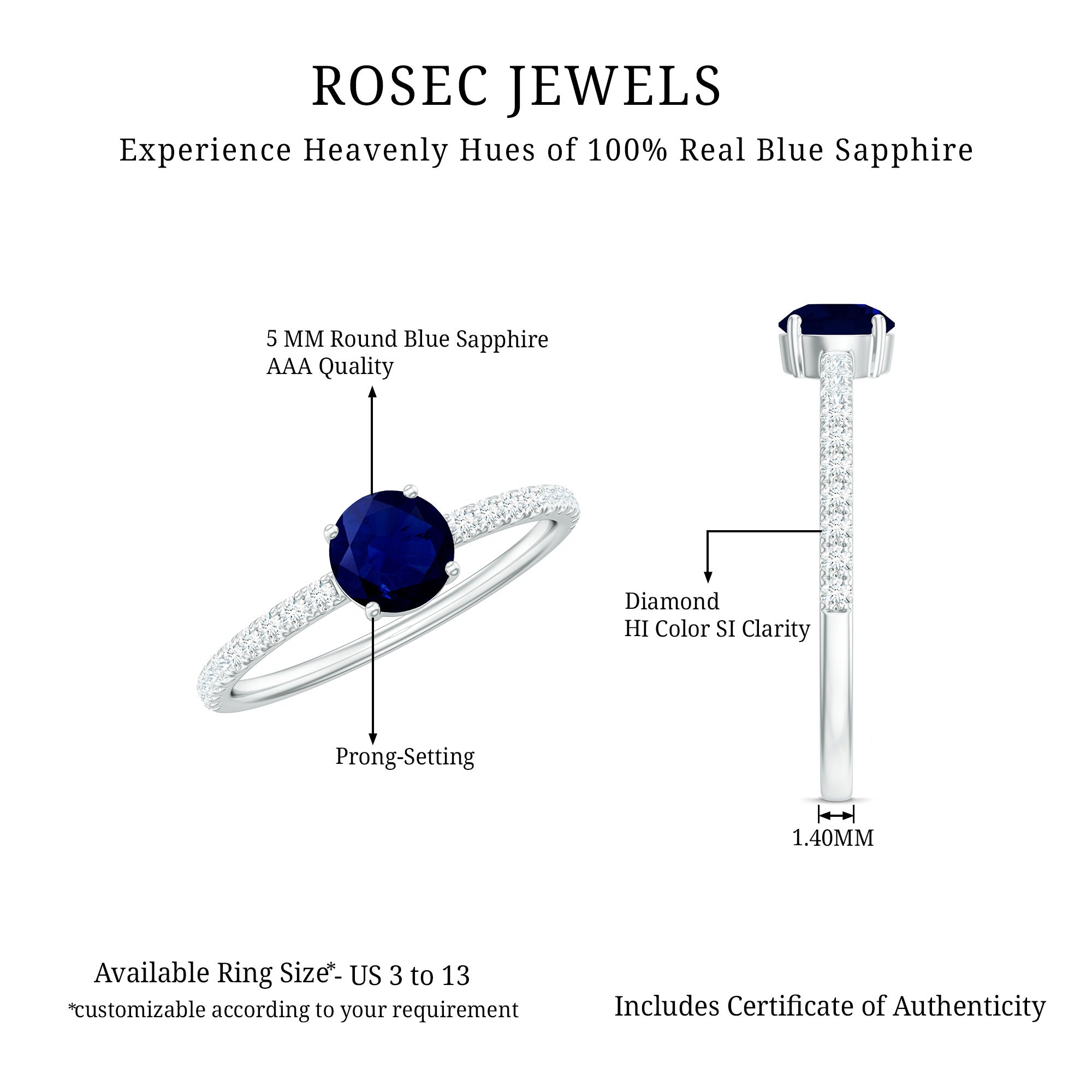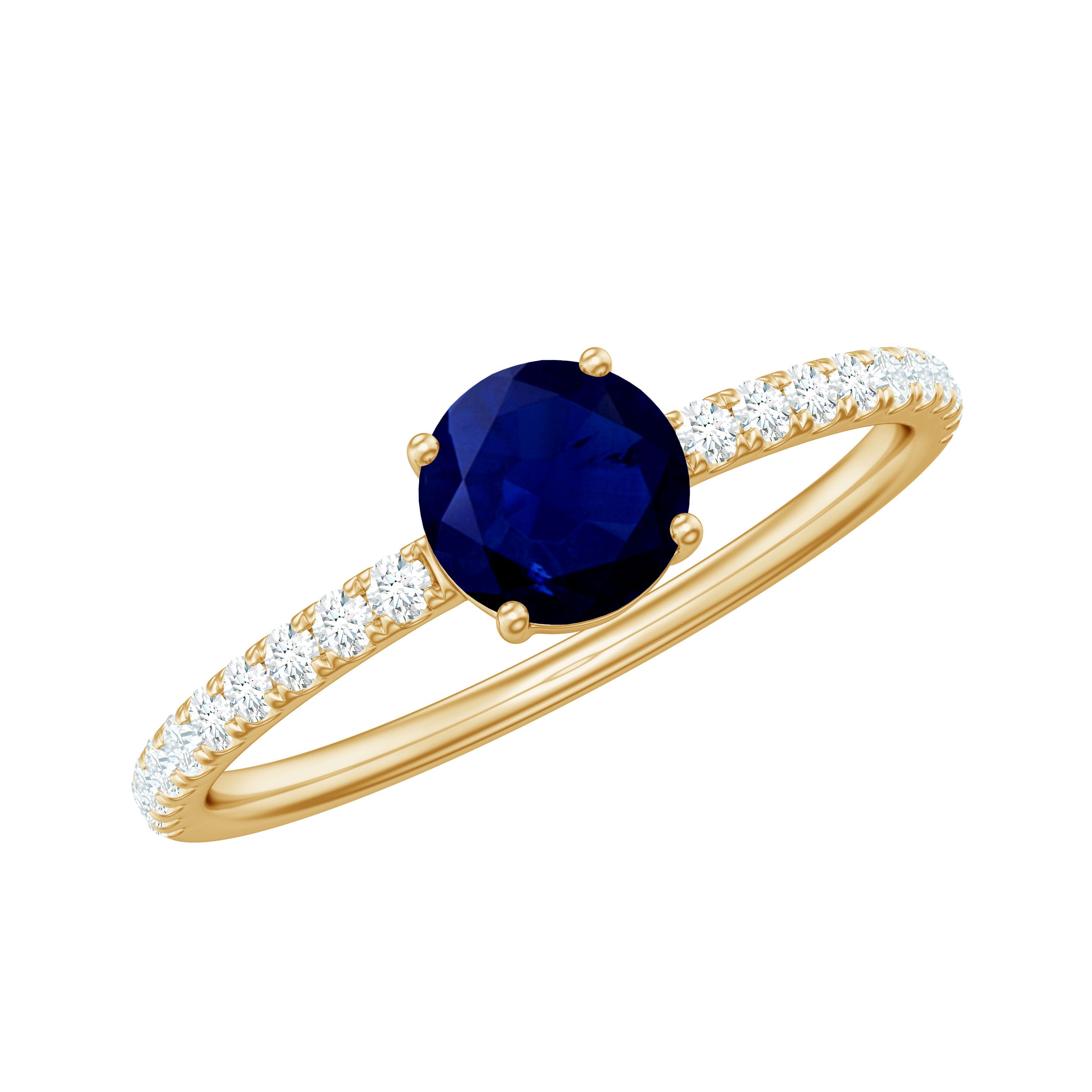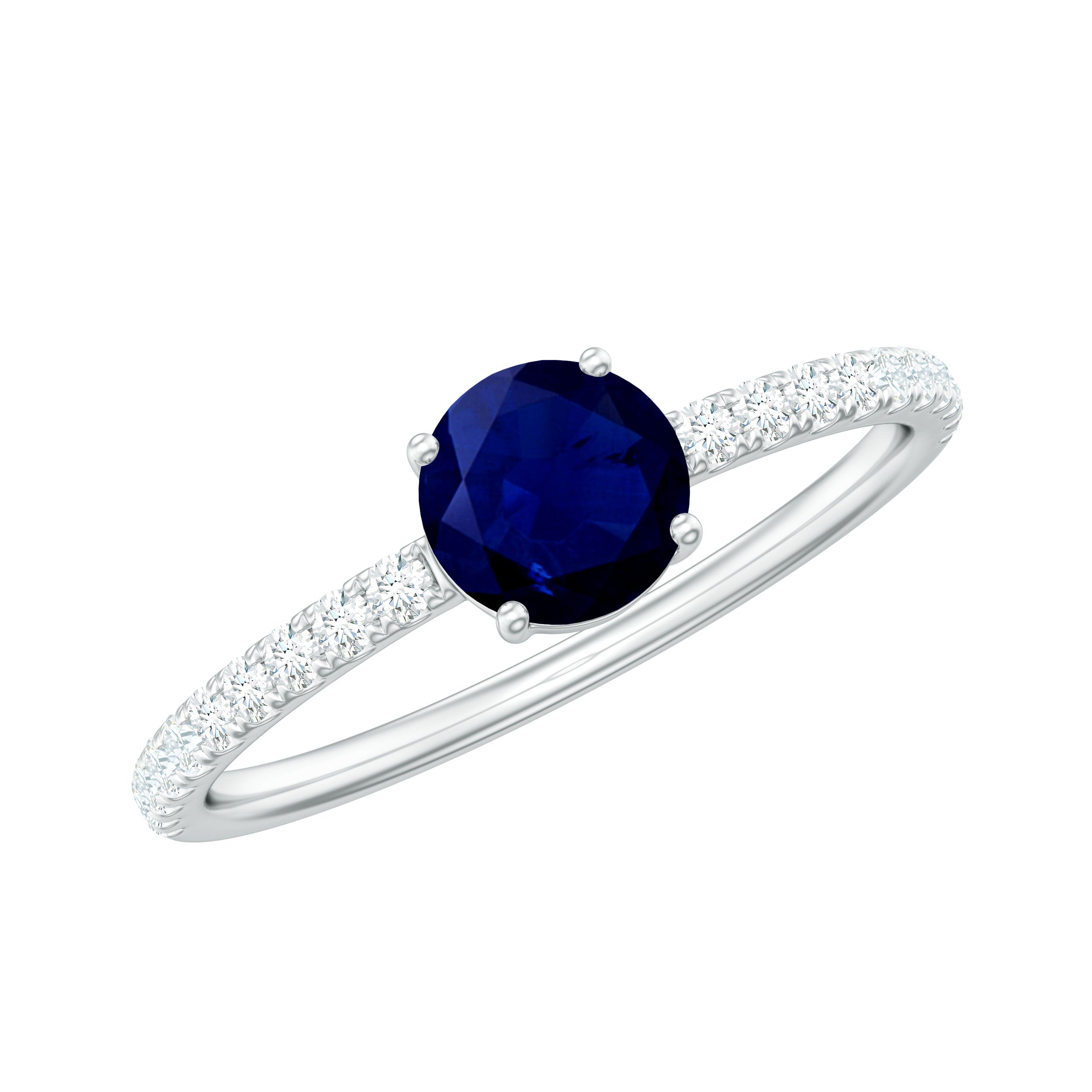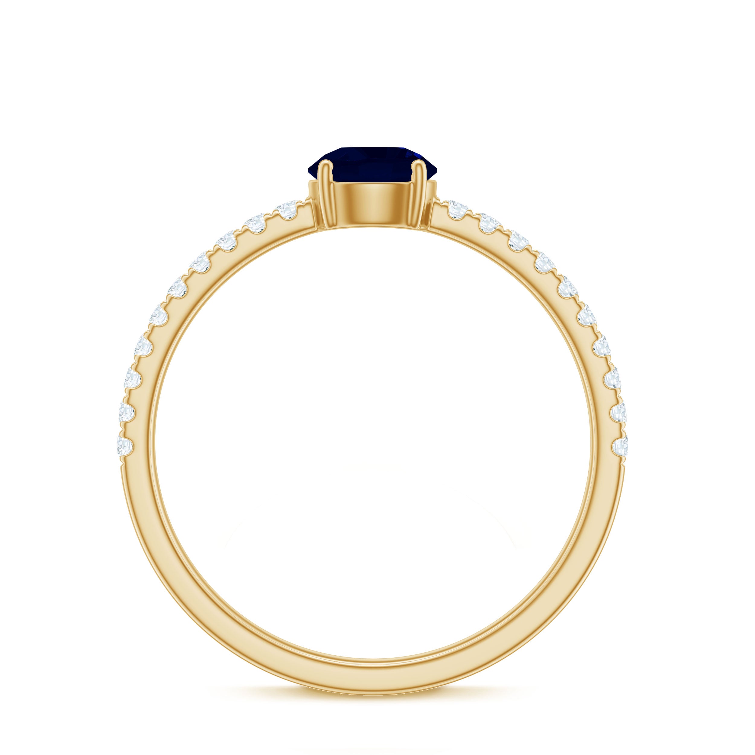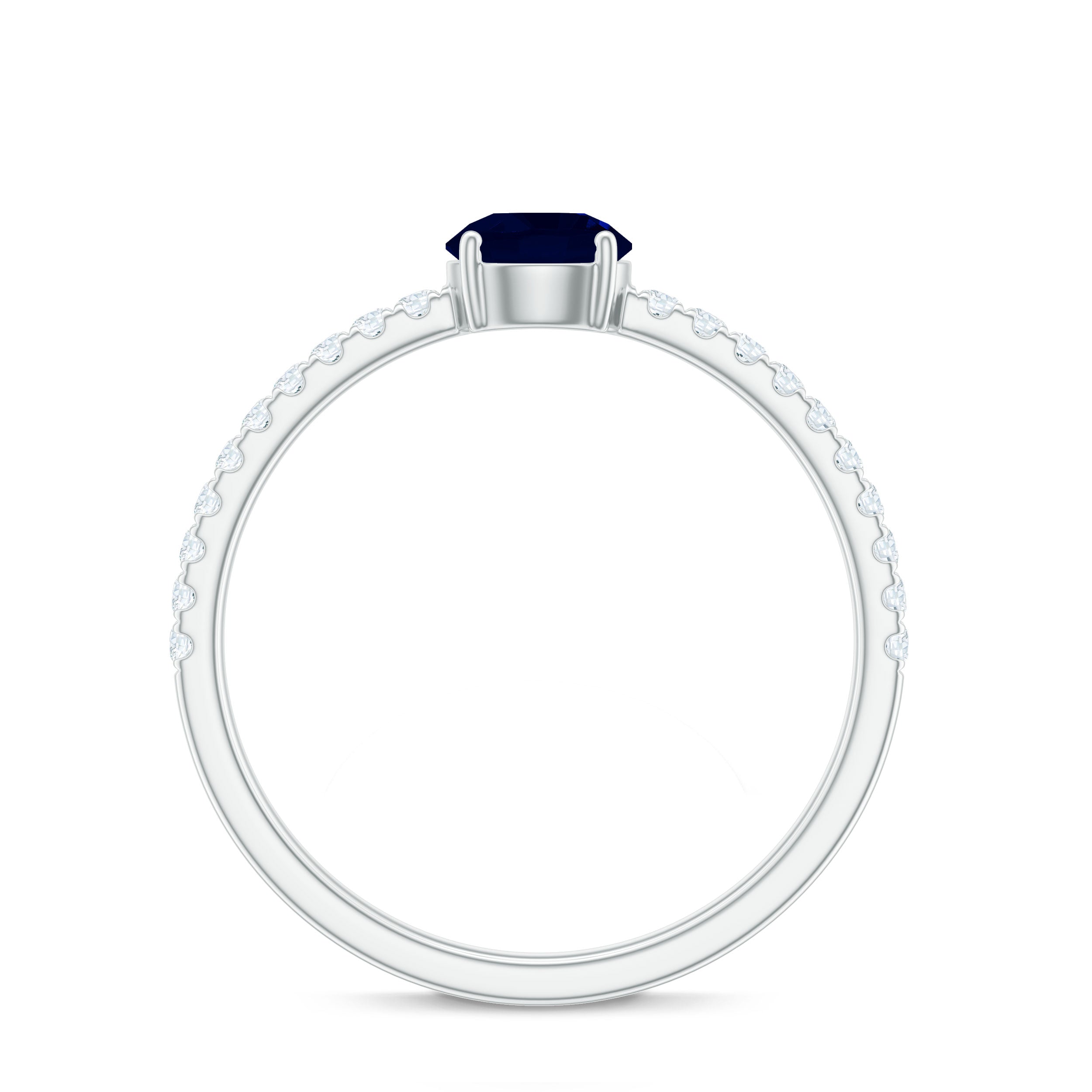 1 CT Blue Sapphire Solitaire Engagement Ring with Diamond