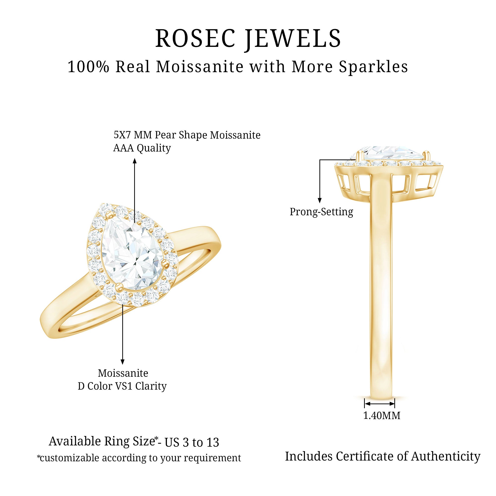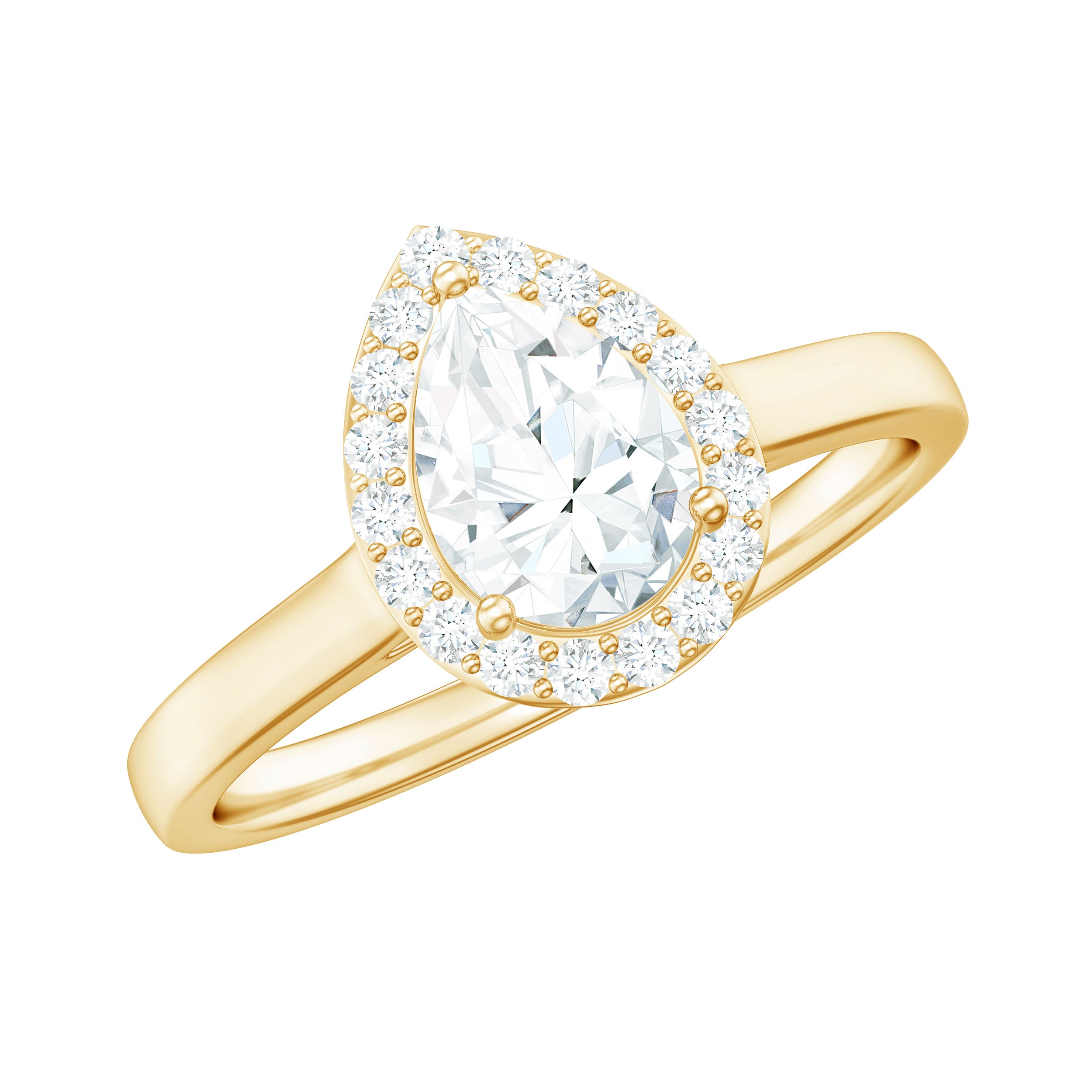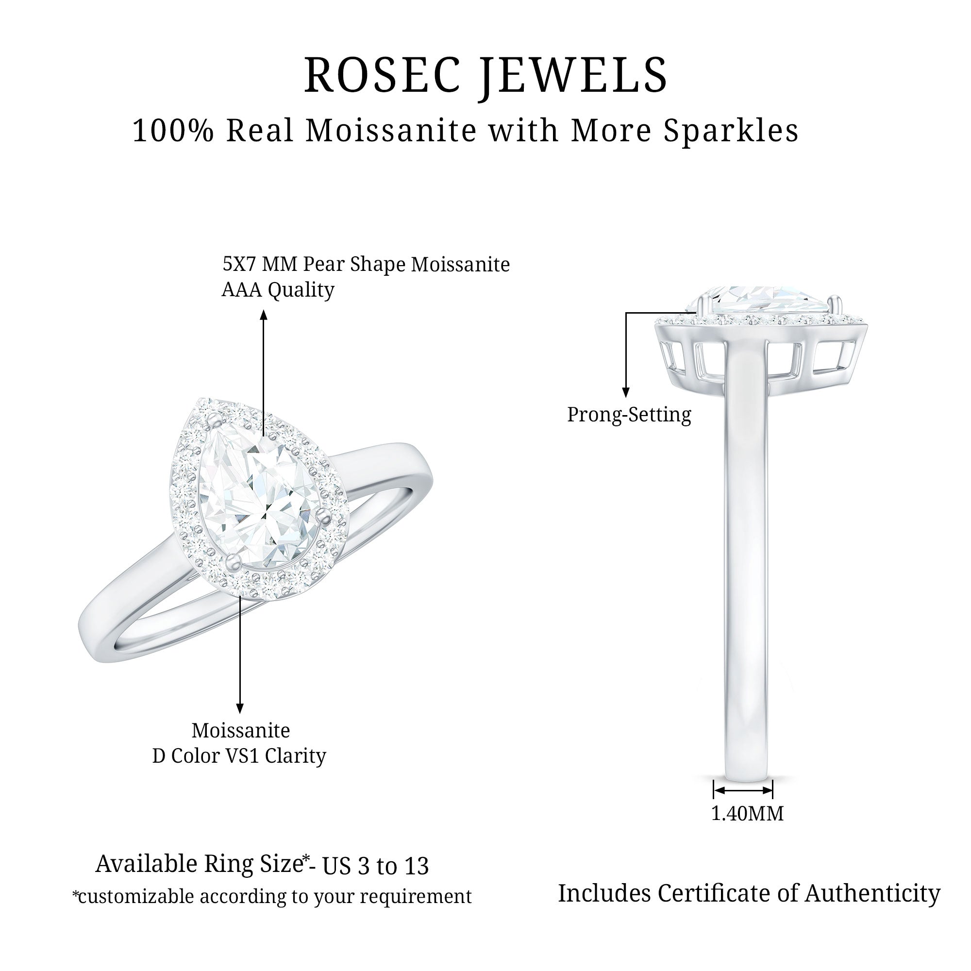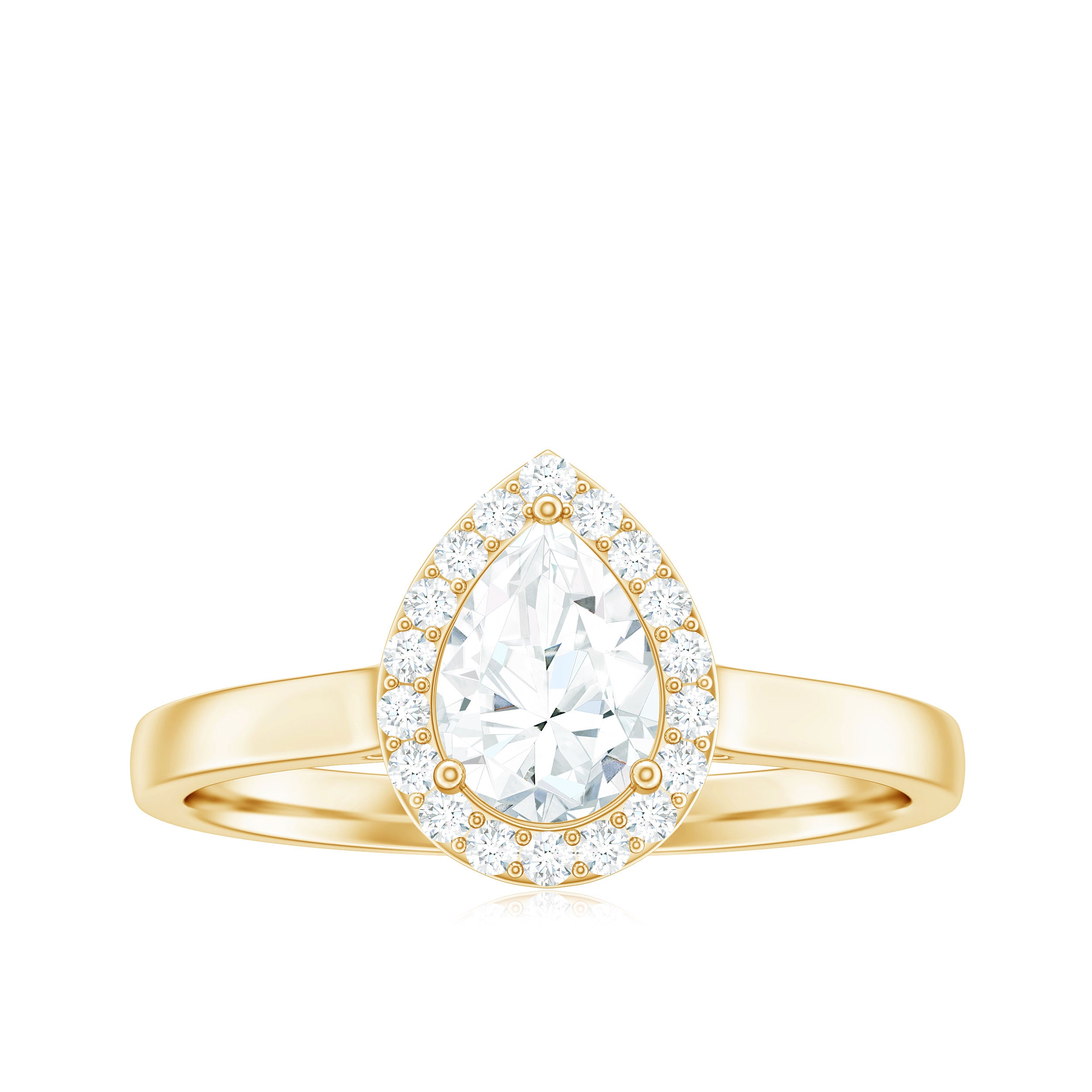 Refine your love story with this elegant and eye-catching Moissanite Engagement Ring, a perfect blend of classic beauty and modern charm. Designed to symbolize timeless romance, this Teardrop Engagement Ring features a sparkling 5X7 MM Pear Shaped Moissanite in a secure prong setting, surrounded by a shimmering halo that adds depth and brilliance to the center stone. The soft, luminous glow of moissanite brings out a radiant sparkle that captures attention without being too flashy. With D color and VS1 clarity Moissanite, it creates a stunning light reflection that enhances its brilliance. Delivered in a signature jewelry box, this Pear Shaped Engagement Ring is a thoughtful gift for a variety of special occasions like engagements, weddings, anniversaries, birthdays, or even as a romantic surprise. Whether you are celebrating your fiancée, wife, girlfriend, or mother, this Moissanite Halo Ring makes a meaningful and lasting impression. Expertly crafted by skilled artisans, it is not just a piece of jewelry but a symbol of love and commitment made to be treasured for a lifetime.