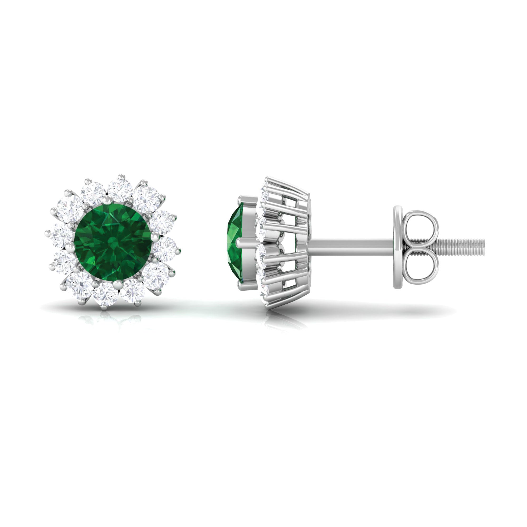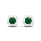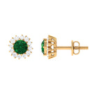 A Celebration without a Gift is Incomplete, a Gift of Jewelry will bring smiles of delight on Valentines day. Explore these Stud Earrings adorned with Round Shape Created Emerald in Prong Setting with a Halo of dainty Diamond, crafted in Gold Metal.