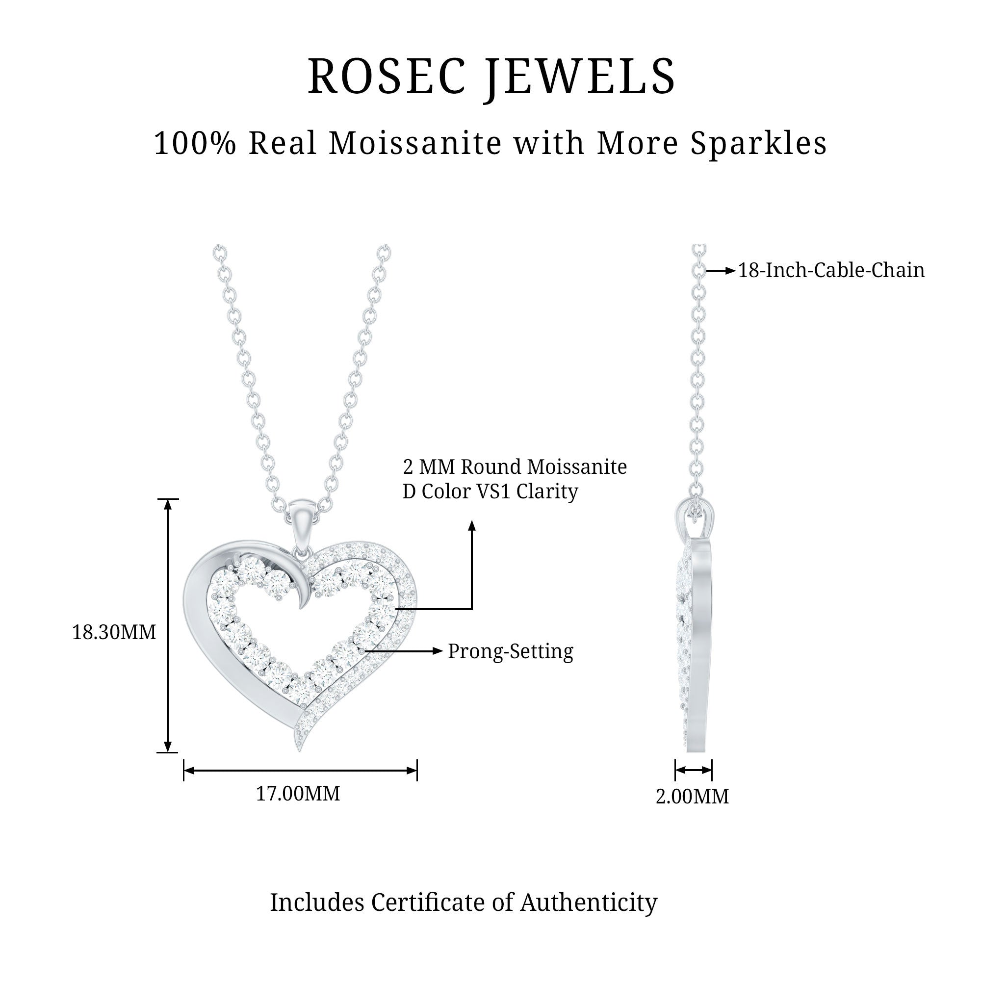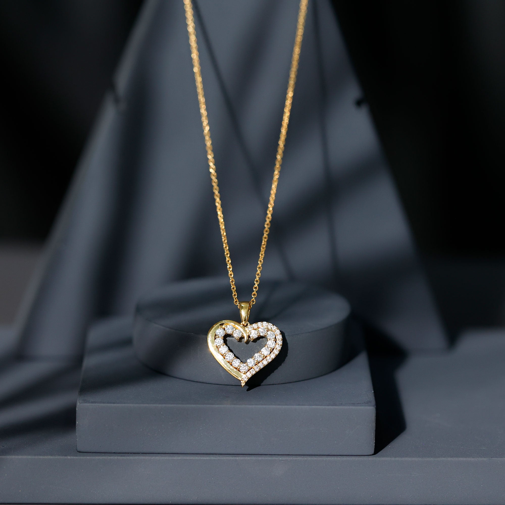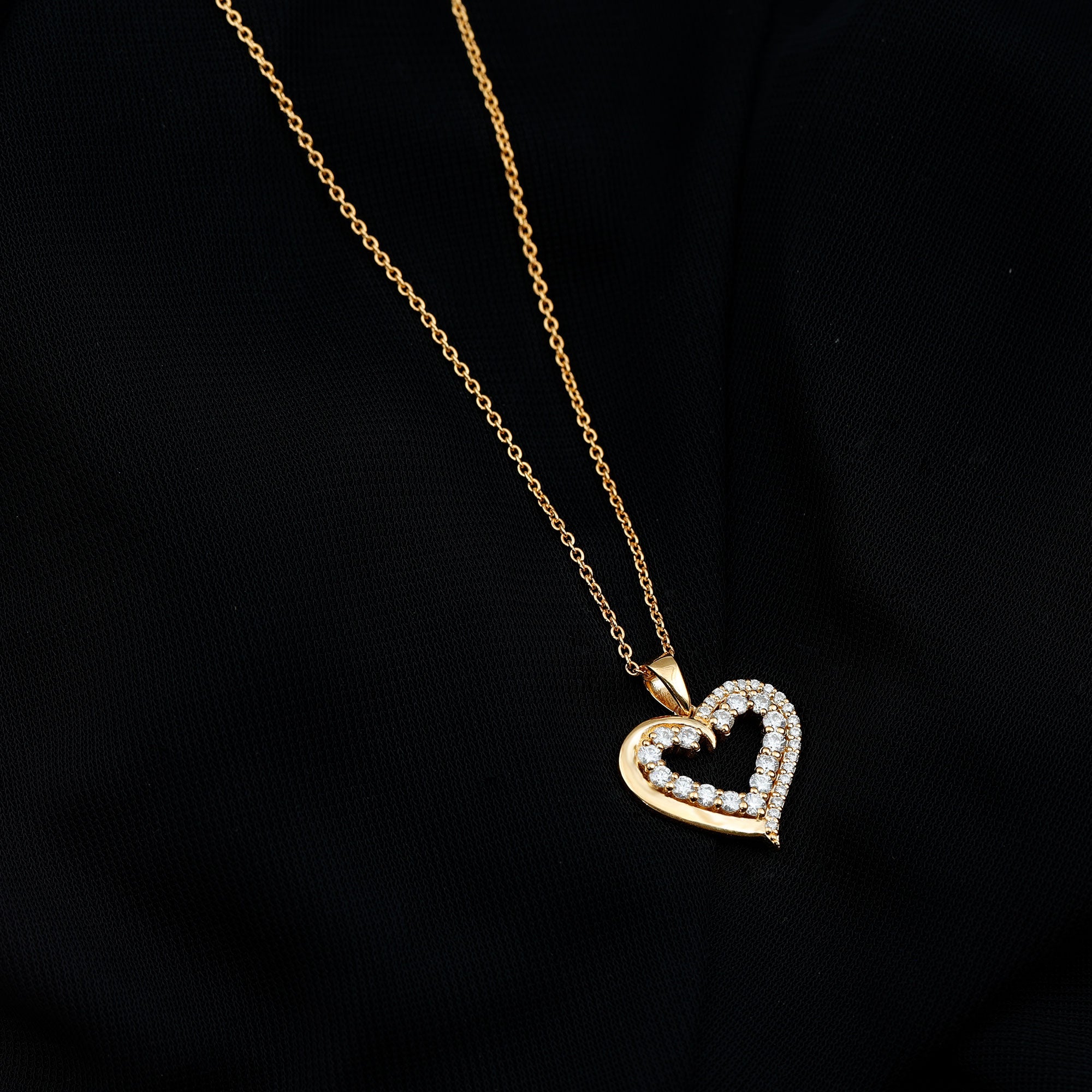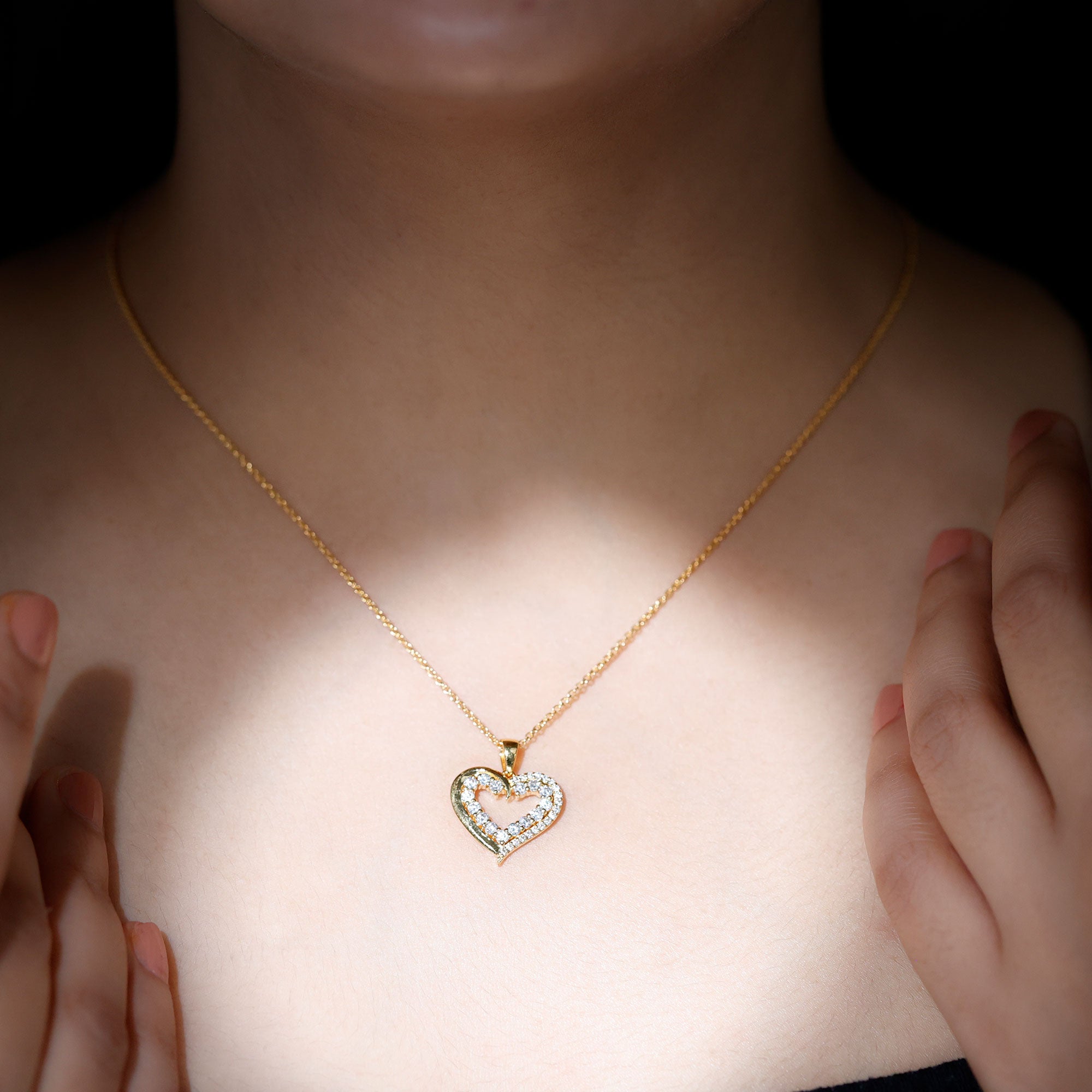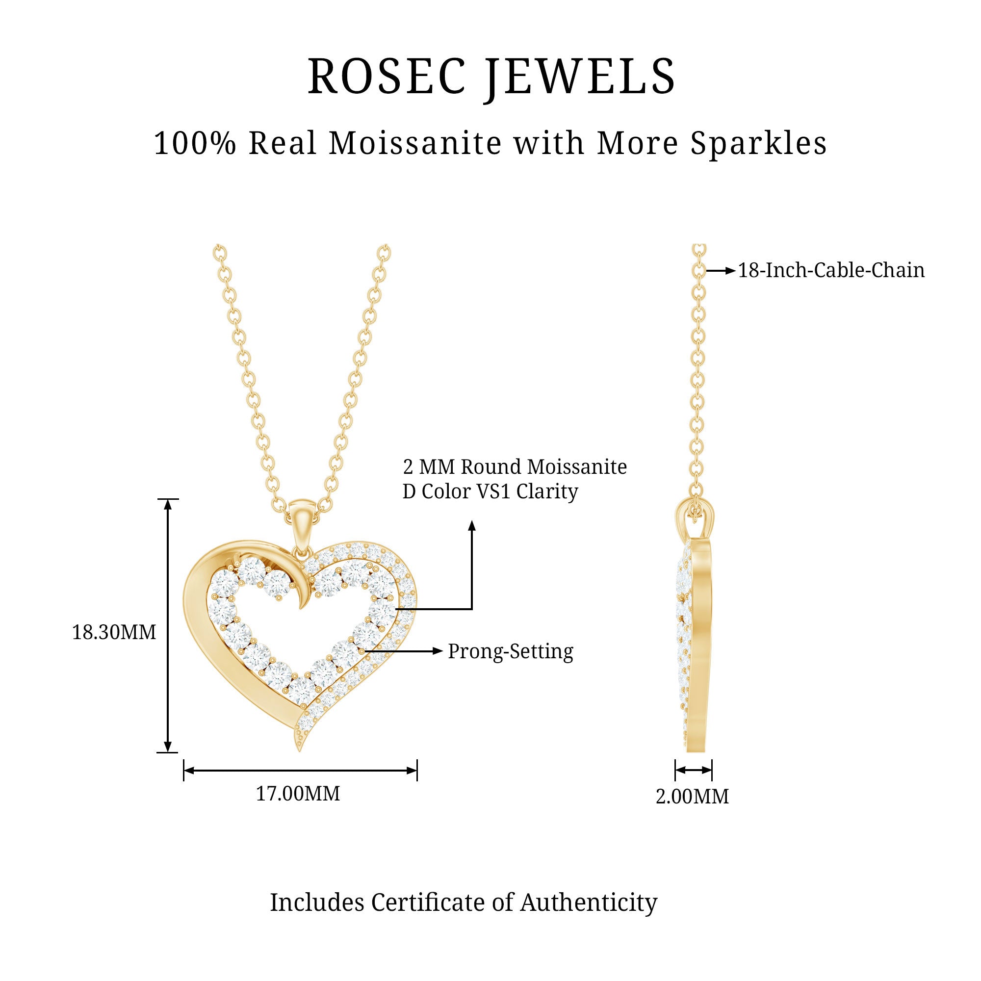 You can now celebrate your love with this stunning Moissanite Open Heart Pendant. Featuring round cut Moissanite stones in a beautiful prong setting, this Certified Moissanite Gold Pendant is expertly crafted in solid gold. The intricate design of the pendant symbolizes the love, devotion, and fidelity shared by two individuals in a relationship. Its a perfect gift for your loved one to cherish forever.