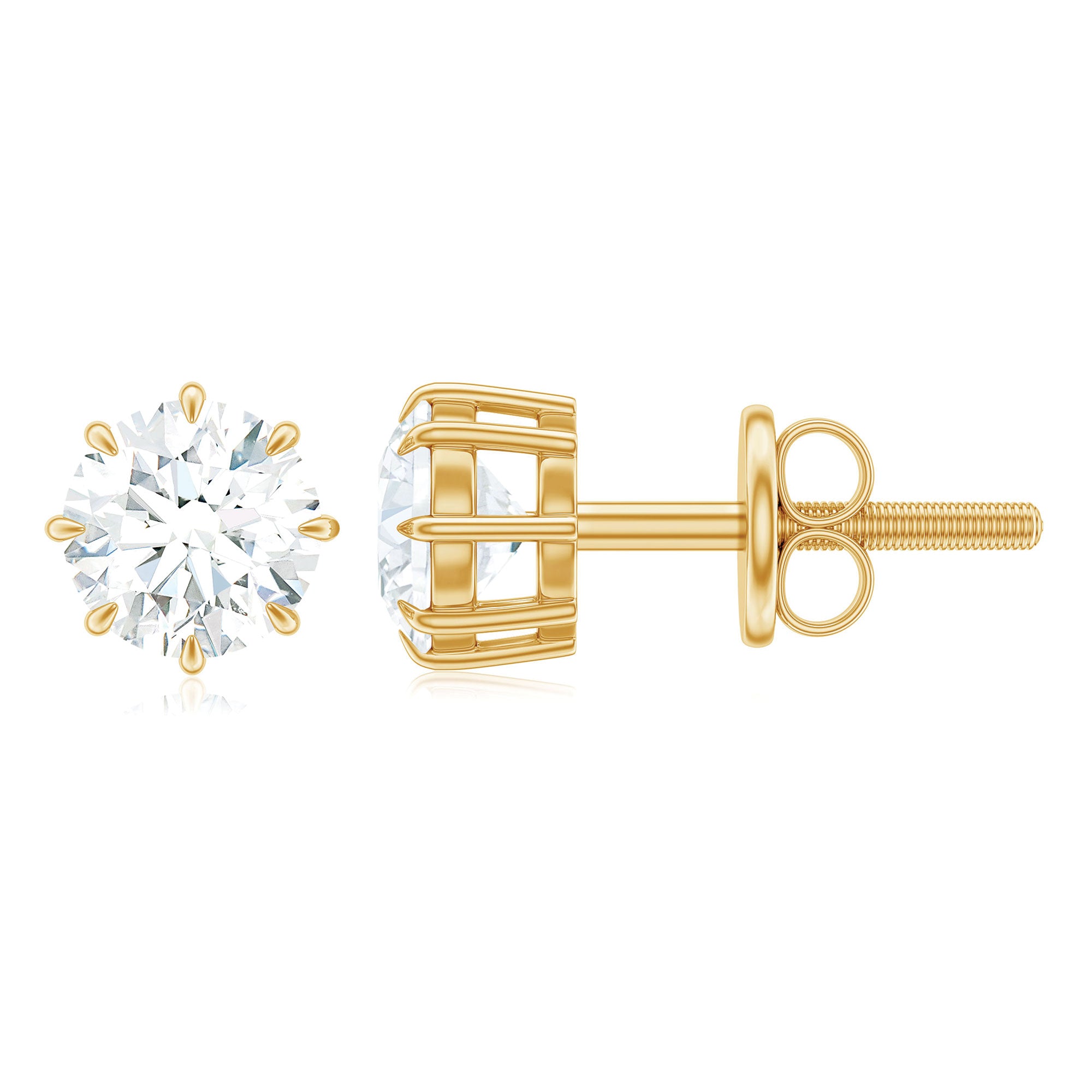 These Stud Earrings, featuring a Round Cut Moissanite set in an 8 Claw Prong Setting, are perfect for any occasion, whether its a New Year party or everyday wear. The screw-back earrings are made of gold and add a touch of elegance to any look.