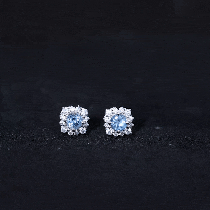 Look as stunning as ever while flaunting this pair of Halo Stud Earrings featuring a Round Shape Aquamarine Gemstone in the center set in prong setting encircled by a Halo of sparkling Round Shape Moissanite. The Classic Stud Earrings will make you the center of attraction at all your parties.