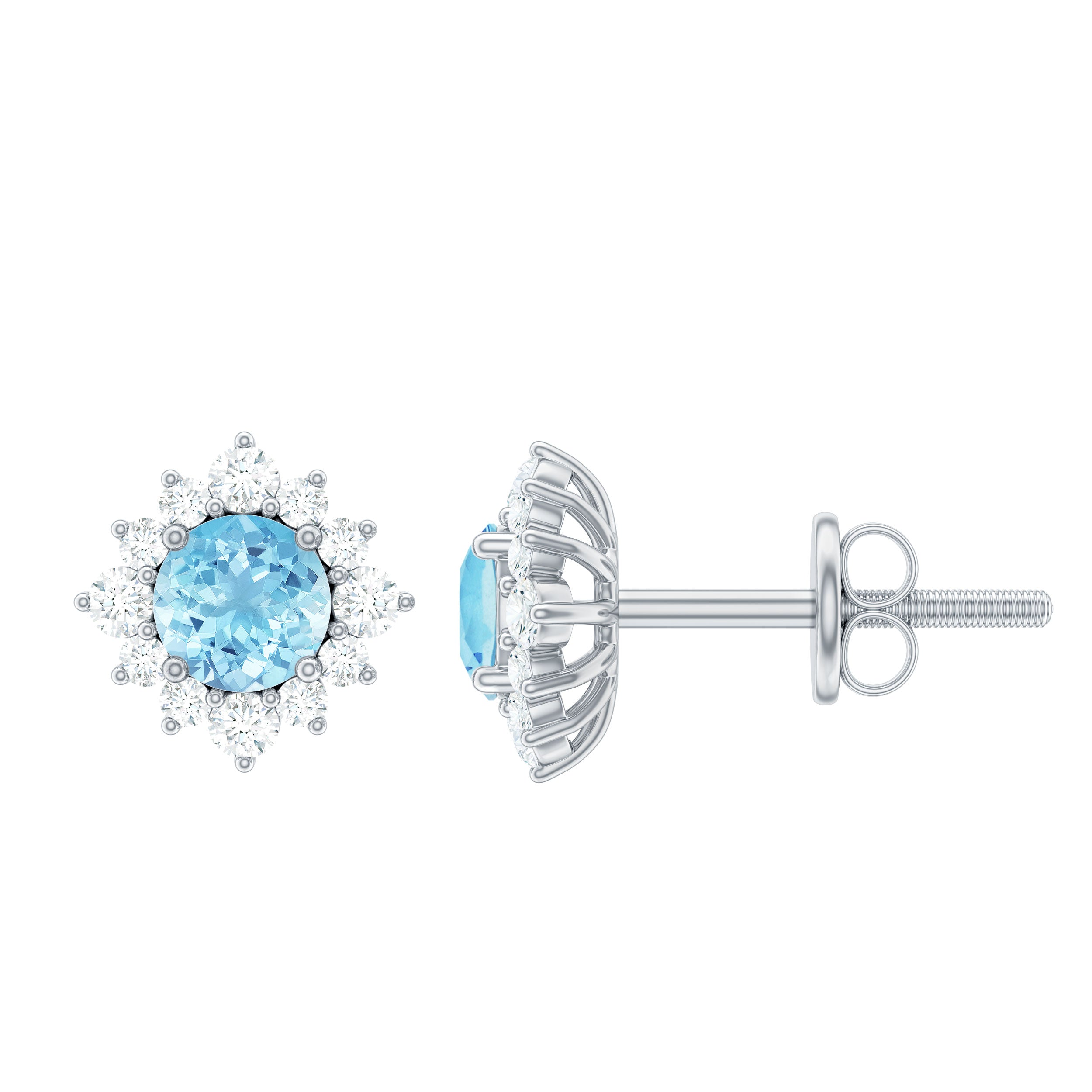 1 CT Classic Aquamarine Stud Earrings with Moissanite Halo