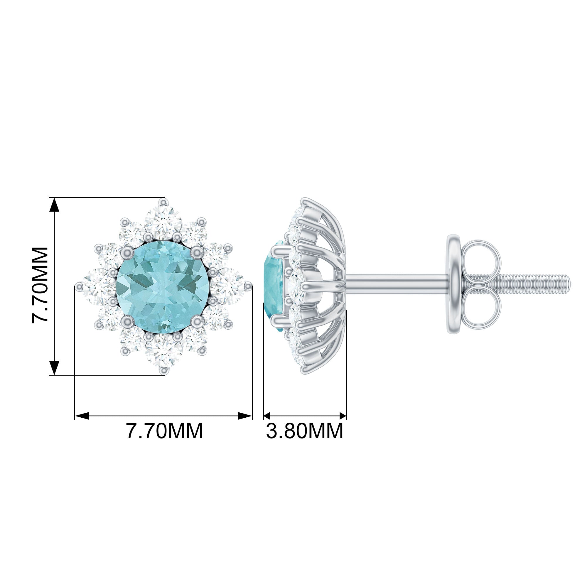 1 CT Classic Sky Blue Topaz Stud Earrings with Diamond Halo