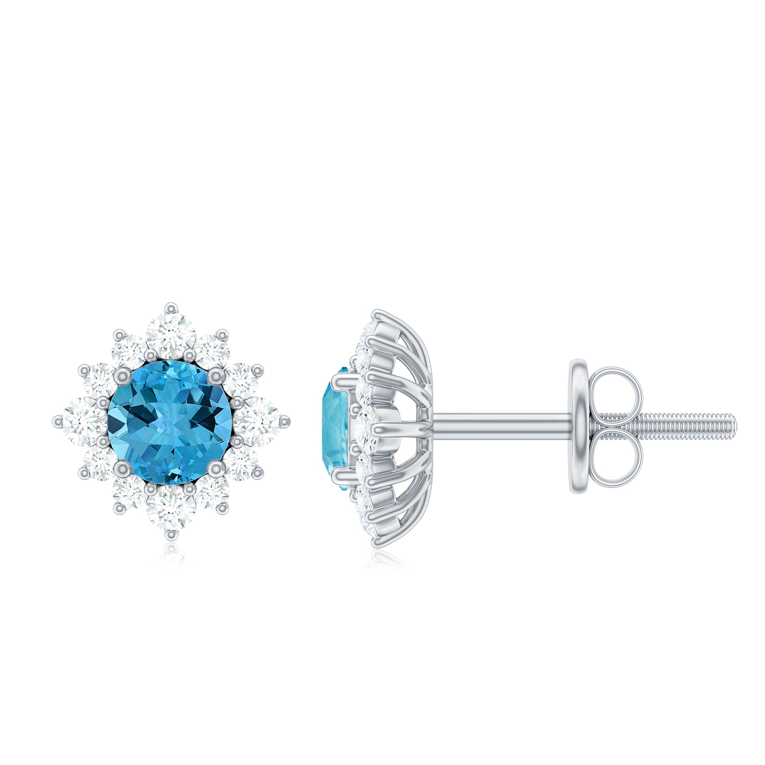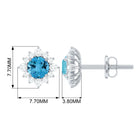 1 CT Classic Swiss Blue Topaz Stud Earrings with Diamond Halo