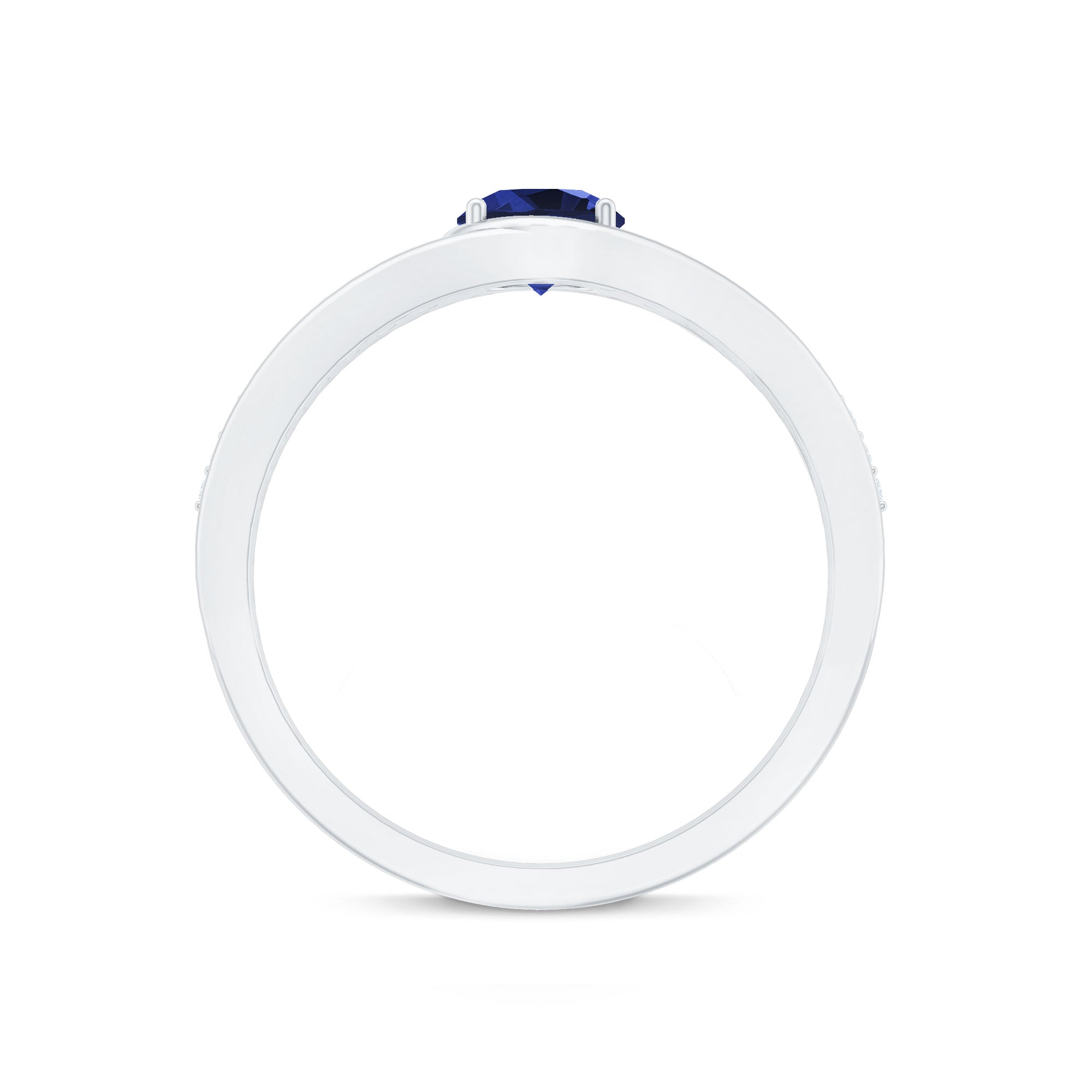 1 CT Created Blue Sapphire and Diamond Classic Engagement Ring