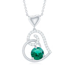 1 CT Created Emerald and Diamond Heart Drop Pendant