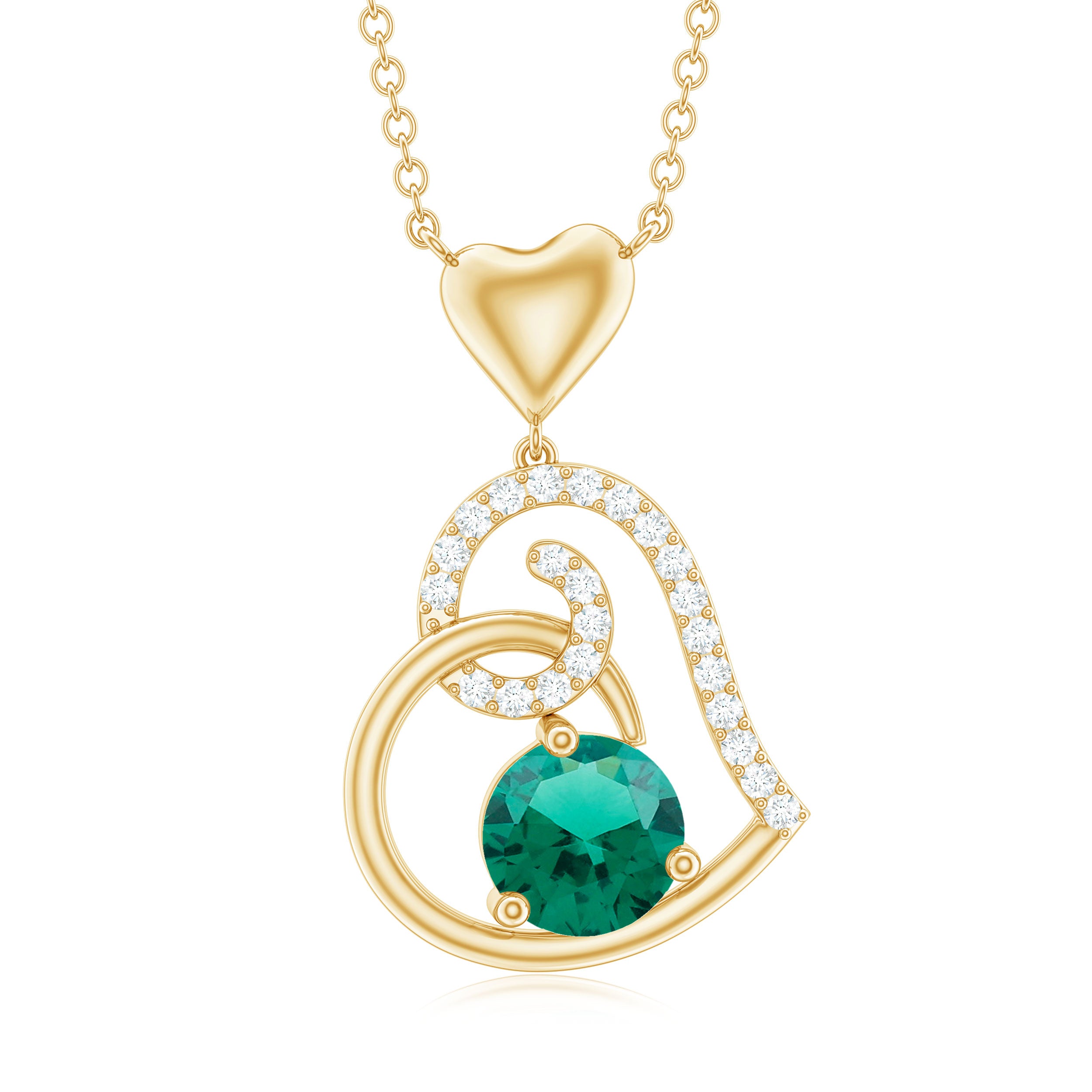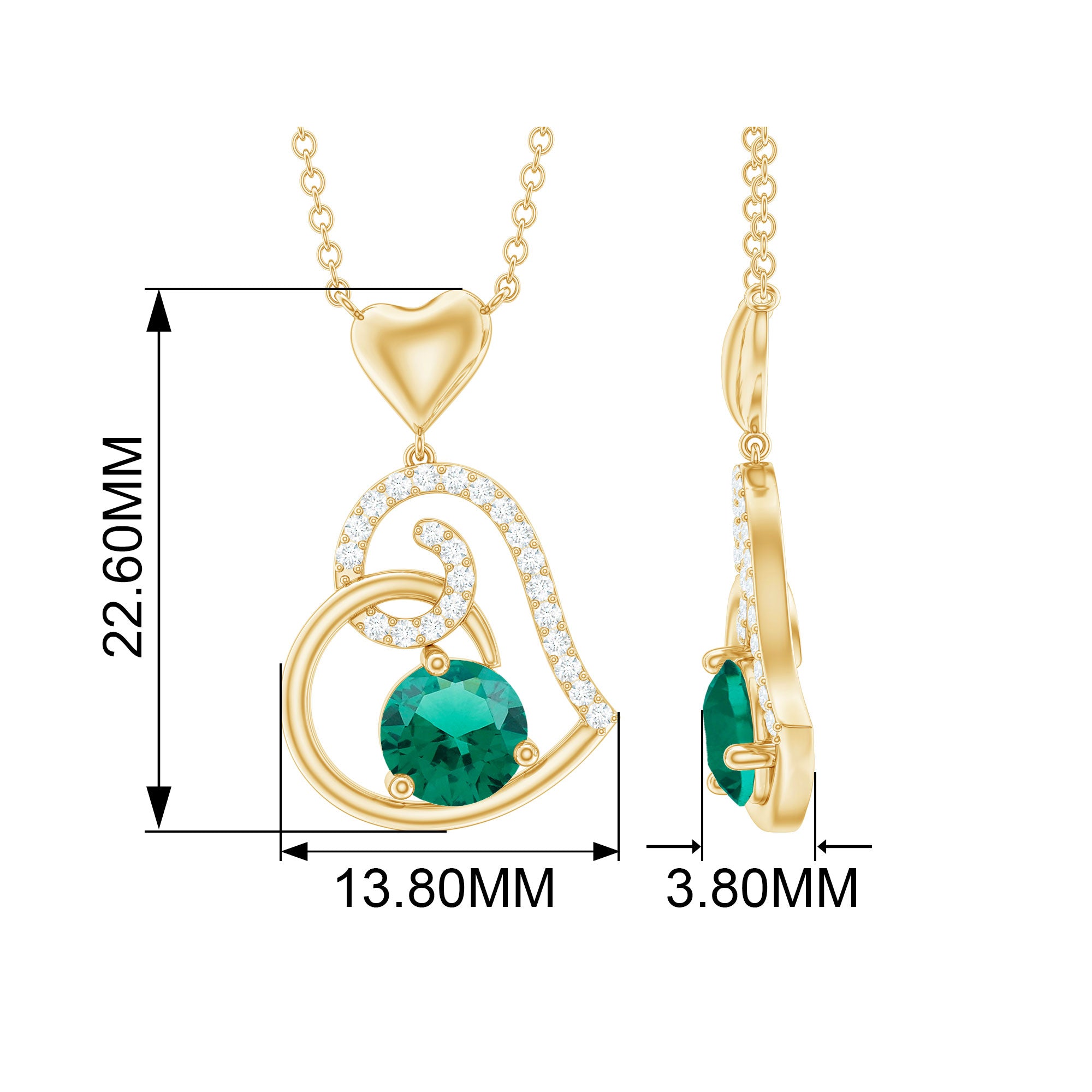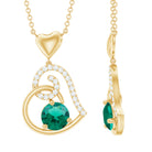 Be Dazzle with these beautiful Heart Drop Pendant embellished with Round Shape Created Emerald as Solitaire in 3 Prong Setting and Round Shape Diamond in Prong Setting, Crafted in Solid Gold.