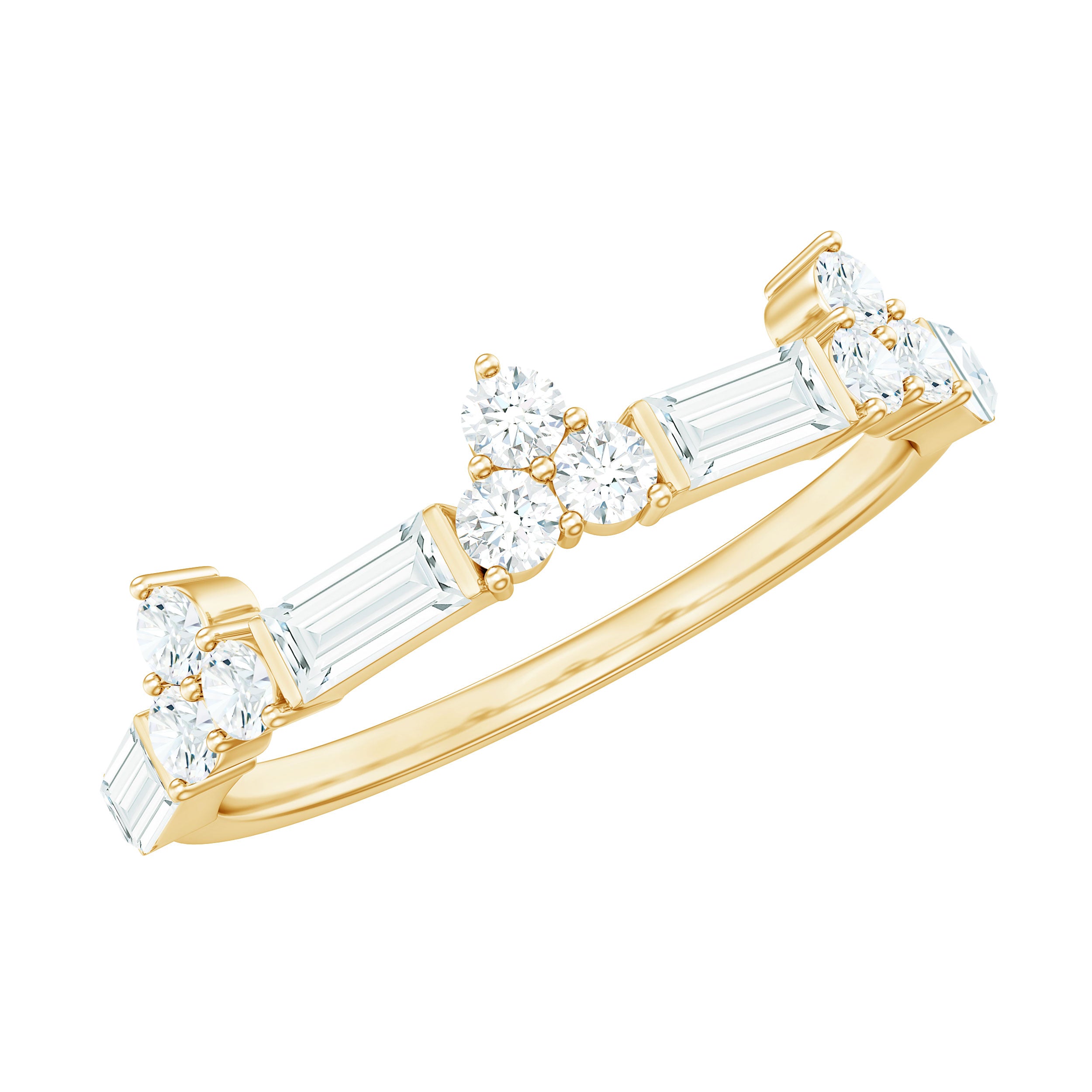 Add a touch of glamour to your look with this Half Eternity Ring, featuring round and baguette cut Zircon in a secure prong setting. Composed of cubic zirconia and gold, this ring is a perfect choice for special occasions. Surprise your loved one on your anniversary with this exquisite Cubic Zirconia Ring and make them feel extra special. Available in Rose Gold, White Gold, and Yellow Gold, this ring is handcrafted by Rosec Jewels and comes in our signature box for a luxurious experience. Brighten up any outfit with this stunning Half Eternity Ring.