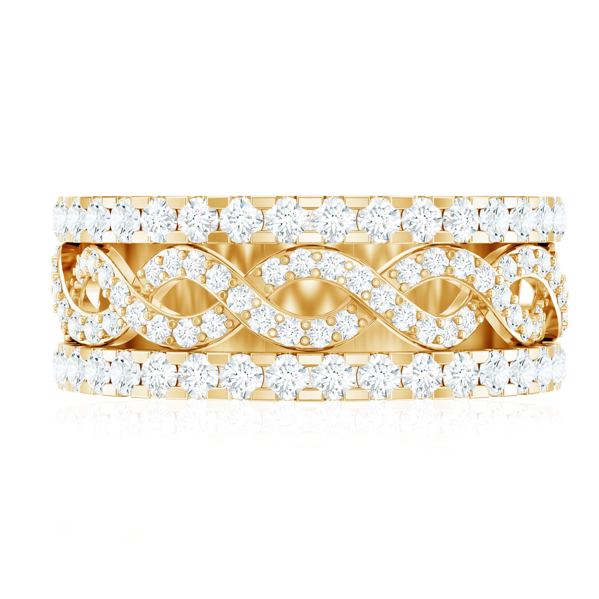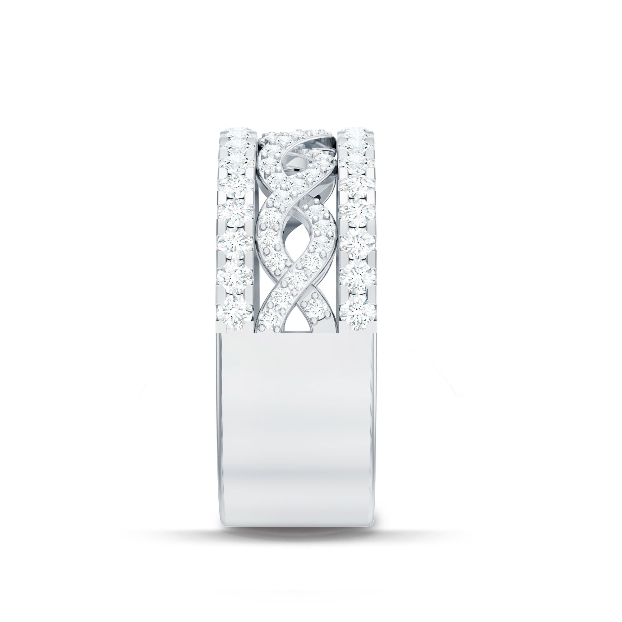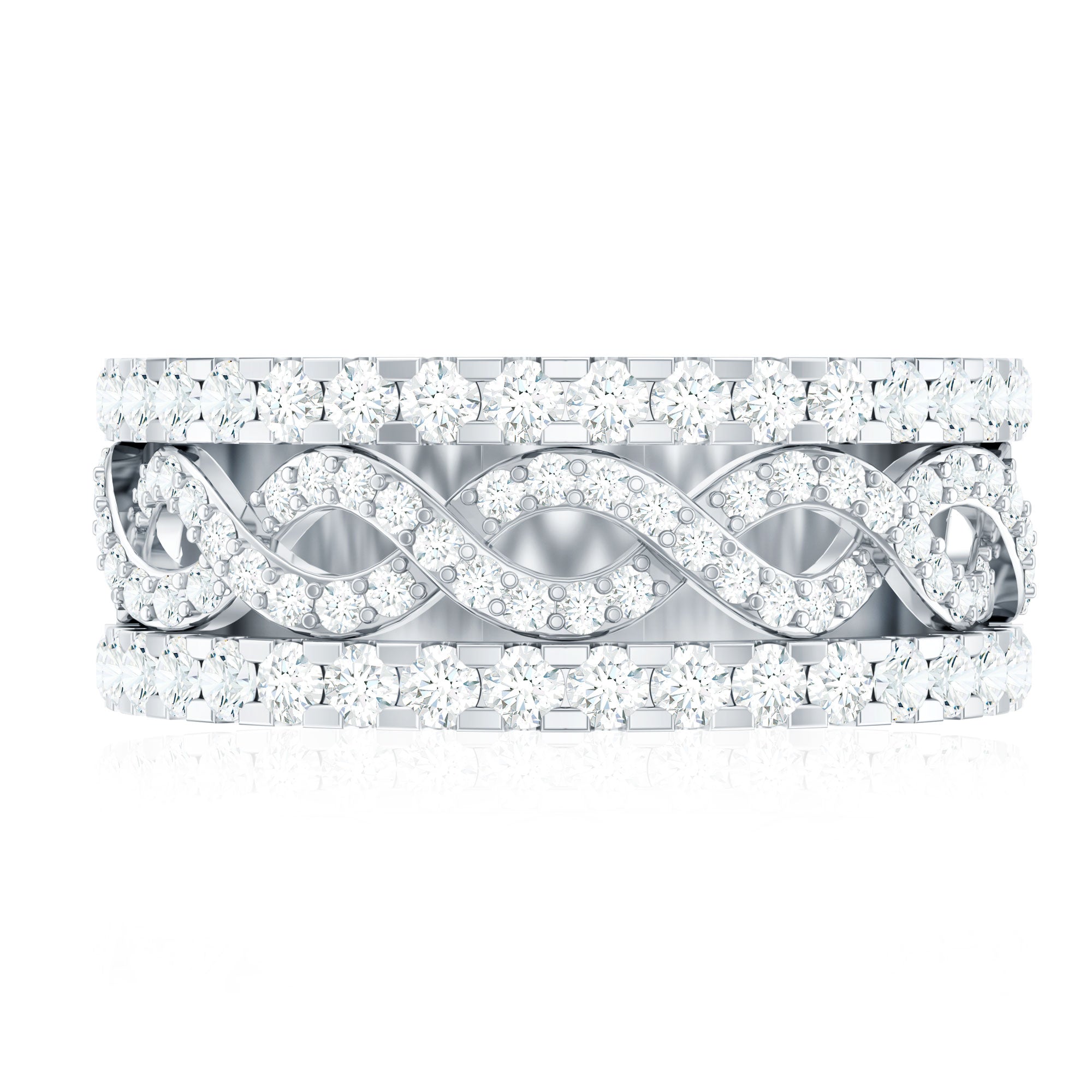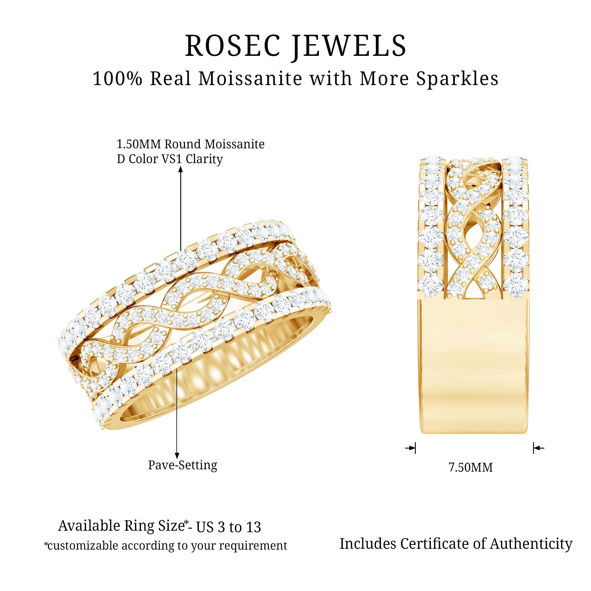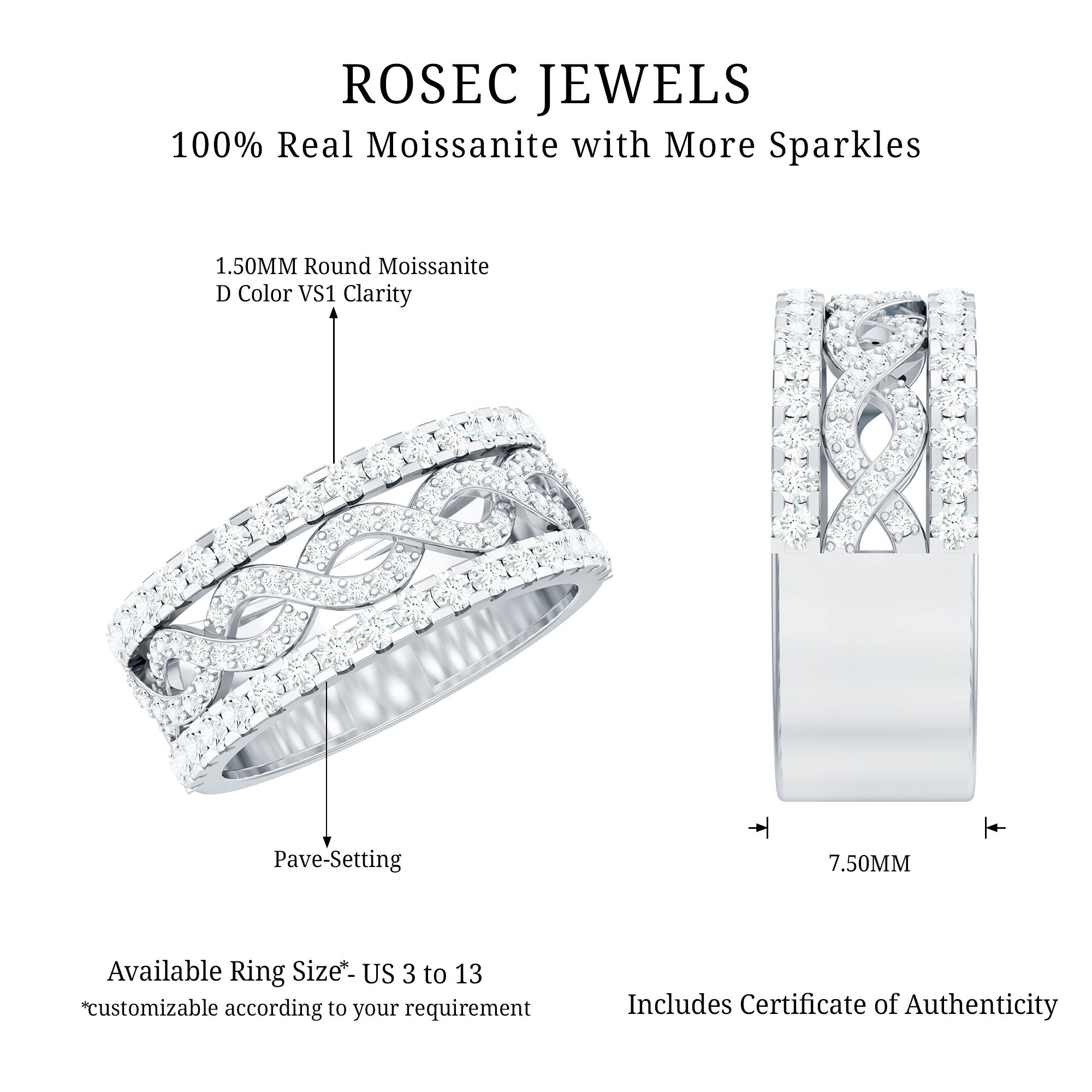 A beautiful and remarkable gift for your beloved, this Moissanite Wedding Band is guaranteed to wow your partner. This exquisite band ring showcases a twisted infinity design at its center, adorned with tiny, sparkling moissanite stones that also embellish the edges of the band, enhancing its allure and charm. The design is both elegant and eye-catching, making it ideal for daily wear as well as those significant occasions that truly matter. This amazing Infinity Wedding Band is a wonderful way to express your genuine emotions and help you stand out in any setting. This Designer Wedding Band is crafted for those seeking something timeless, durable, and meaningful. With meticulous attention to detail, this Wide Moissanite Band is comfortable to wear and designed to last a lifetime, just like your commitment. It arrives in a signature jewelry box, perfect for gifting or secure storage. Available in US ring sizes 3 to 13, this Wide Wedding Band guarantees a perfect fit for every woman. Whether you are getting married or upgrading your band, this piece is designed to symbolize your journey and love.