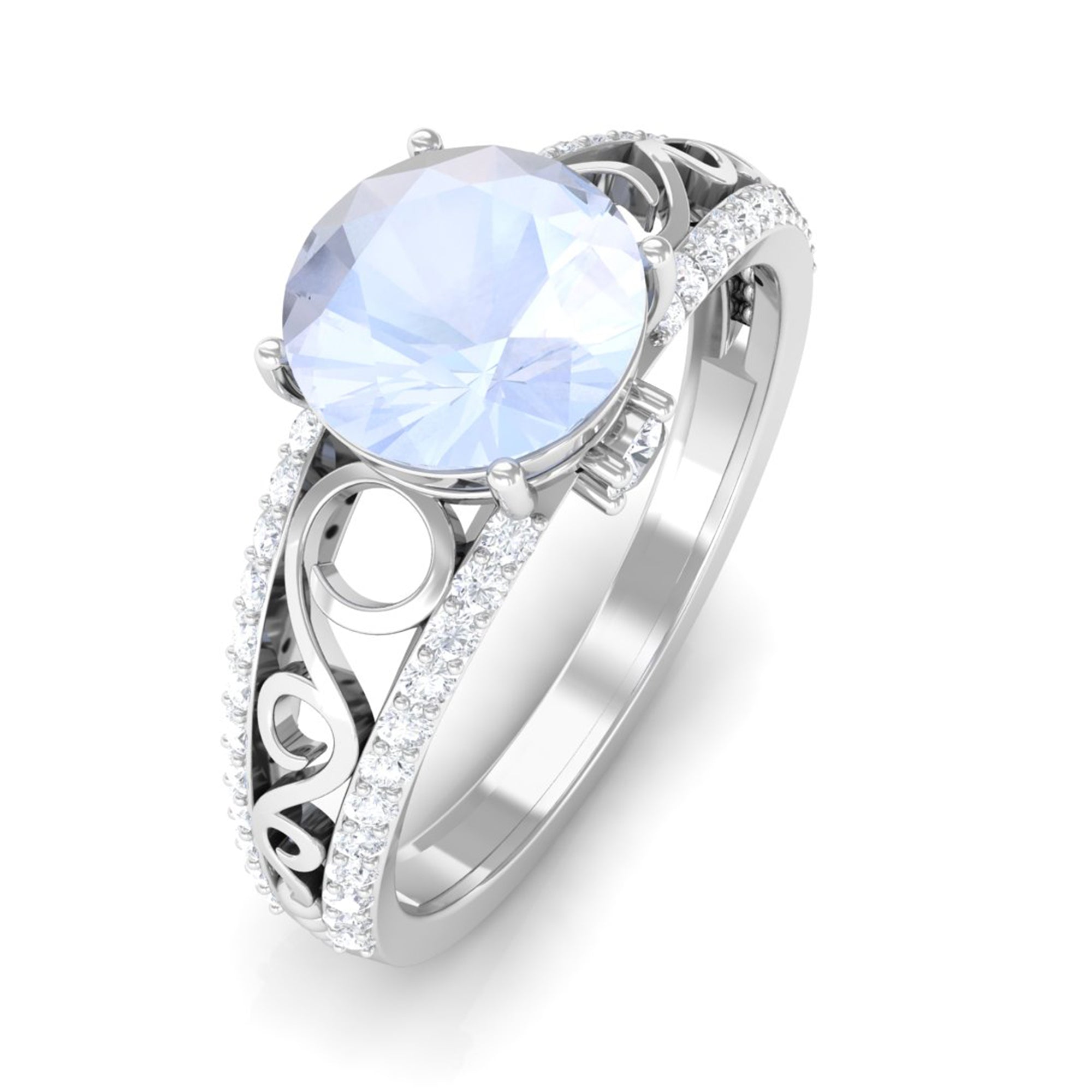 1 CT Designer Moonstone Solitaire Engagement Ring with Diamond Accent
