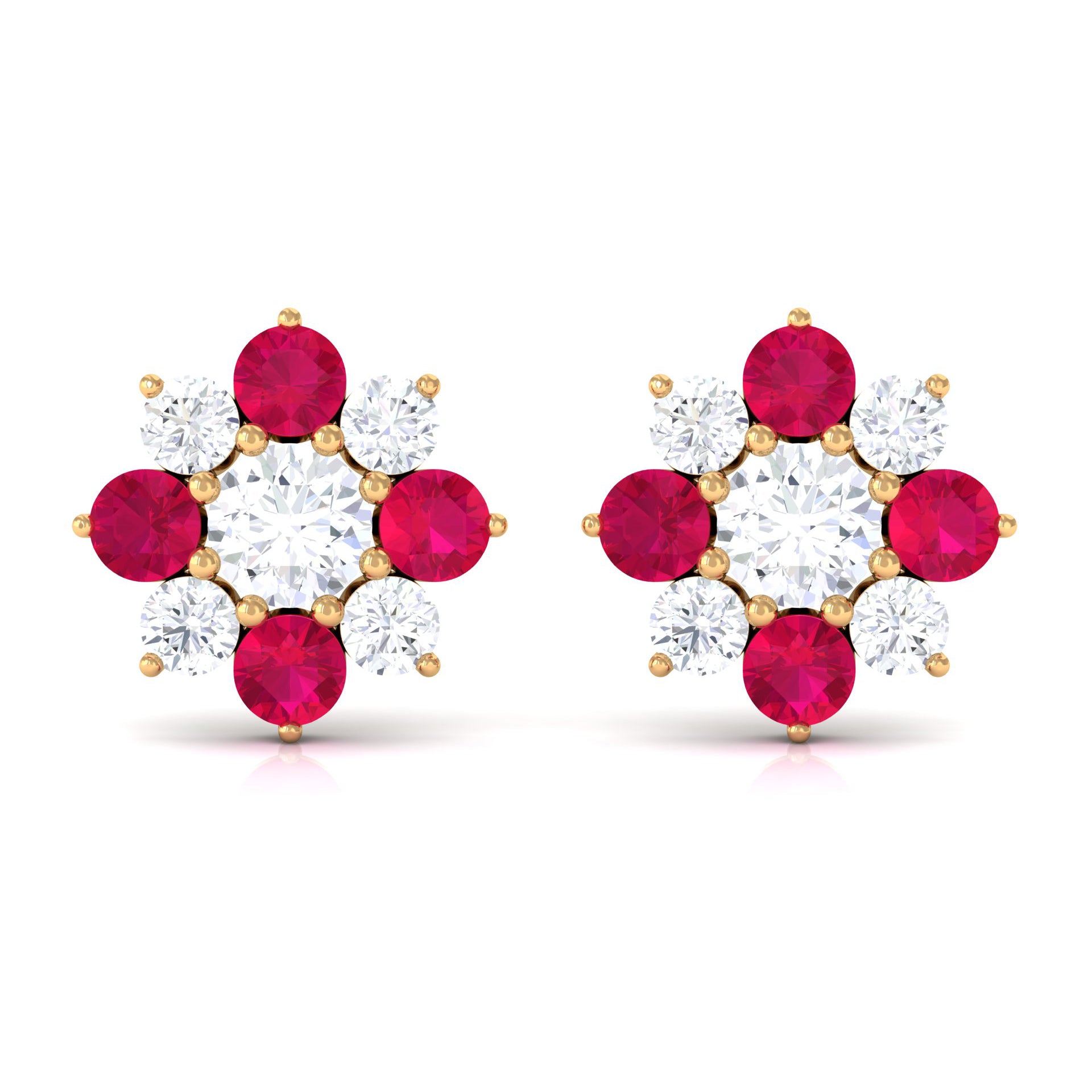 Embellished with Round Shape Diamond and Ruby these Floral Stud Earrings will decorate your look with minimal effort.