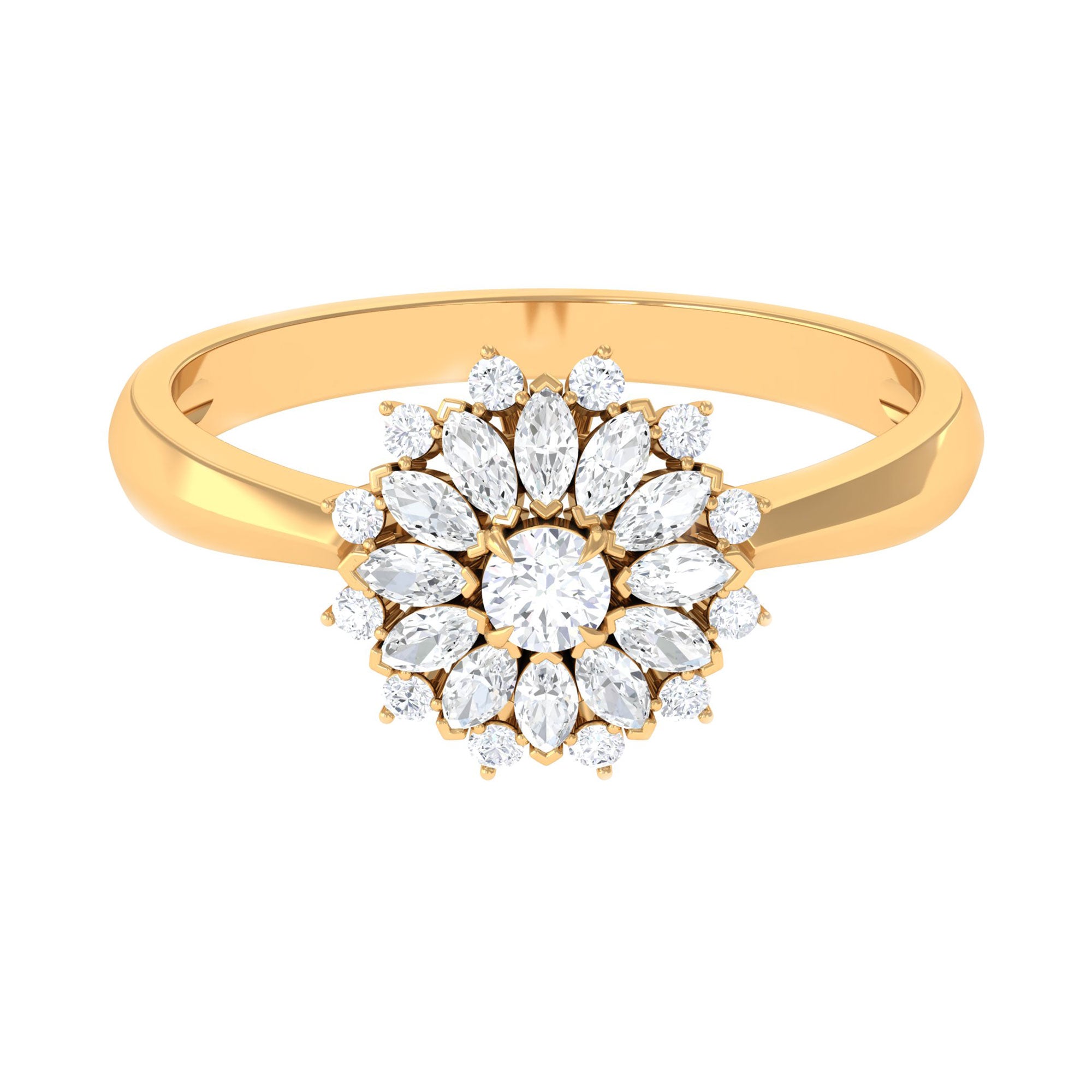 The most powerful design that is born from the natural world is the Diamond Engagement Ring, which brings back to bloom, it was inspired by. Having harmony and detail, it has a beauty that tells a story. Sitting in the center is the Round Shape Diamond in Claw Setting, along with the Marquise Shape Diamond that mimics the petals of a flower. While adorning the flower is the Round brilliant Shape Diamond, scintillating the flower, making it a beautiful Cocktail Engagement Ring. Offering balance and calm, this Nature Engagement Ring celebrates love in its most organic form. Having a subtle way, this Flower Engagement Ring has a floral pattern that enhances the overall look with a dash of splendor. This floral inspired design is captivating yet timeless, which is ready to make your big proposal truly memorable. This show-stopping Flower Cocktail Ring creates an unforgettably romantic piece of jewelry echoing the wild beauty of the natural world.