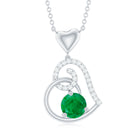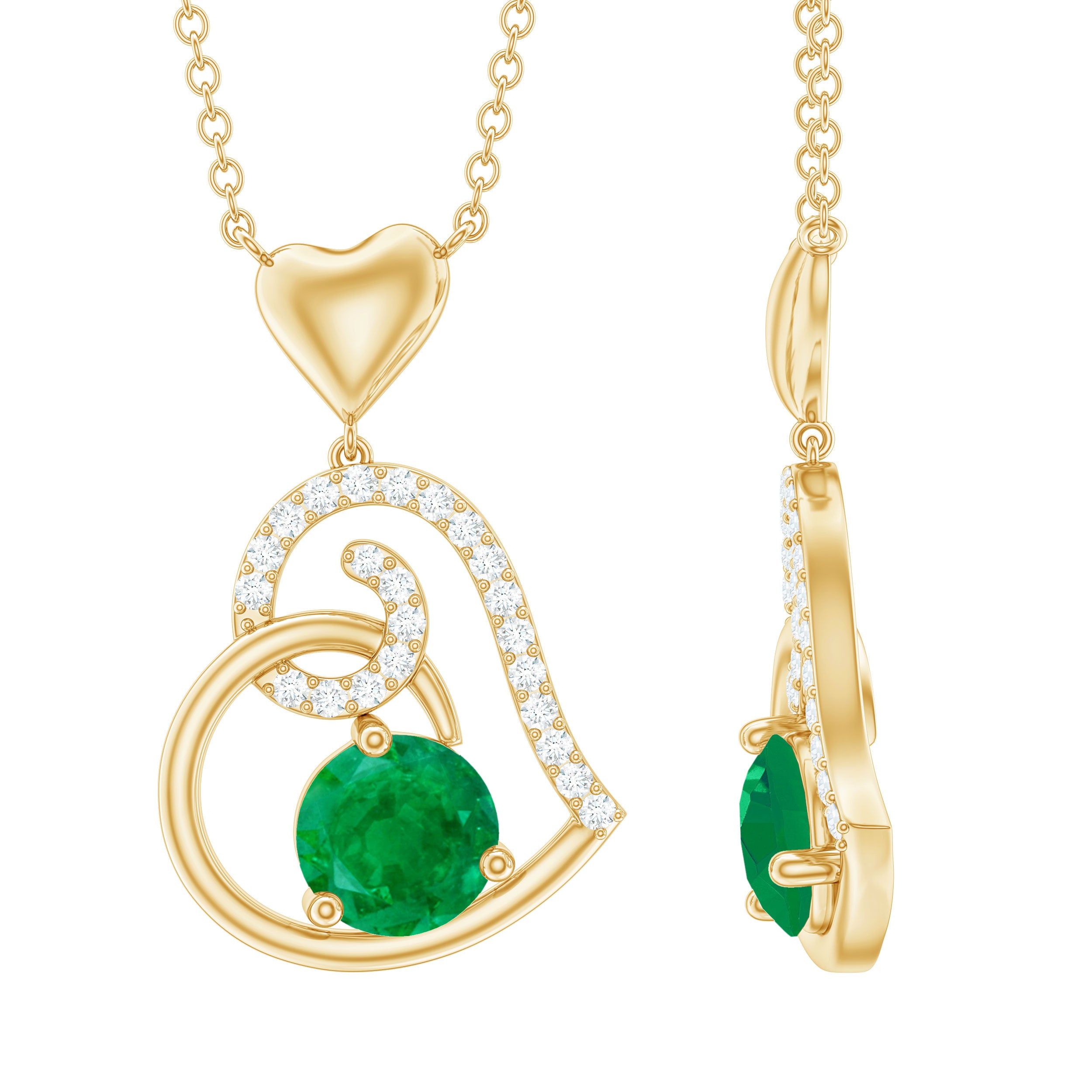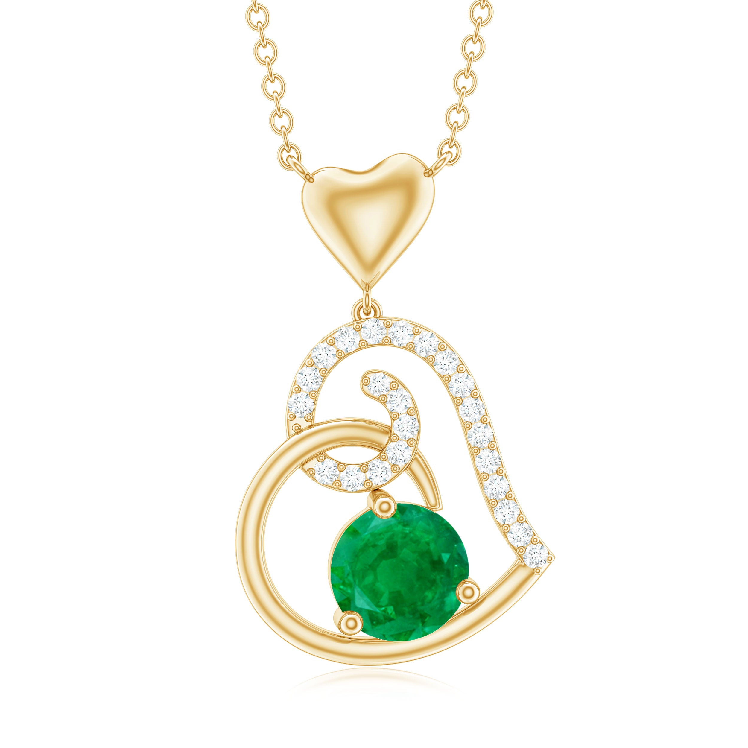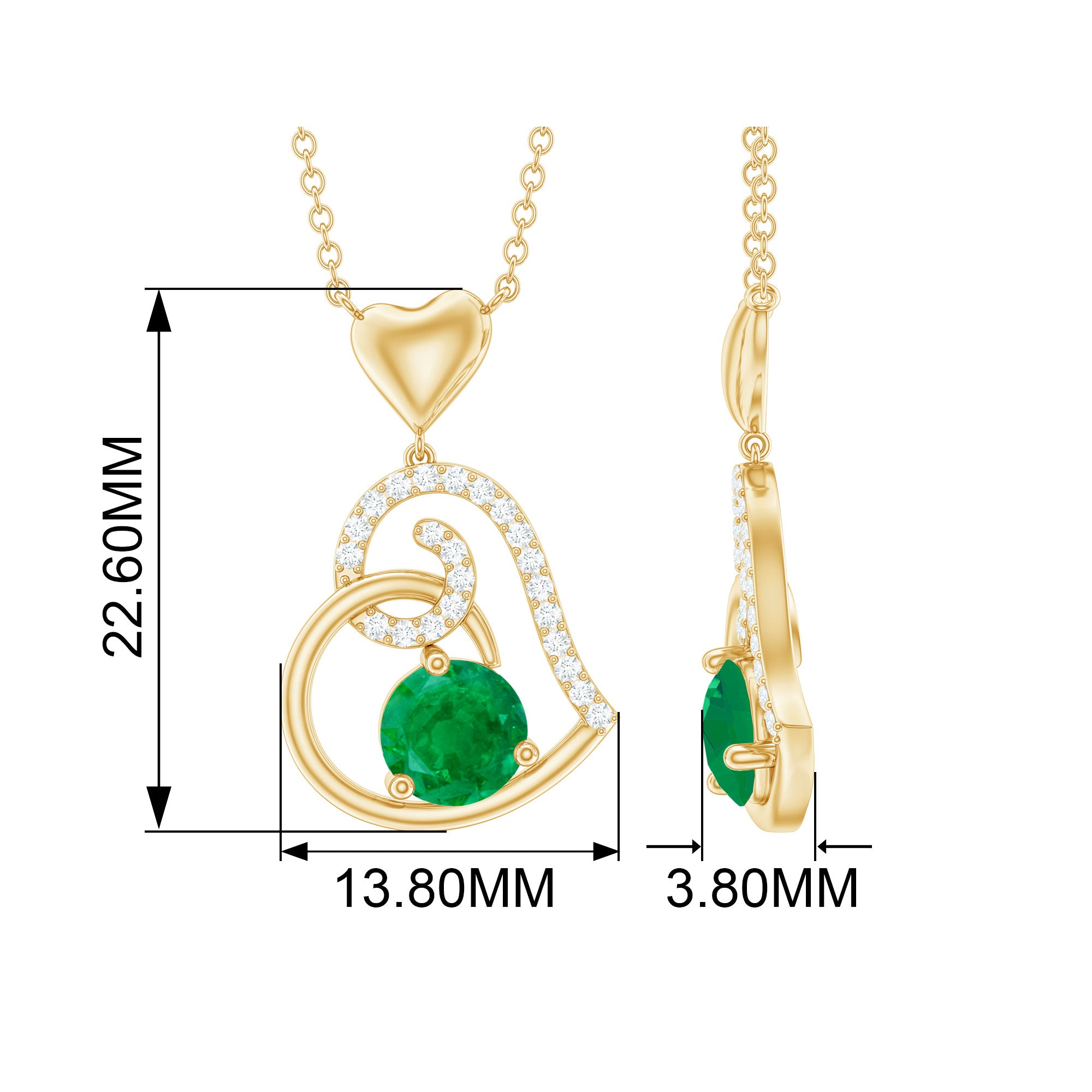 Be Dazzle with these beautiful Heart Drop Pendant embellished with Round Shape Emerald as Solitaire in 3 Prong Setting and Round Shape Diamond in Prong Setting, Crafted in Solid Gold.