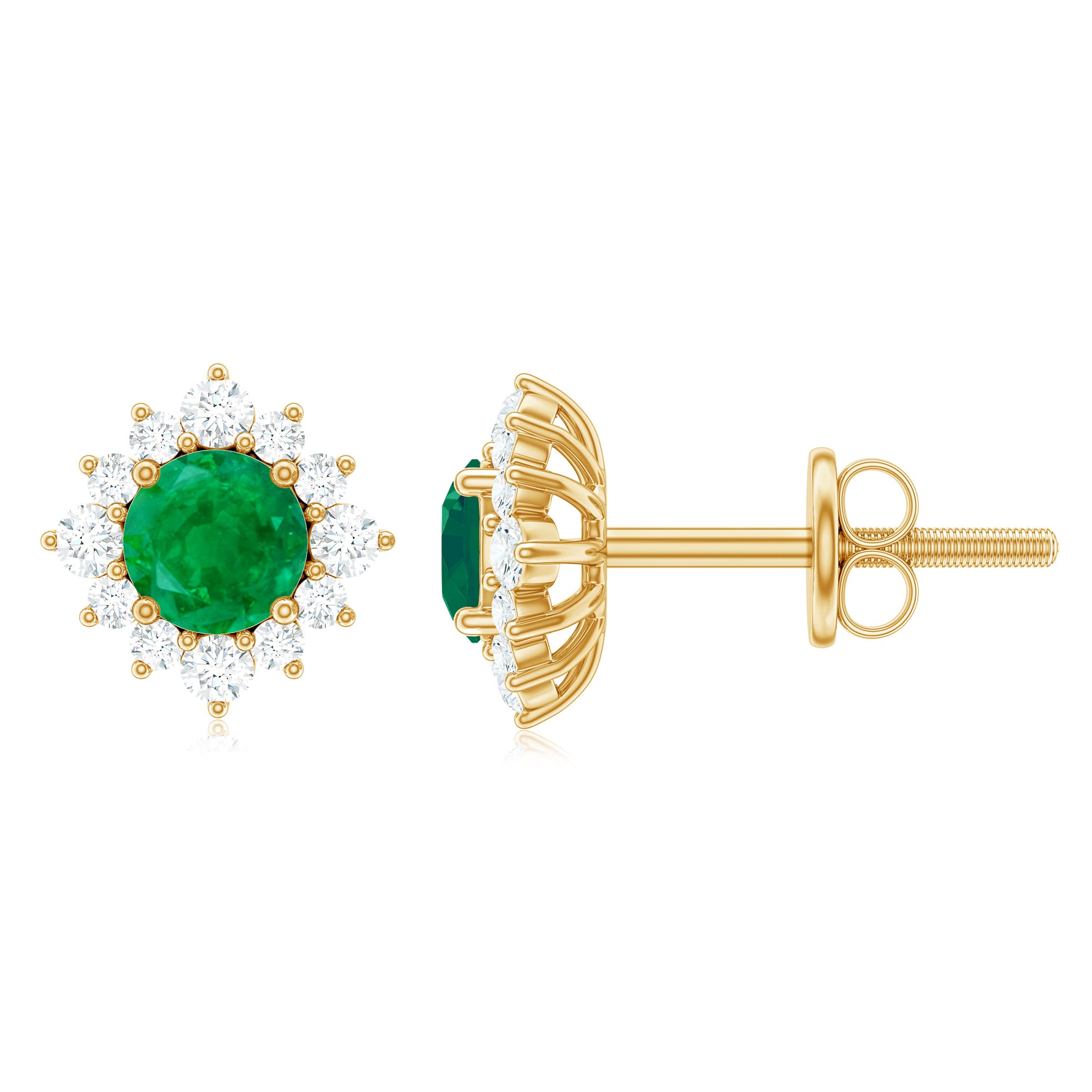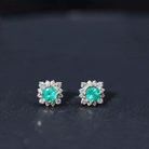 Look as stunning as ever while flaunting this pair of Halo Stud Earrings featuring a Round Shape Emerald Gemstone in the center set in prong setting encircled by a Halo of sparkling Round Shape Diamond. The Classic Stud Earrings will make you the center of attraction at all your parties.