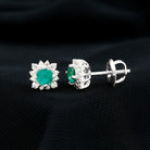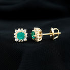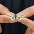 1 CT Emerald Classic Stud Earrings with Diamond Halo