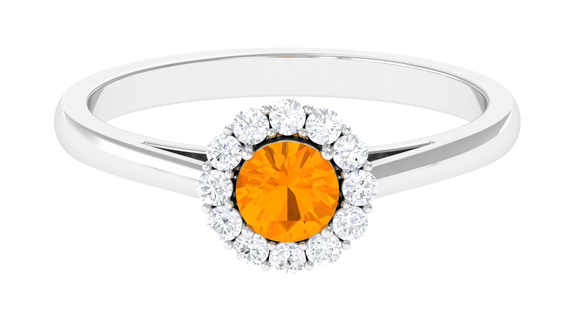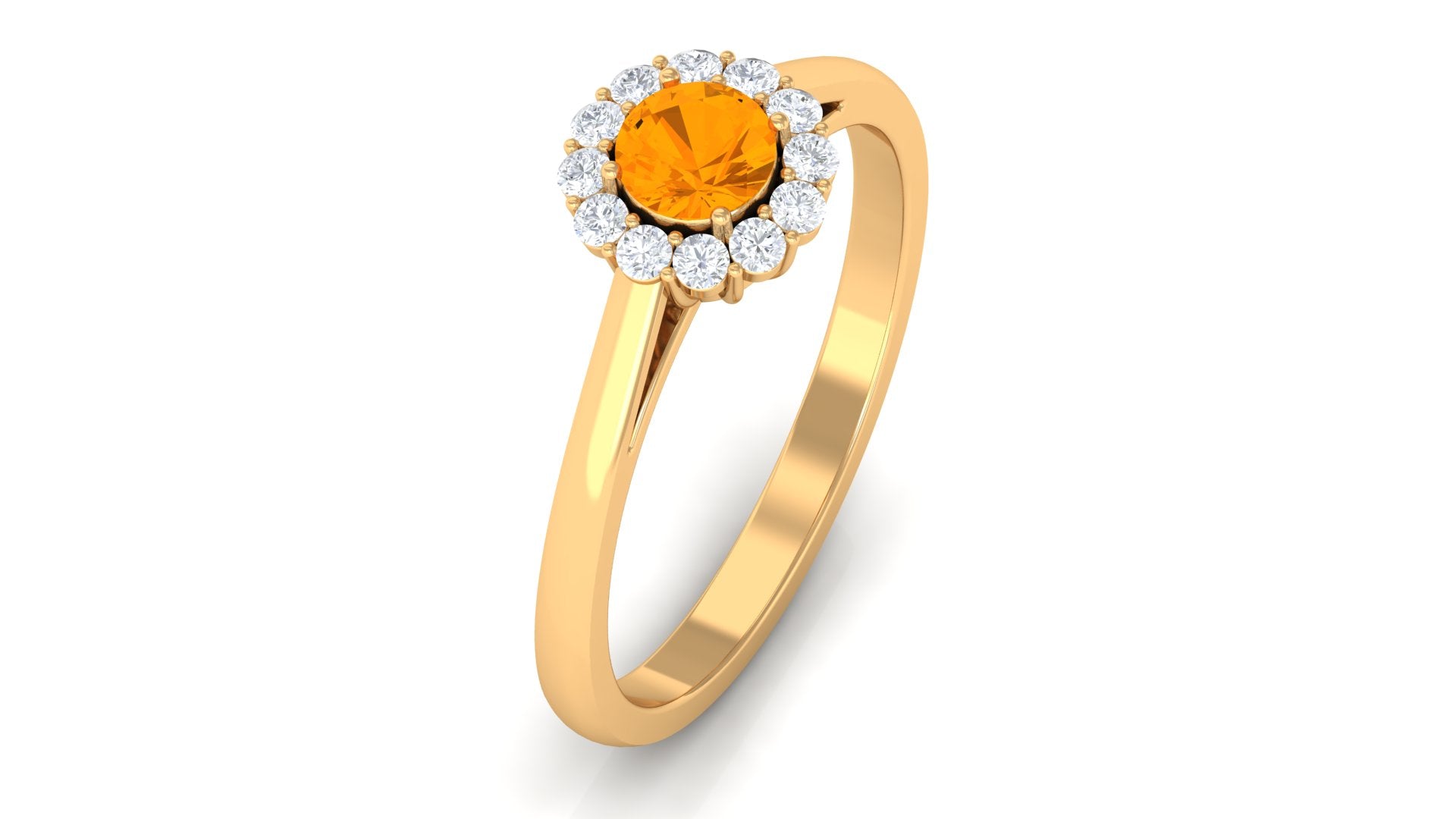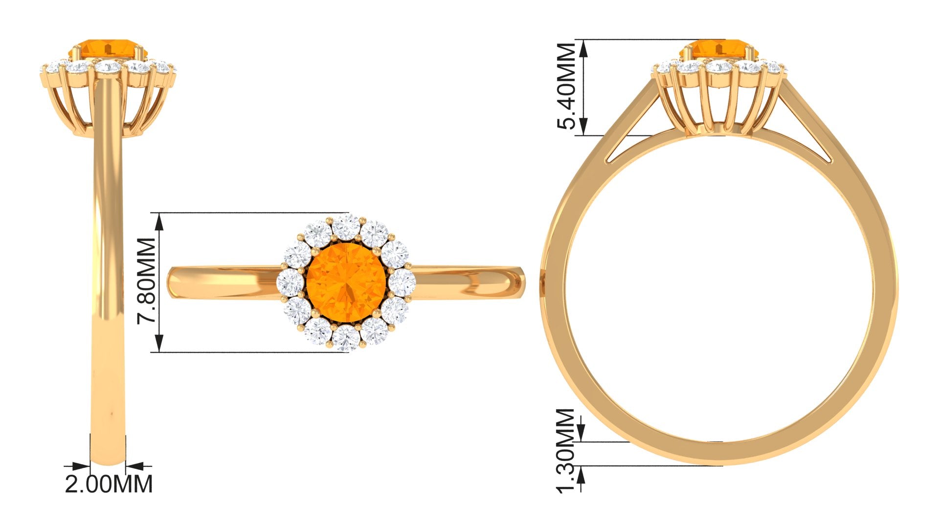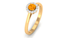 Enhance your beauty with Floating Halo Engagement Ring is embellished with Round Shape Fire Opal Set as a solitaire in a prong setting and Round Shape Diamond in a floating Halo. This Engagement Ring is composed of solid gold.