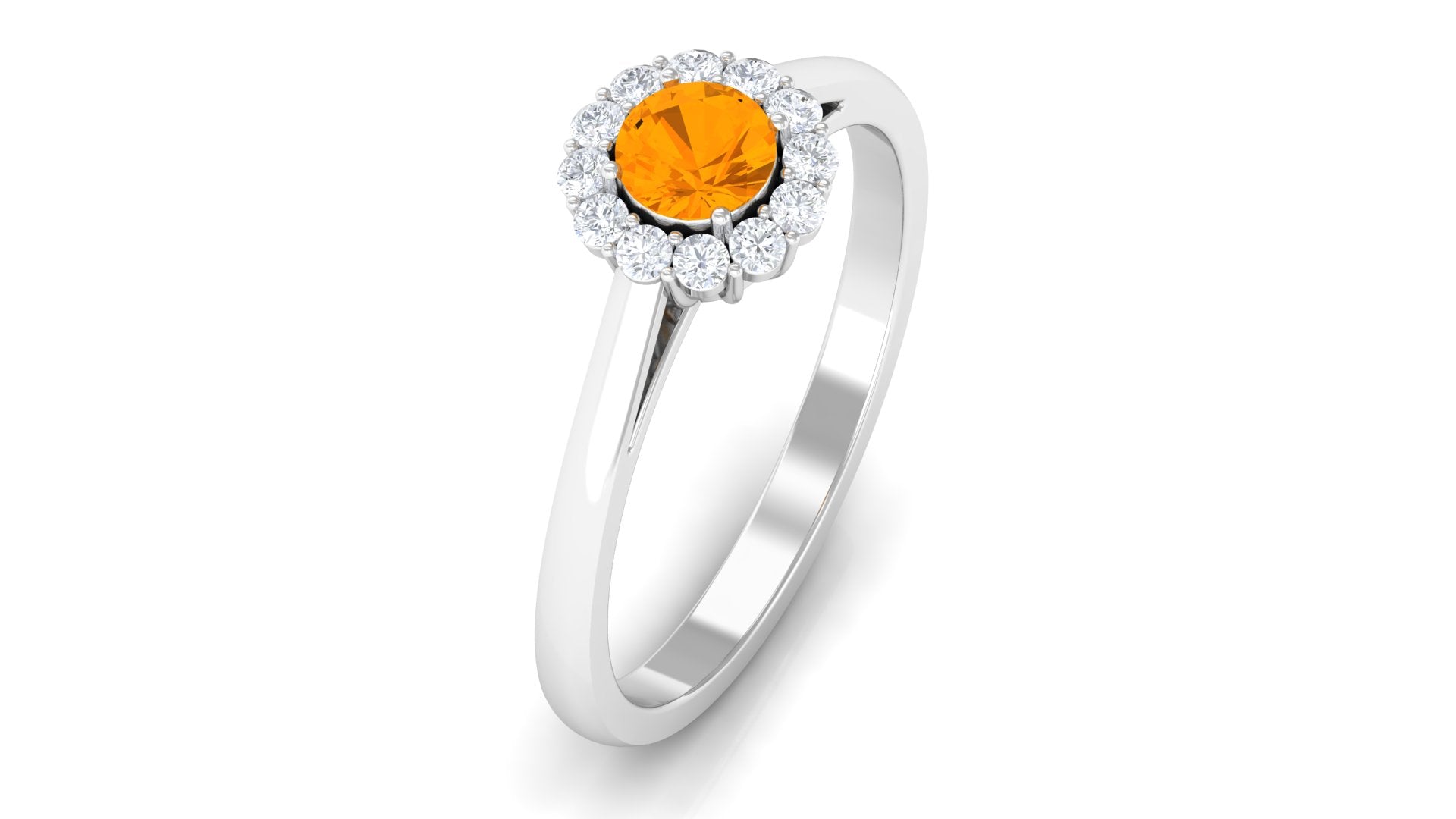 1 CT Fire Opal and Diamond Floating Halo Engagement Ring