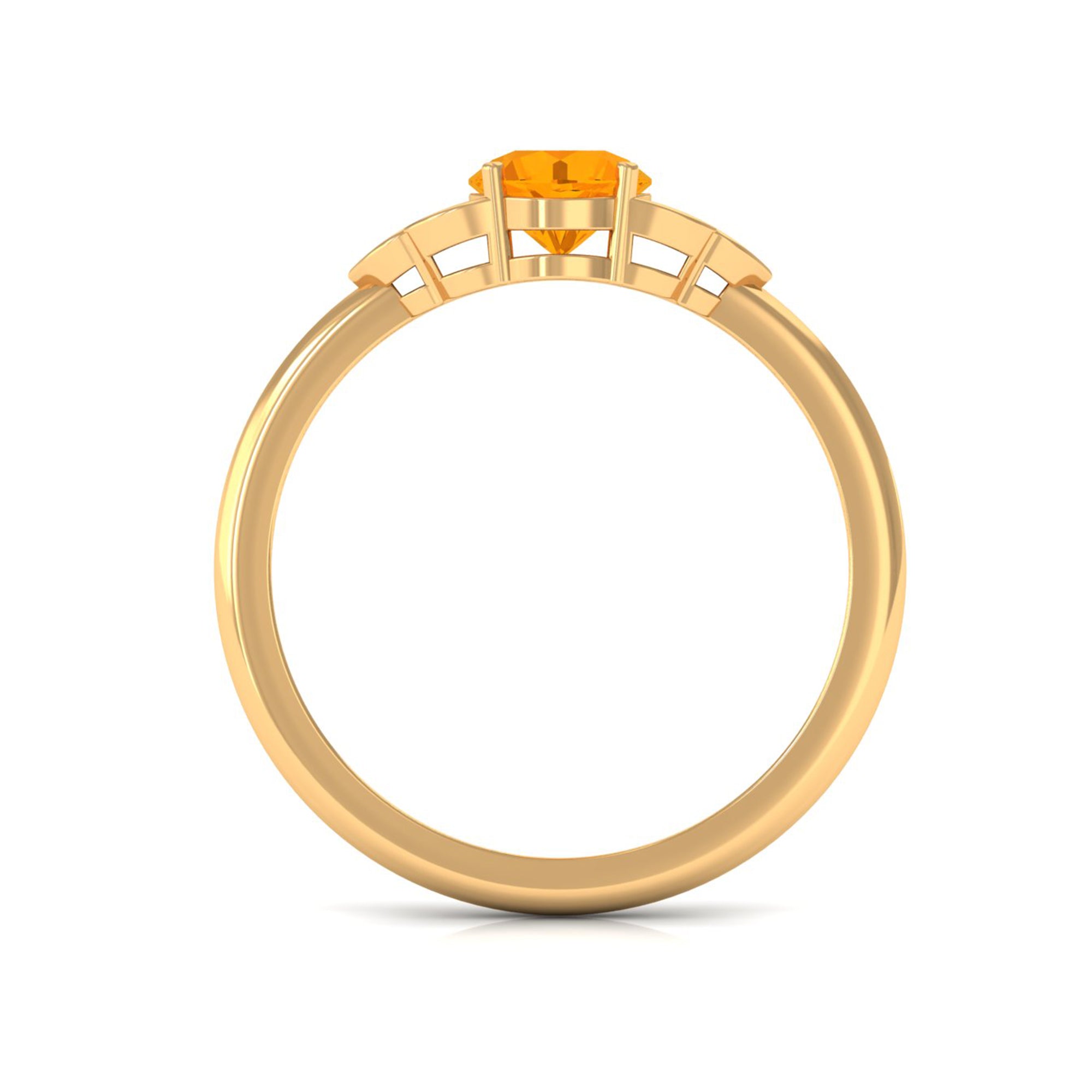 Beautifully designed for your loved one, this Engagement ring is adorned with Round Shape Fire Opal in Prong setting and Diamond Trio accent. Gift this charming ring to your partner on the special occasion.