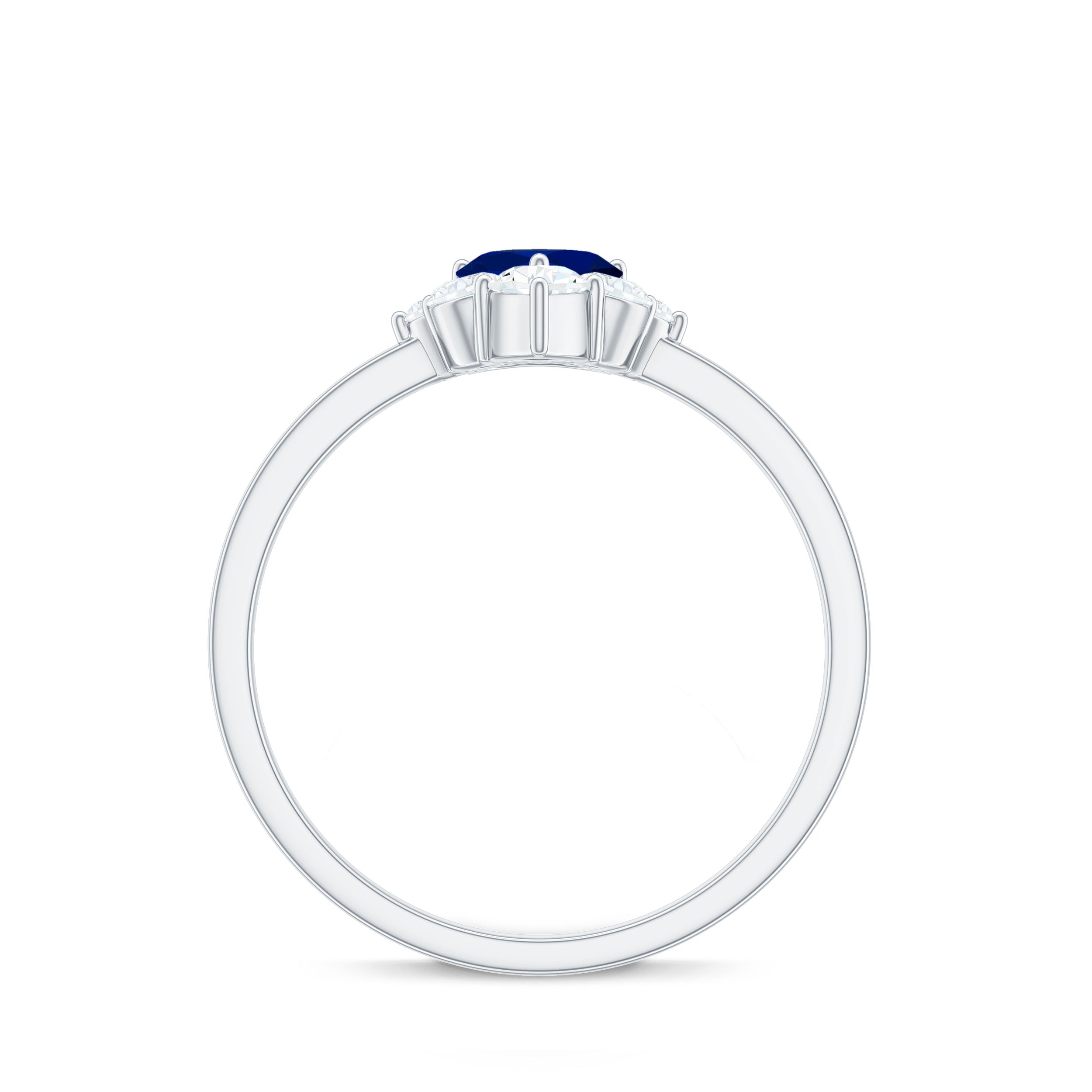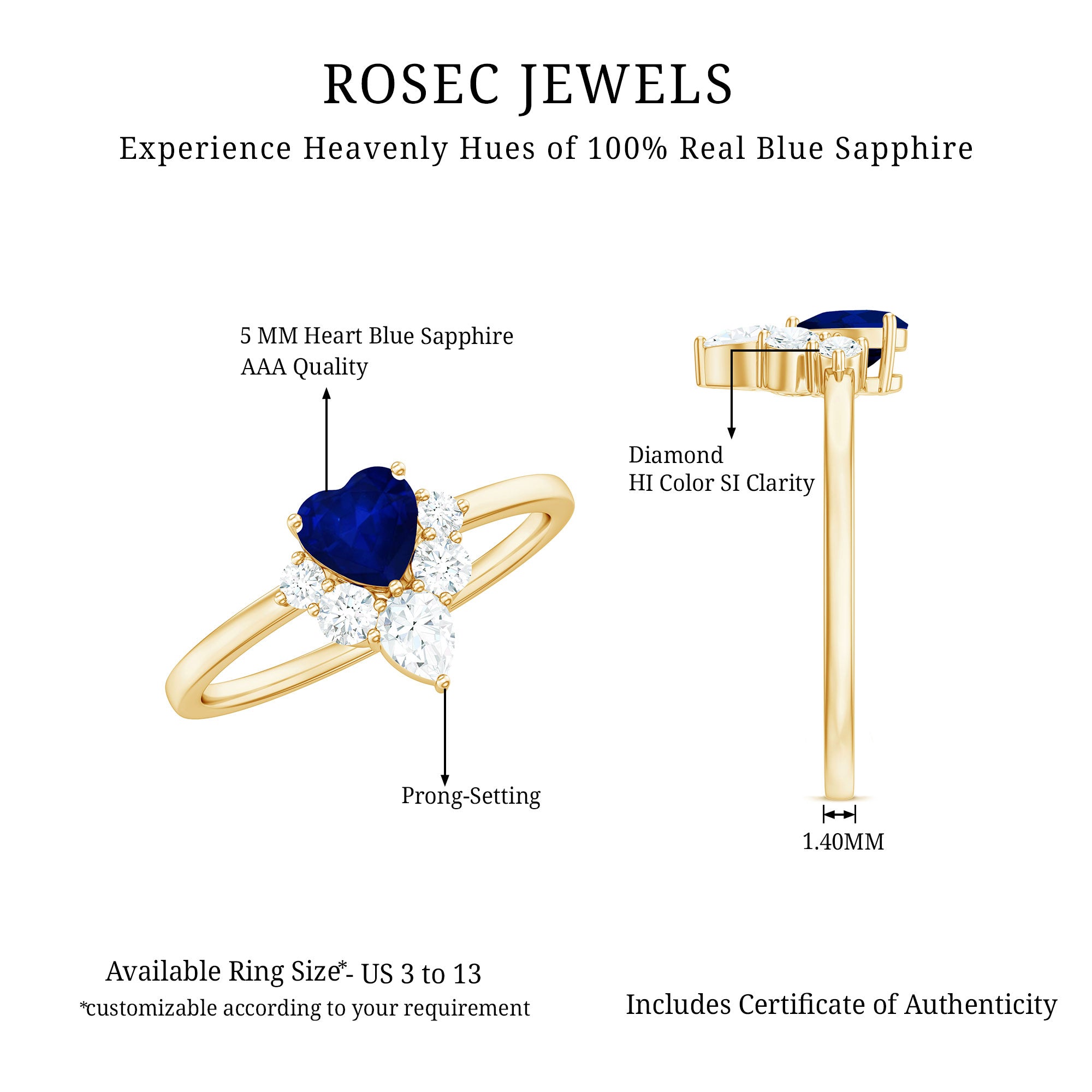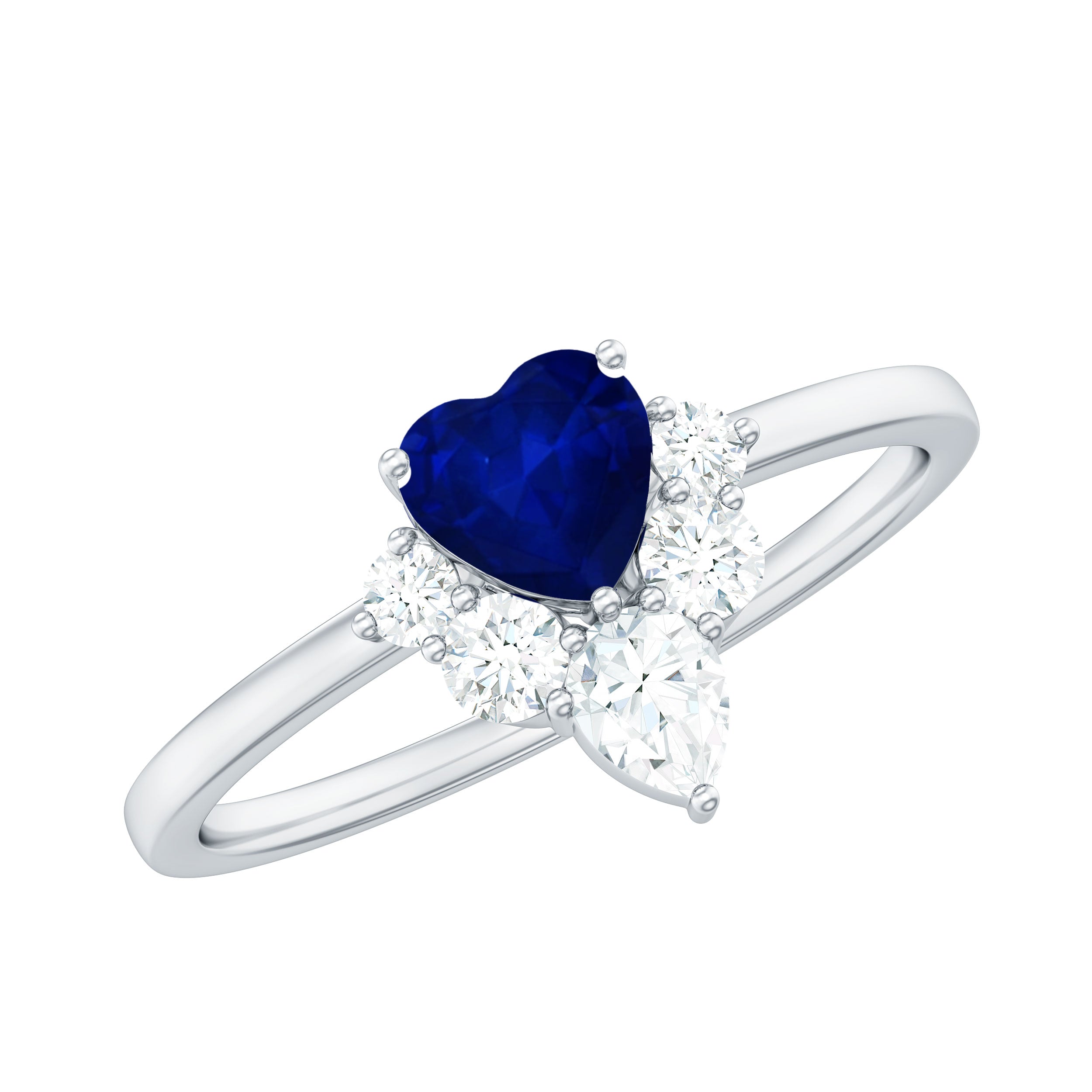1 CT Heart Blue Sapphire Promise Ring with Diamond Accent