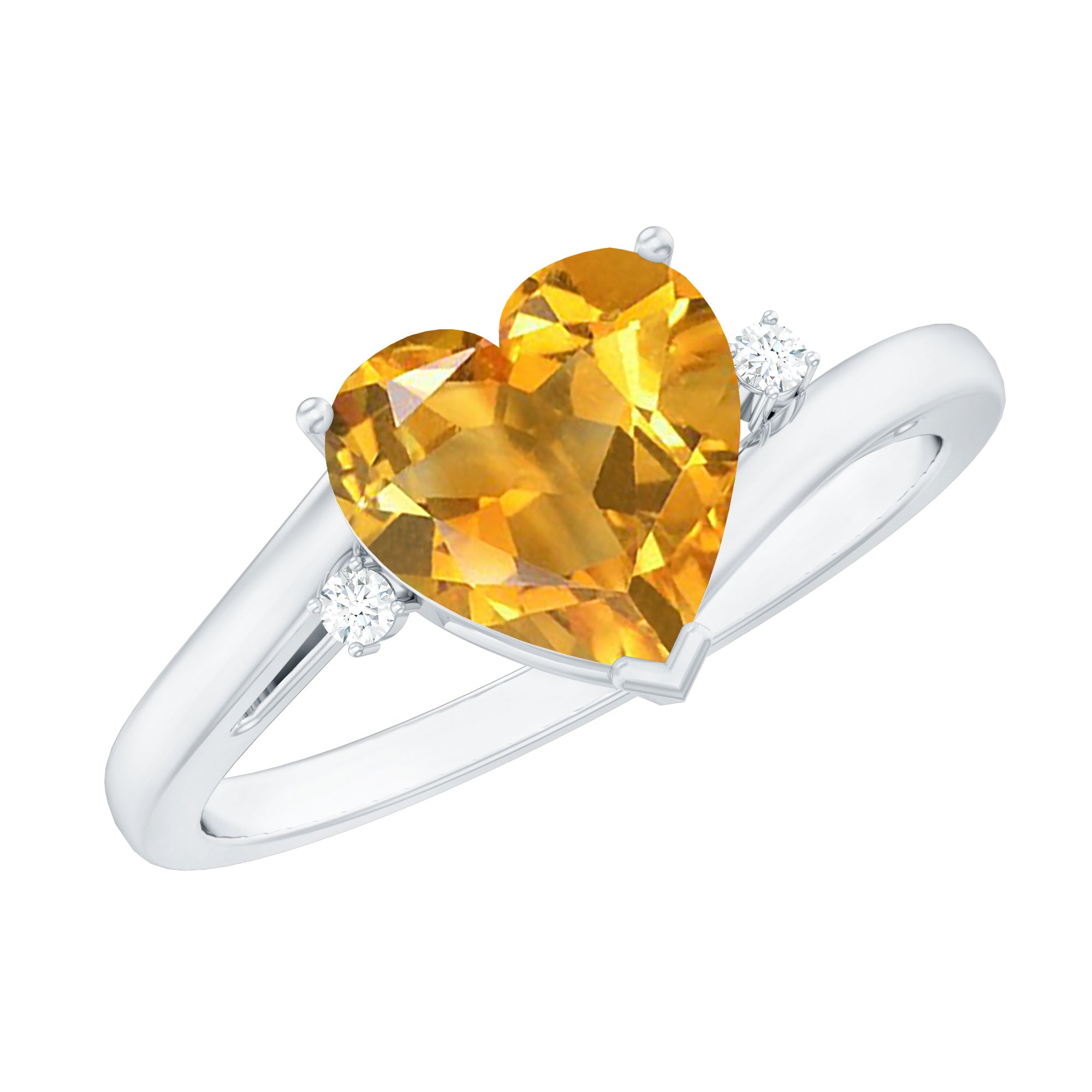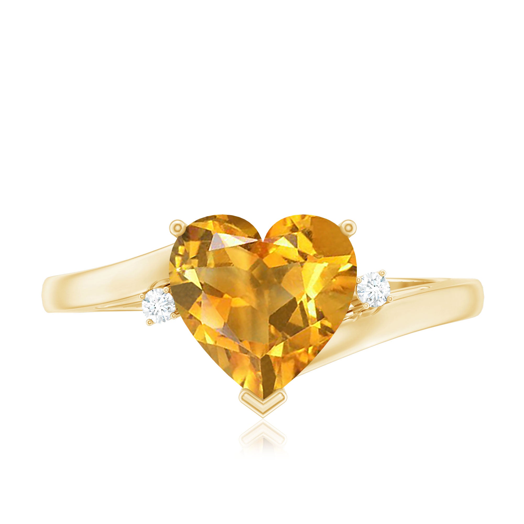 1 CT Heart Shape Citrine Solitaire Promise Ring with Diamond