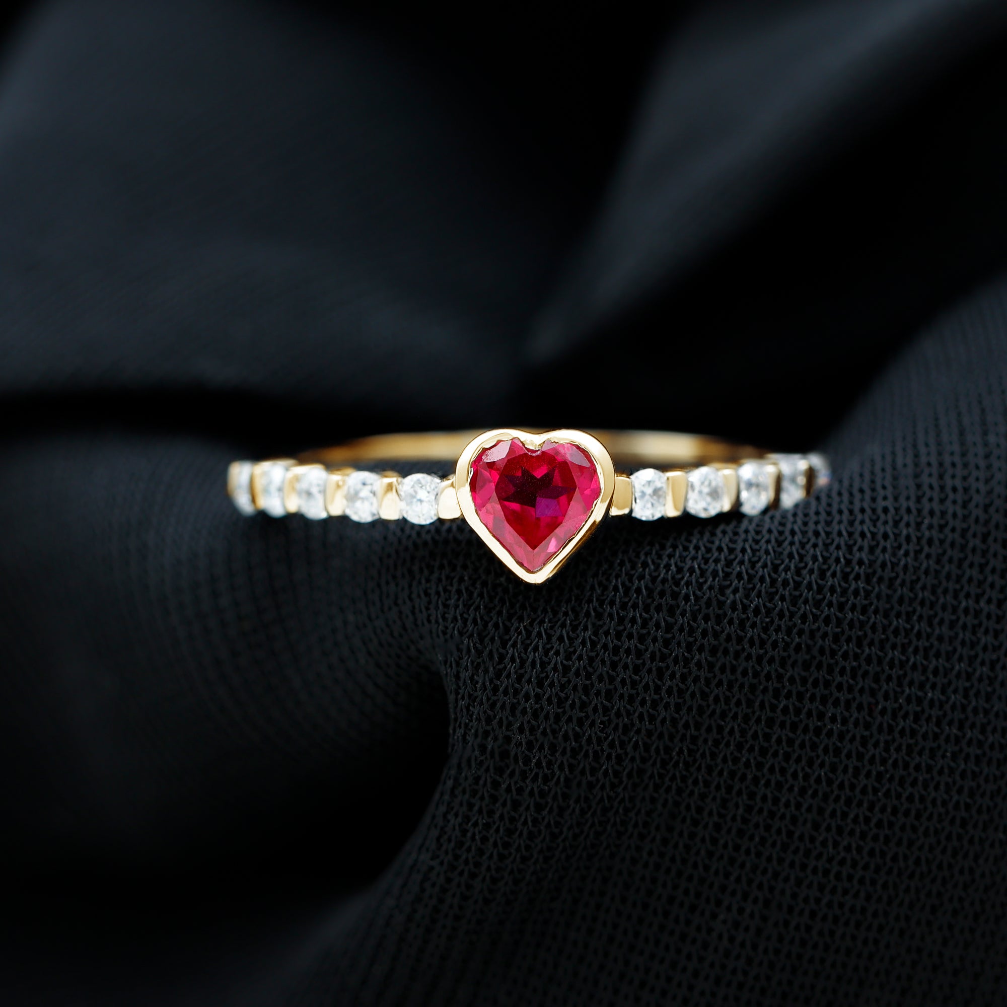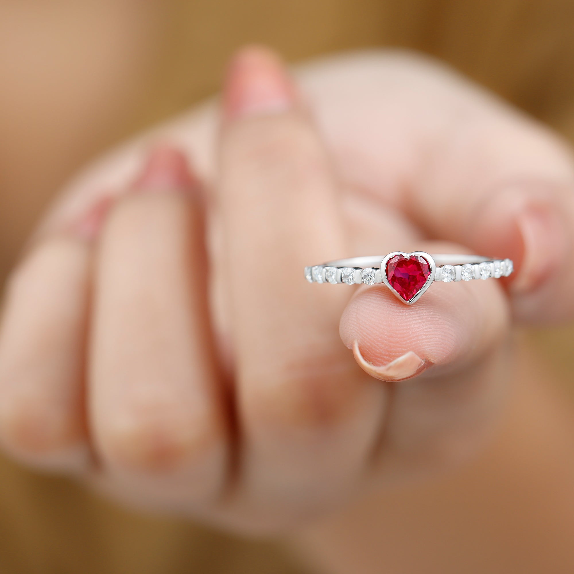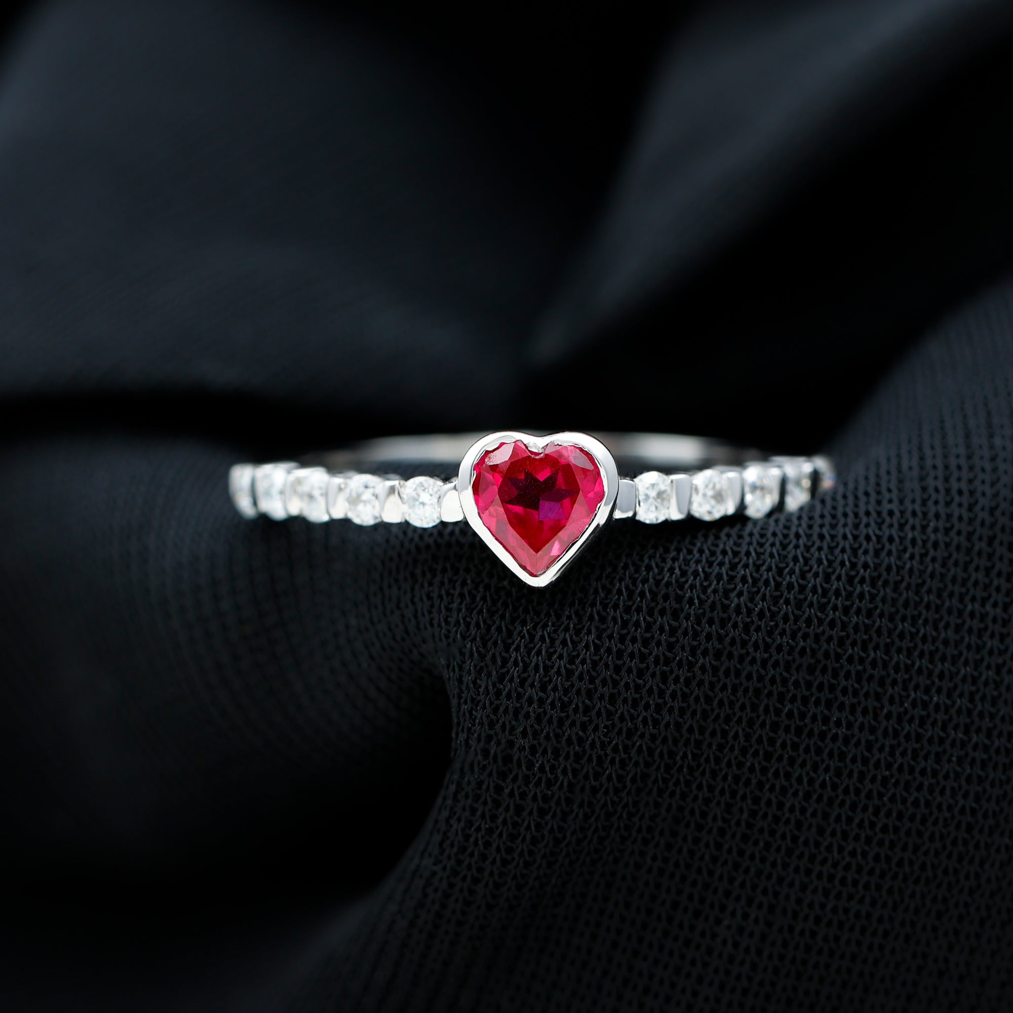 1 CT Heart Shape Created Ruby Solitaire Engagement Ring with Diamond