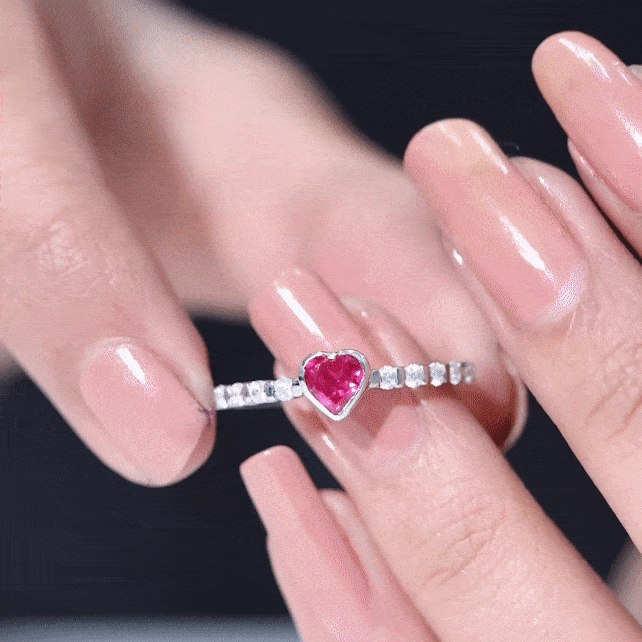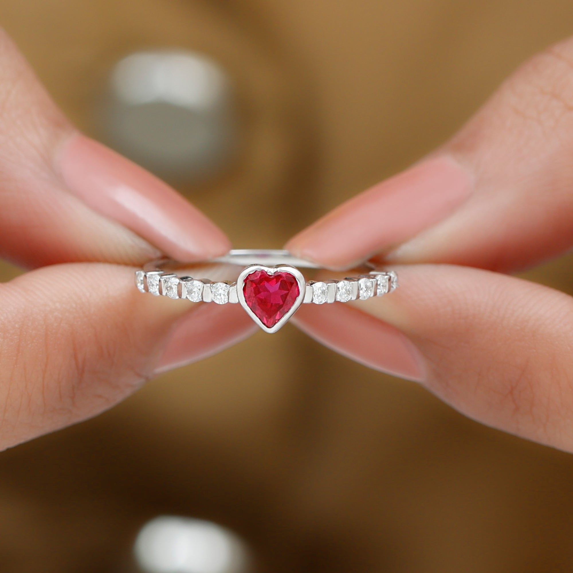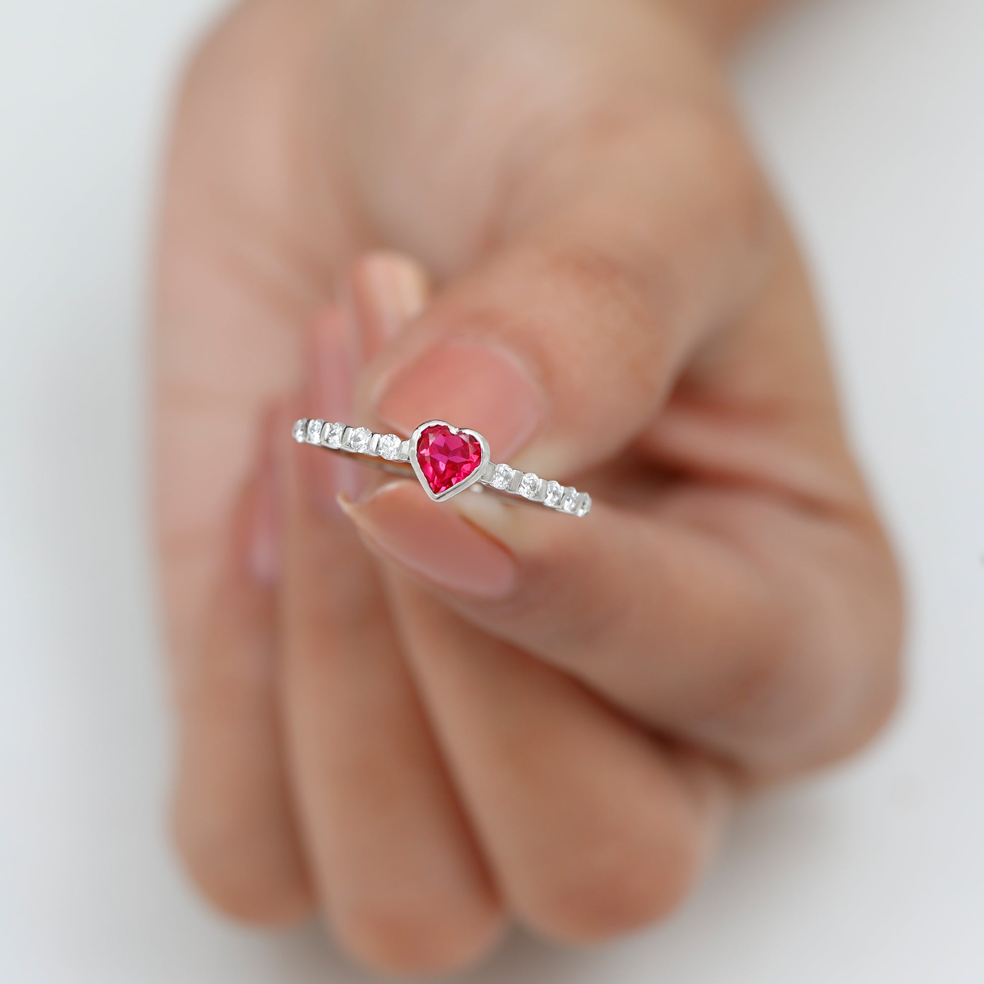 1 CT Heart Shape Created Ruby Solitaire Engagement Ring with Diamond