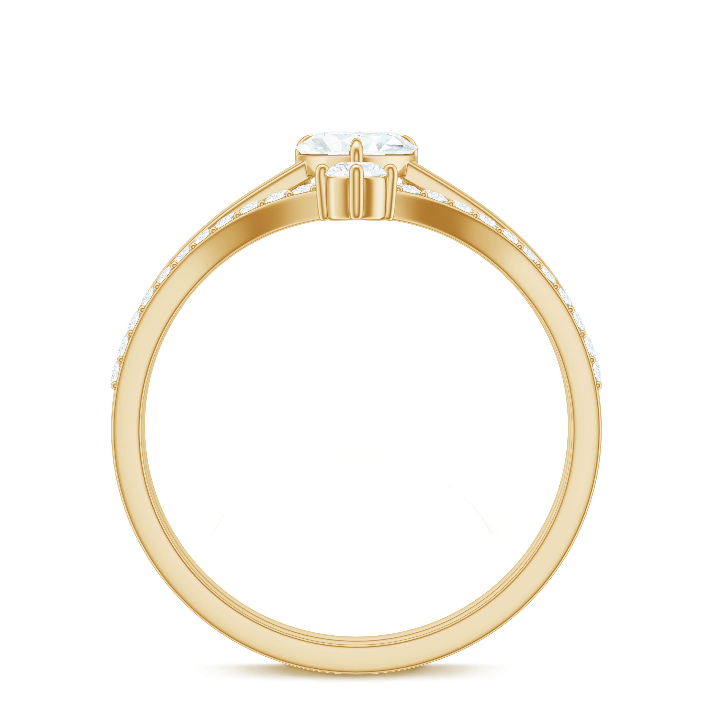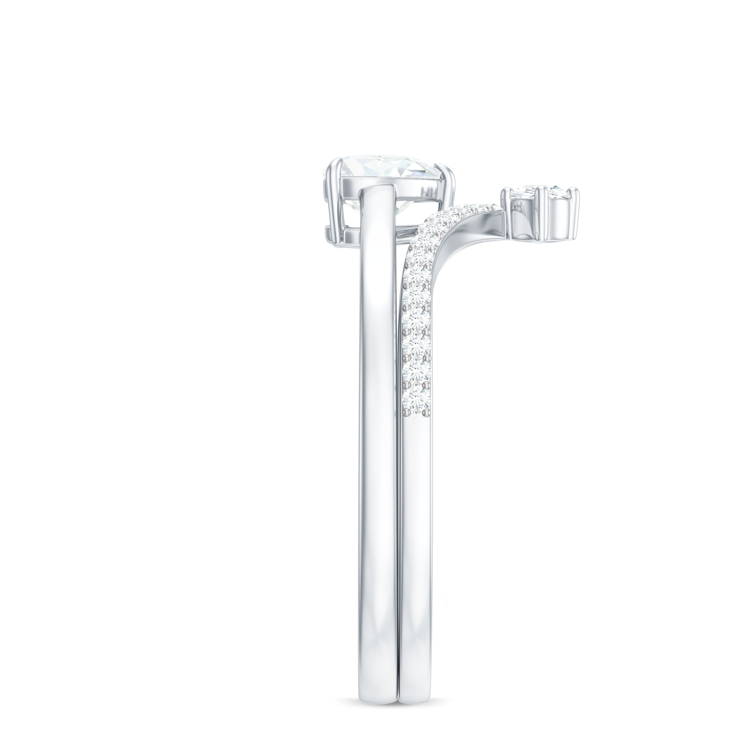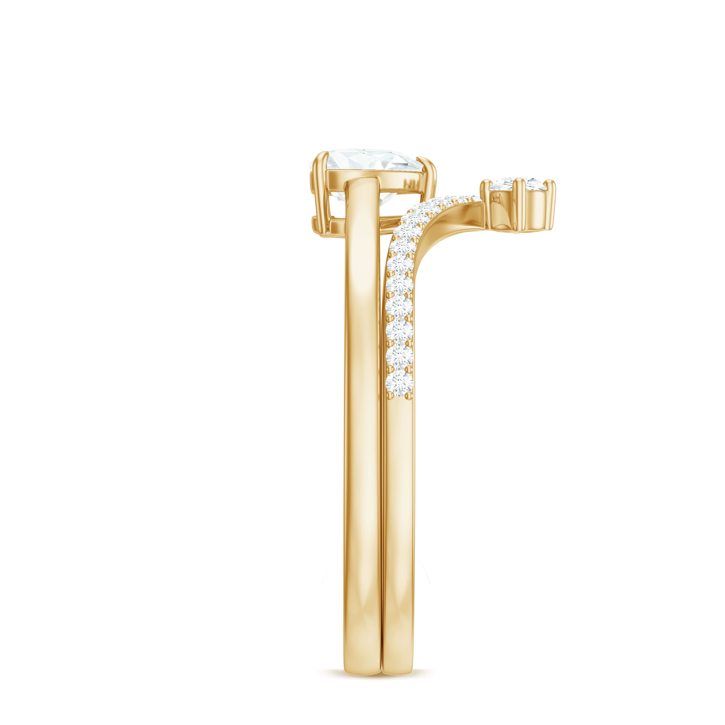 Timelessness of your bond can be seen with the exchange of perfect jewelry. This Zircon Wedding Ring Set is crafted in Gold for luxurious appeal, embellished with heart shape zircon set as solitaire in Claw Setting also it has Round Shape Simulated Diamond Enhancer Ring to add more charm to the ring set. Make your special day enchanting with presenting this Bridal Ring Set to your significant other.