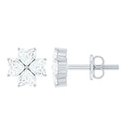 Uniquely crafted floral stud earrings with four heart-shaped moissanites in prong settings. Classic, trendy, and effortlessly radiant.