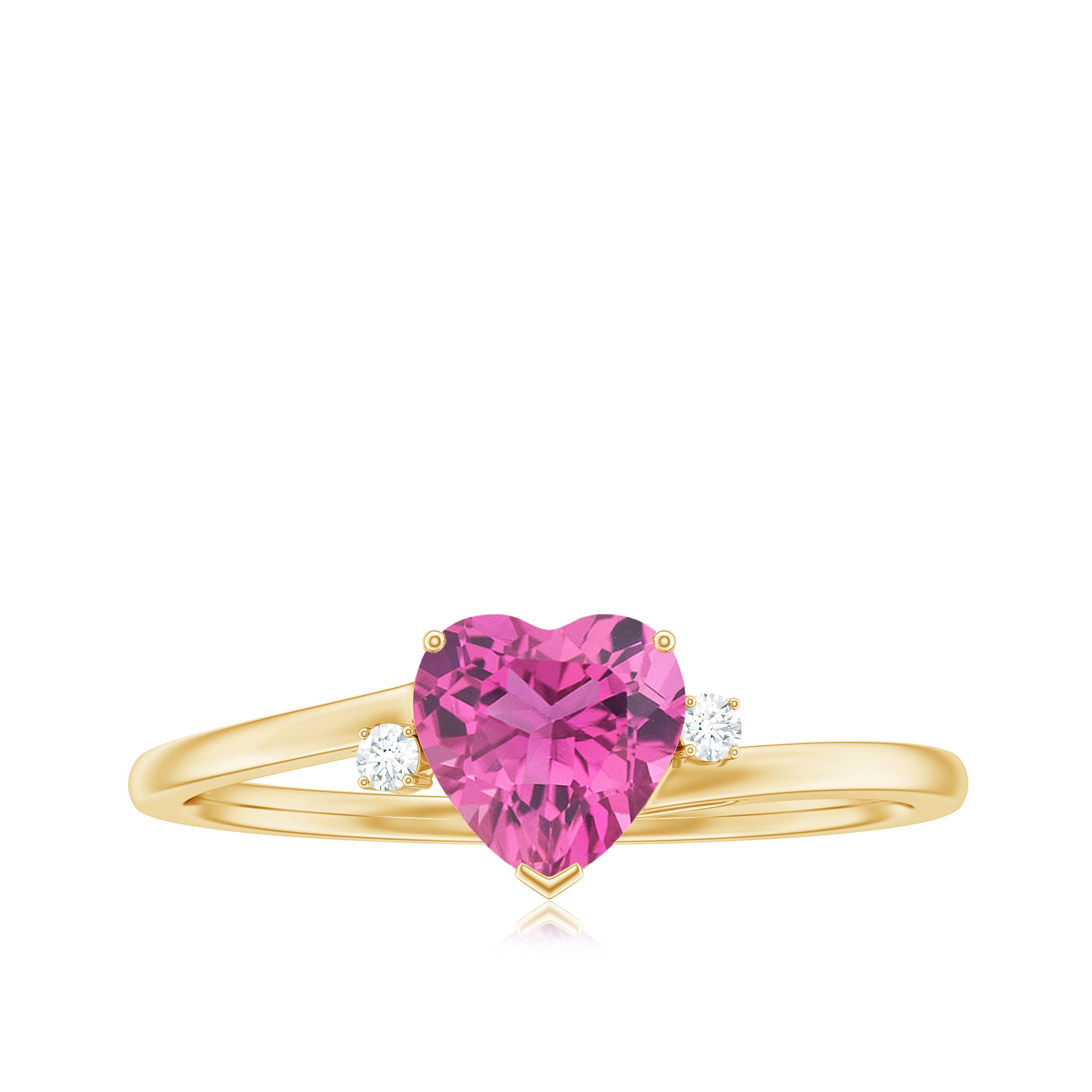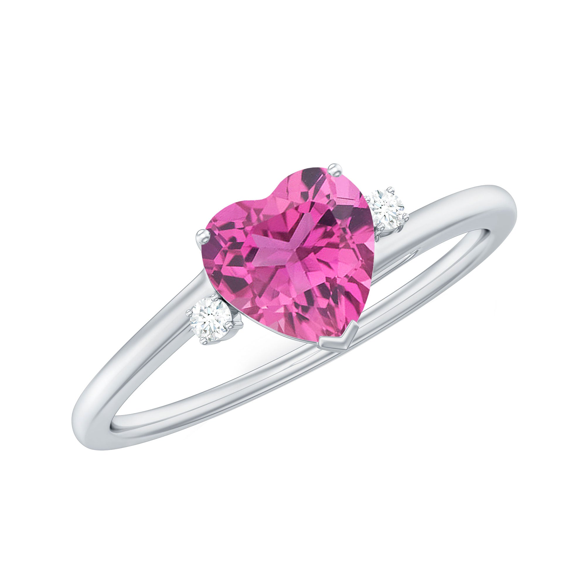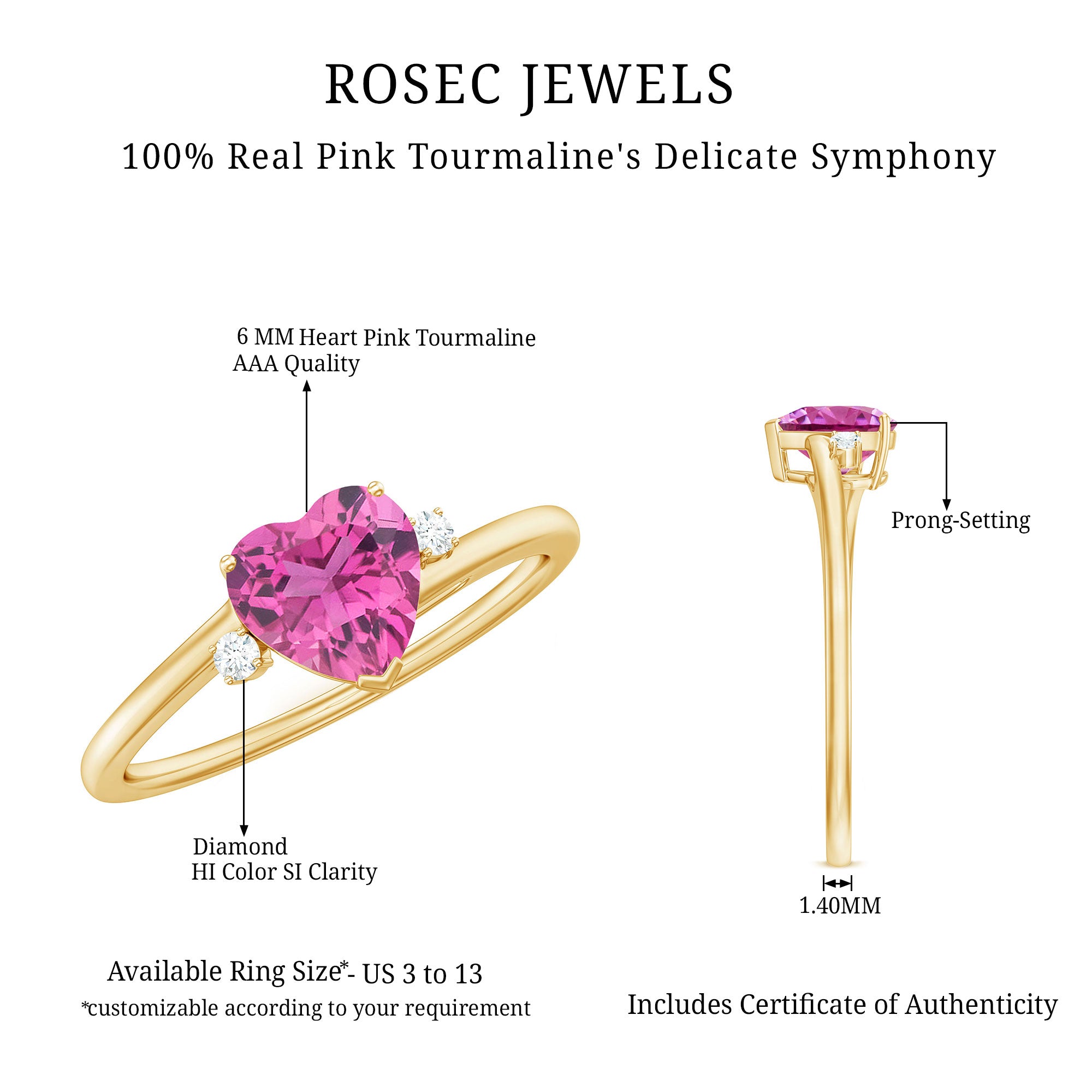 1 CT Heart Shape Pink Tourmaline Solitaire Promise Ring with Diamond