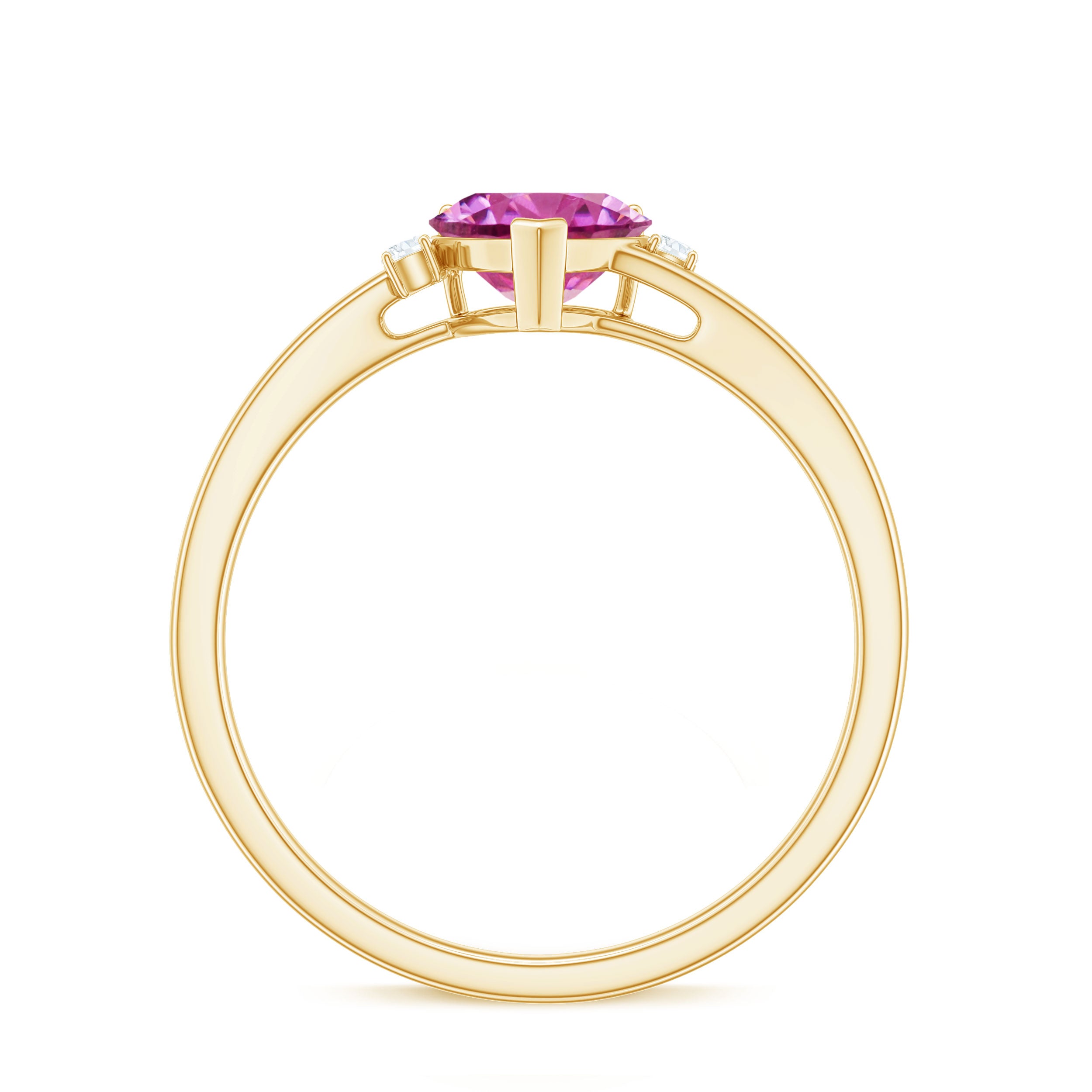 This exquisite promise ring features a heart shaped pink tourmaline gemstone set in prong setting, accented by sparkling Diamond on both sides. The heart shape of the stone symbolizes love and devotion, making it a perfect choice for a promise ring. The Diamond adds an extra touch of glamour and sophistication to the design, creating a stunning piece of jewelry that is sure to be treasured for years to come.