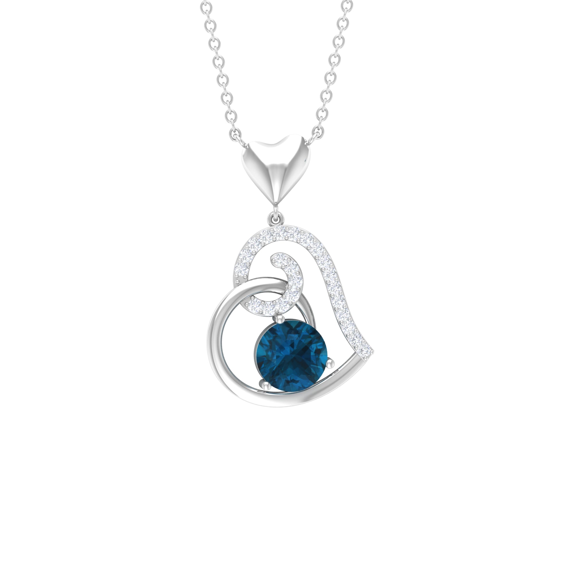1 CT London Blue Topaz and Diamond Heart Drop Pendant