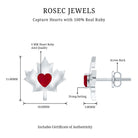 1 CT Maple Leaf Stud Earrings with Heart Shaped Ruby