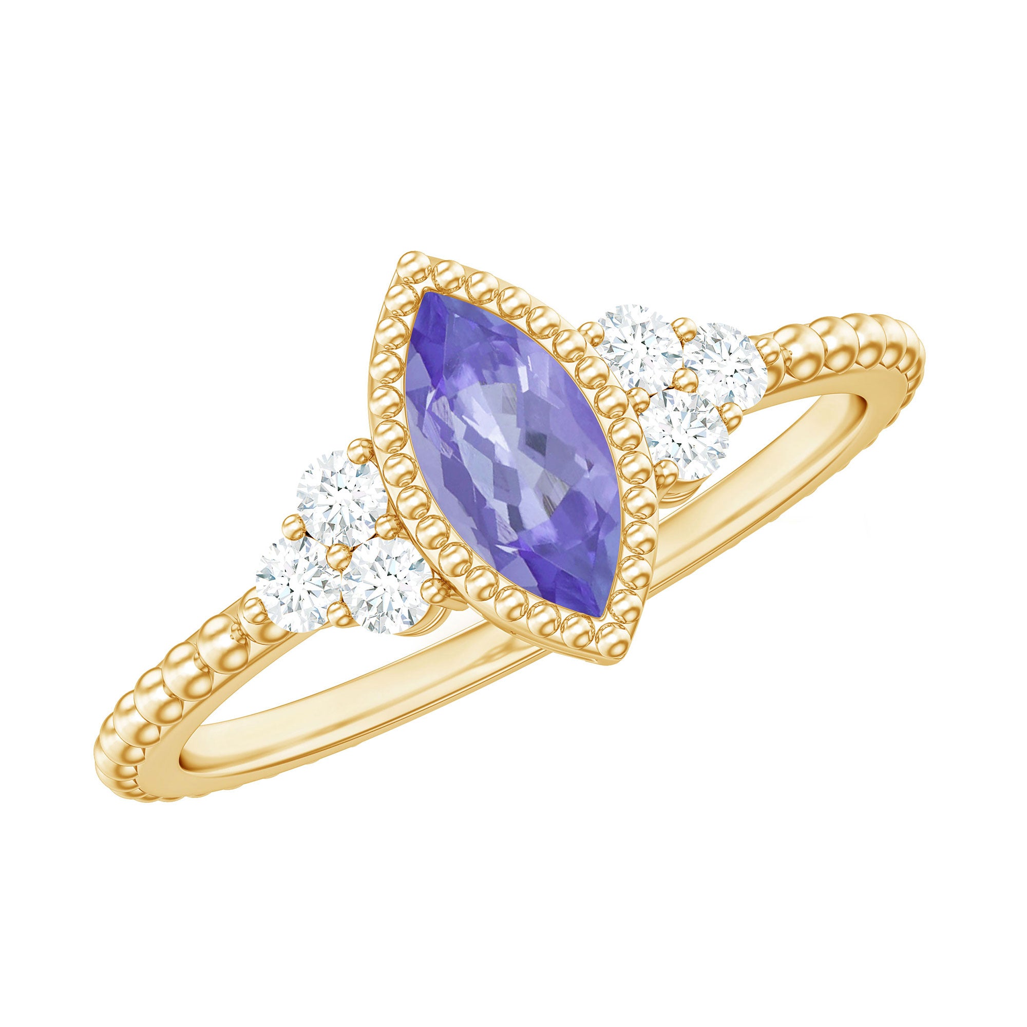 Shine your attire when you don this Tanzanite Ring. Being embellished with Marquise Cut Tanzanite in Bezel Setting and Diamond on Solitaire Ring. Composed of Gold, this Tanzanite Solitaire Ring makes a true statement when worn.