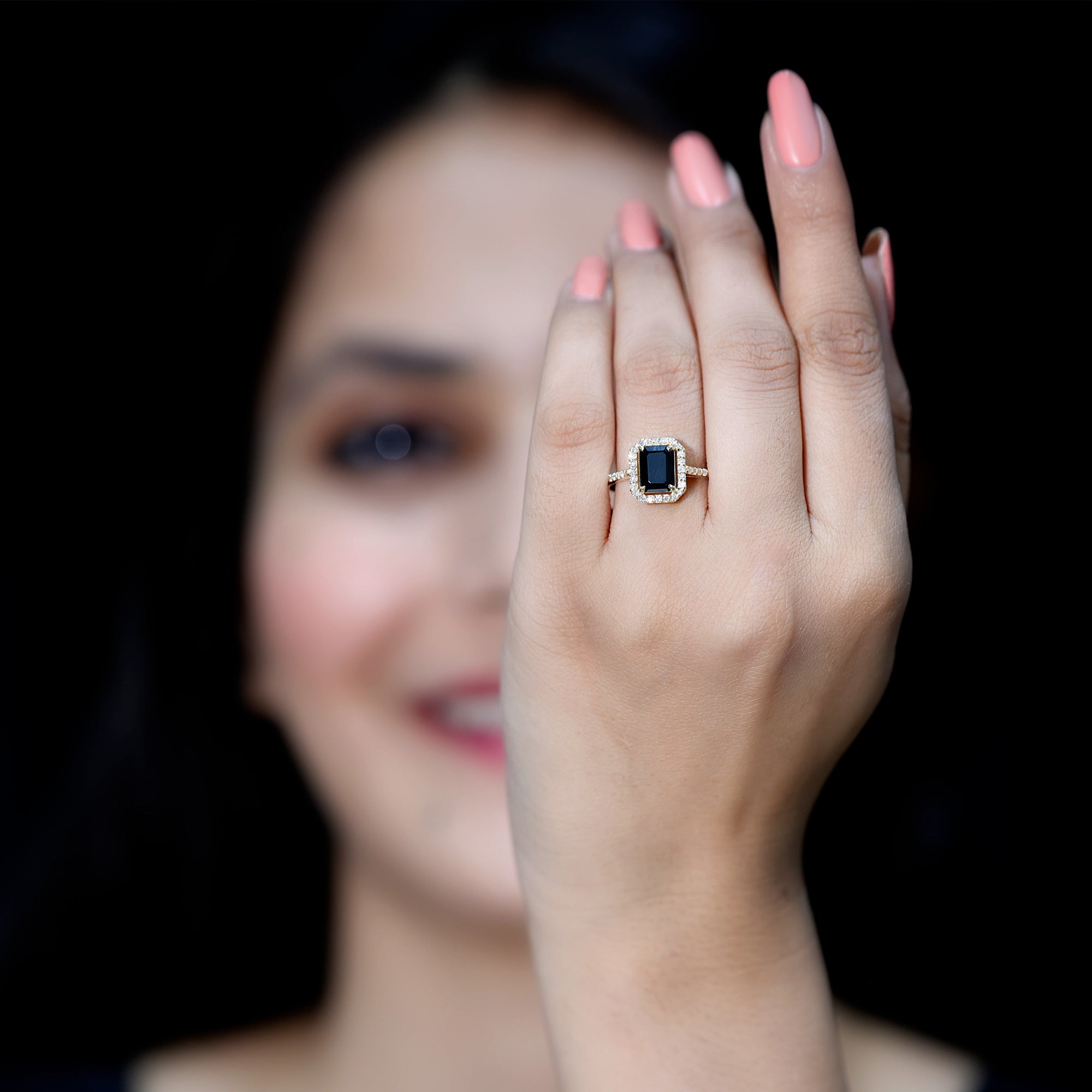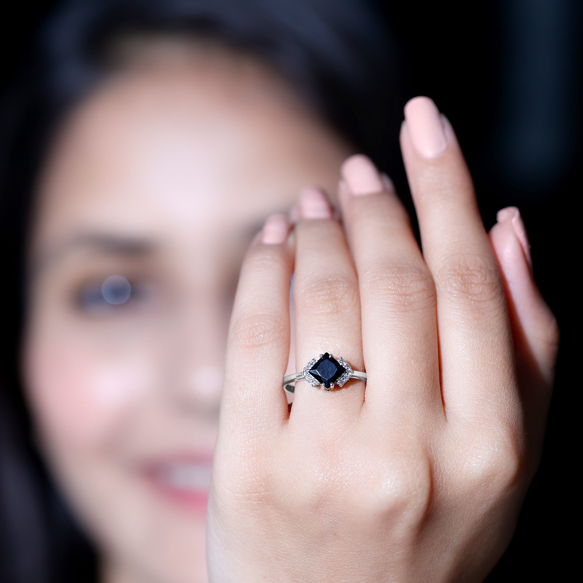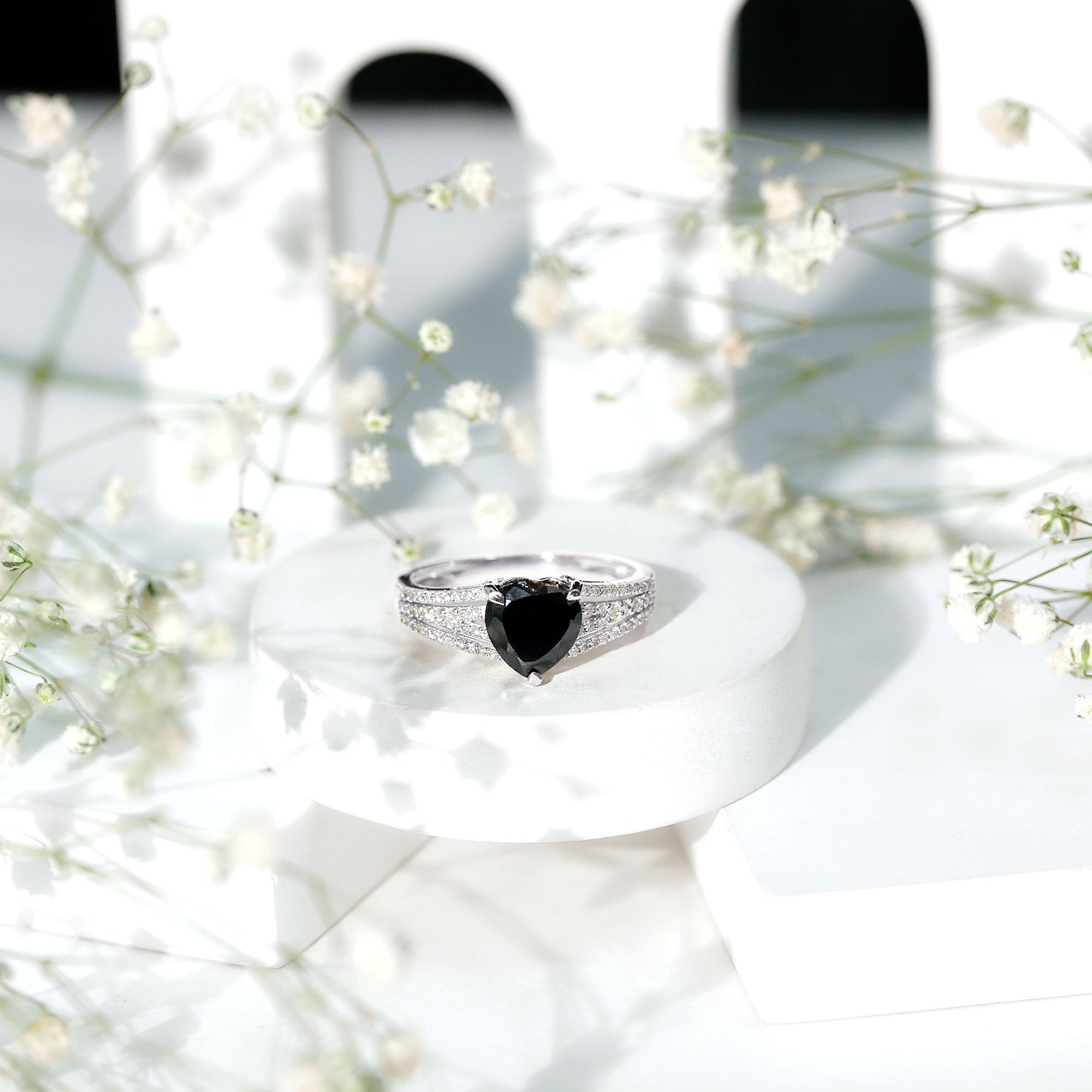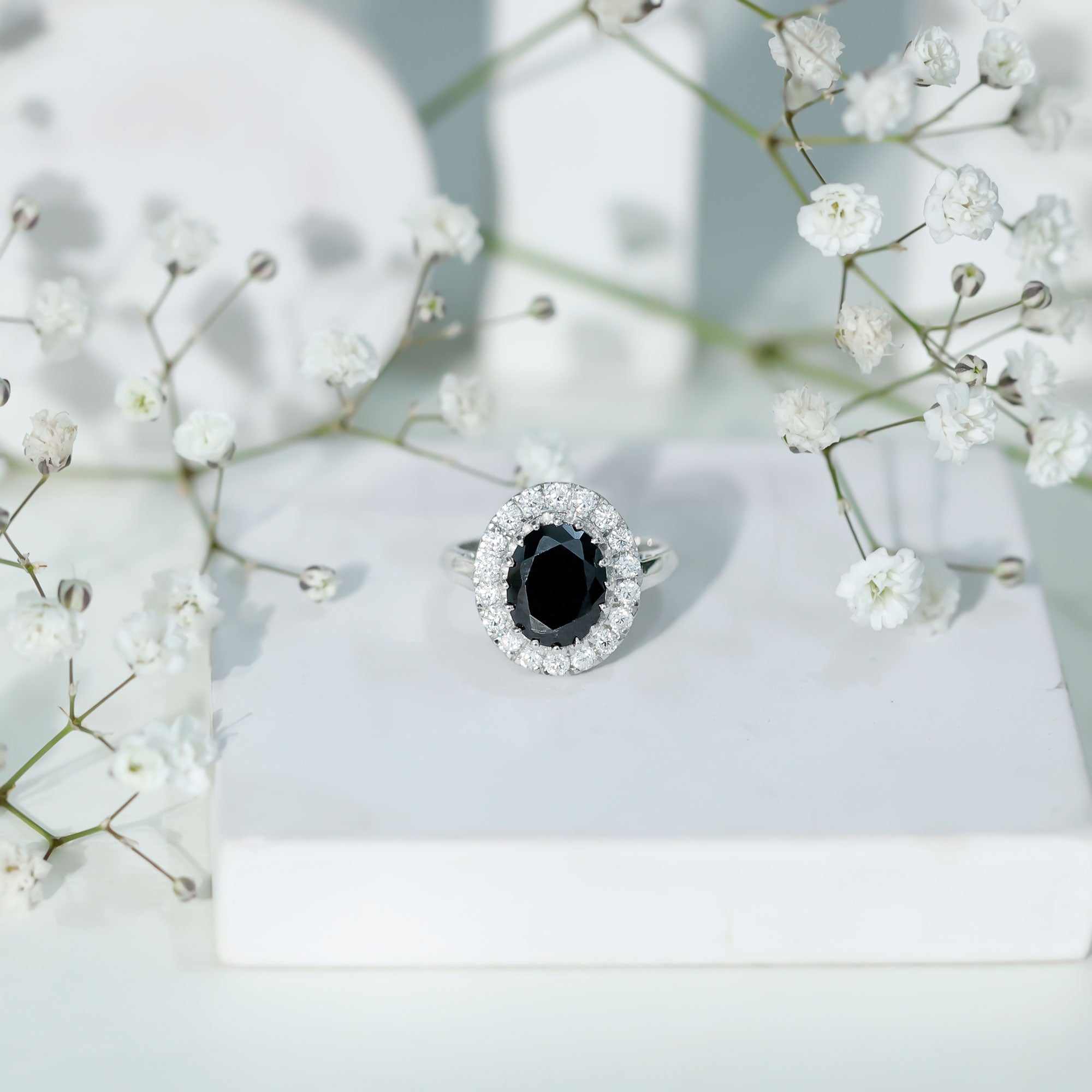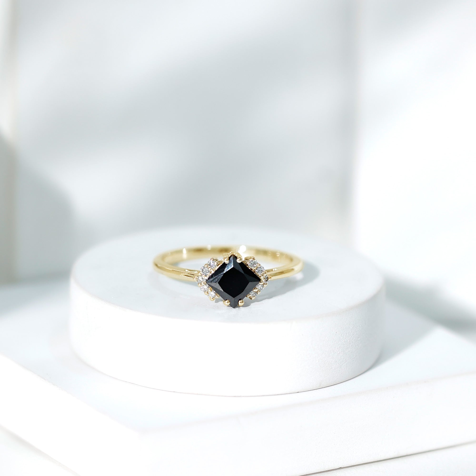 Lab Created Black Diamond Halo Engagement rings: Black diamond making the heart of the ring is surrounded by the accent of other shining gemstones, like moissanite or diamonds. The halo around the gemstone not only adds a sparkle, but offers it protection too.