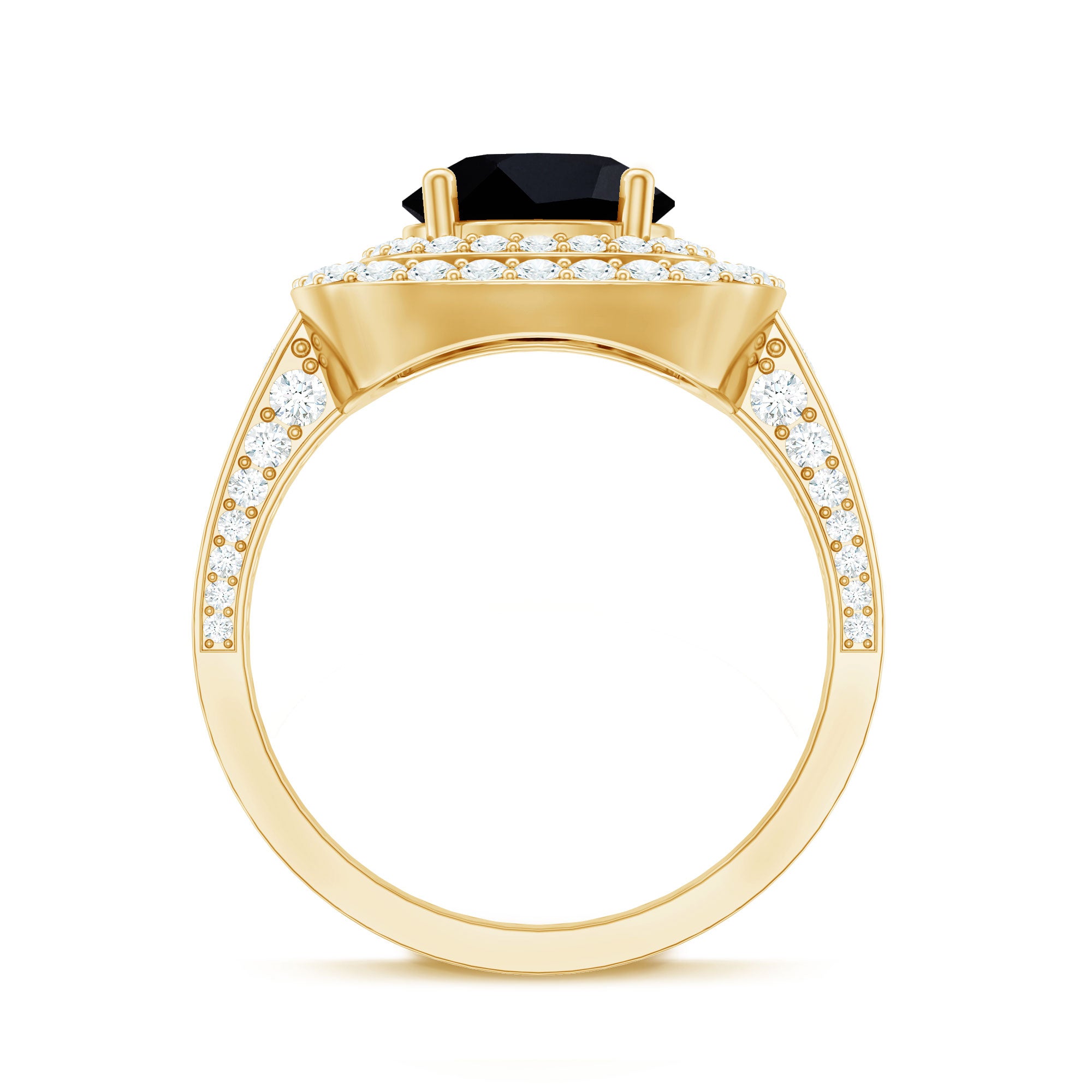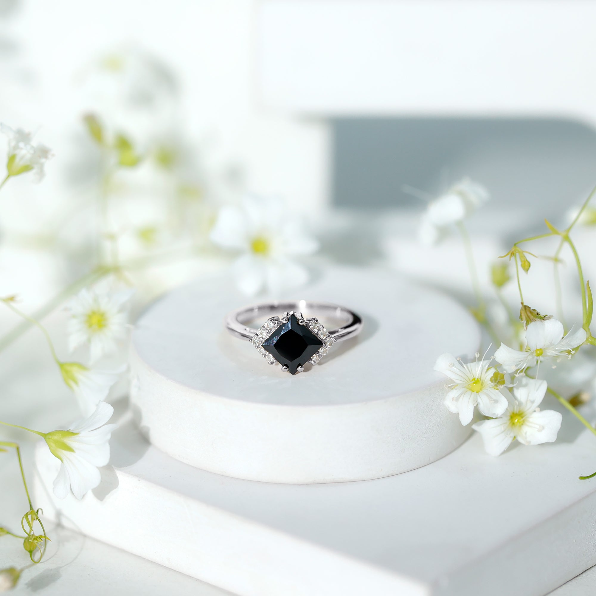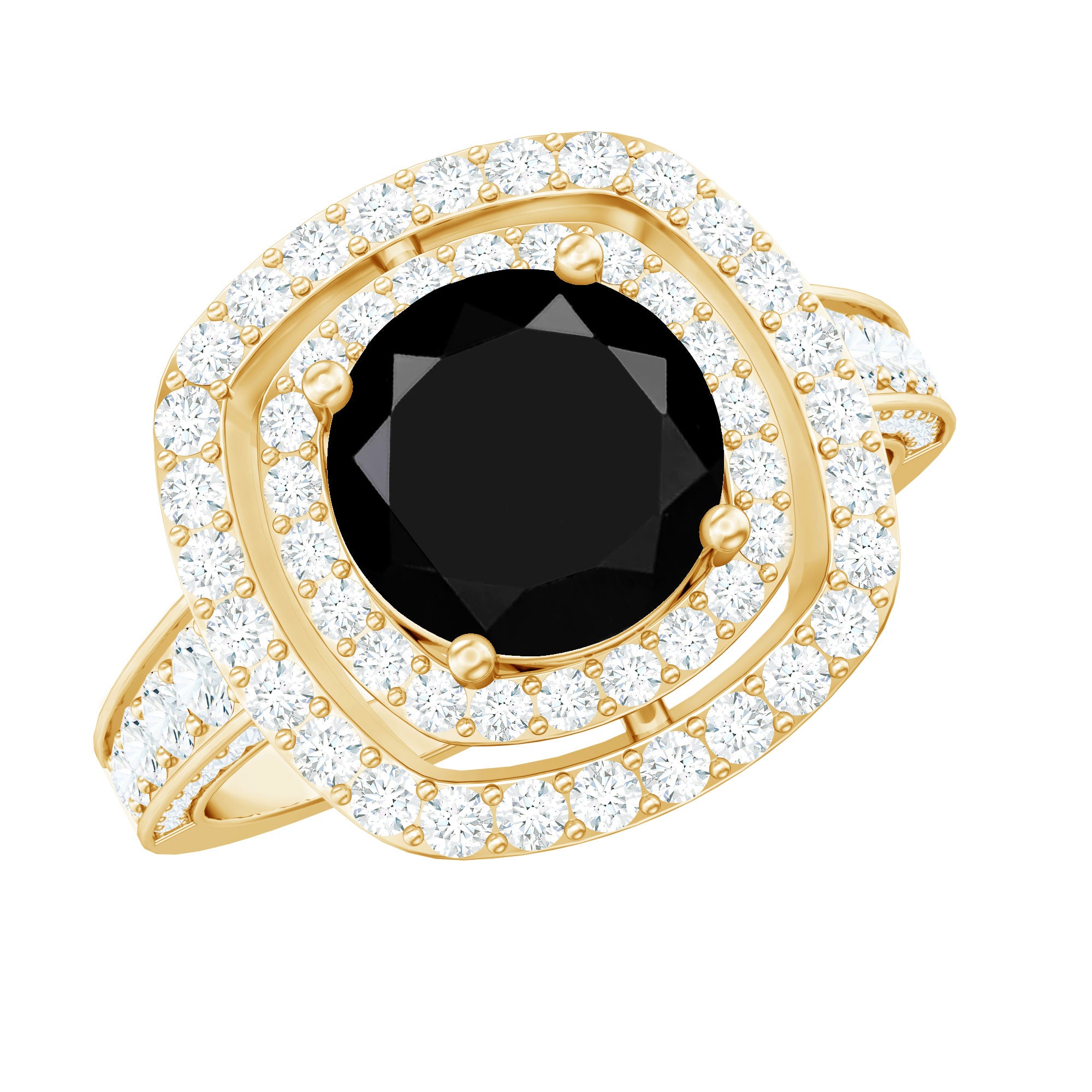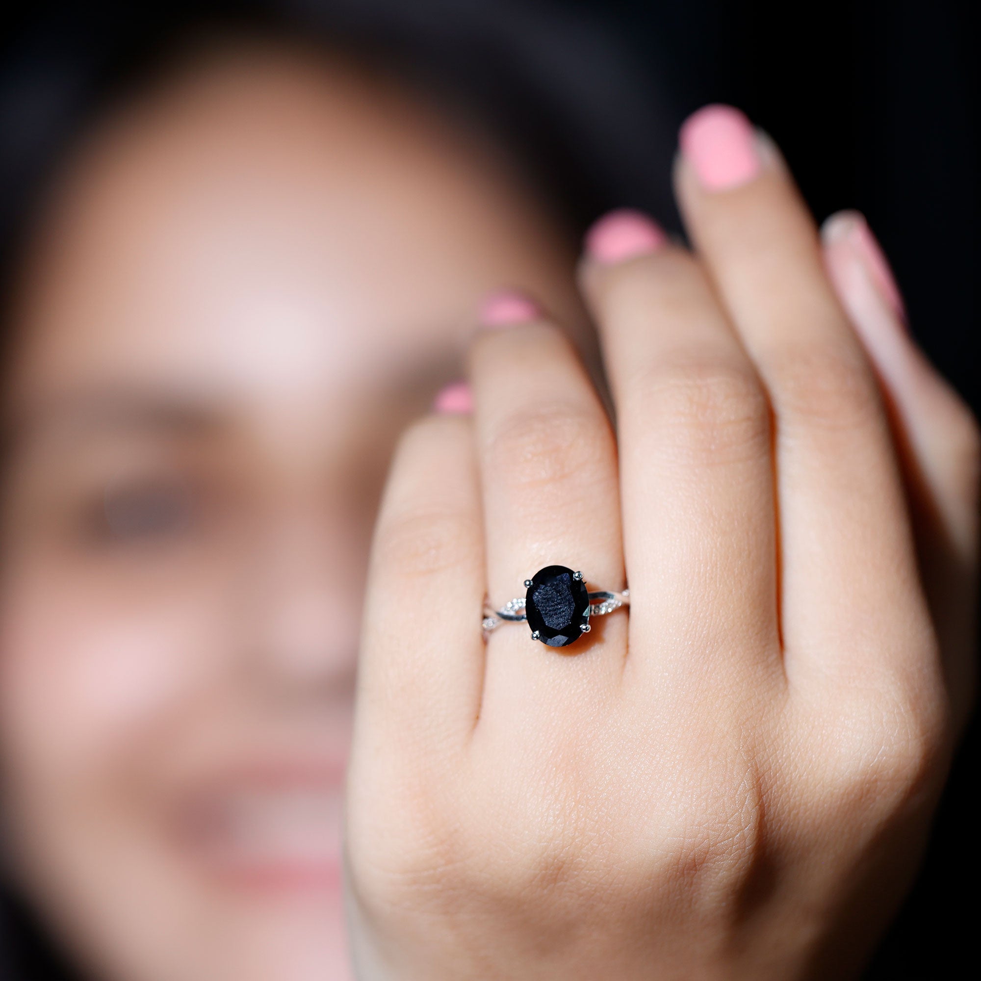 Lab Created Black Diamond Halo Engagement rings: Black diamond making the heart of the ring is surrounded by the accent of other shining gemstones, like moissanite or diamonds. The halo around the gemstone not only adds a sparkle, but offers it protection too.