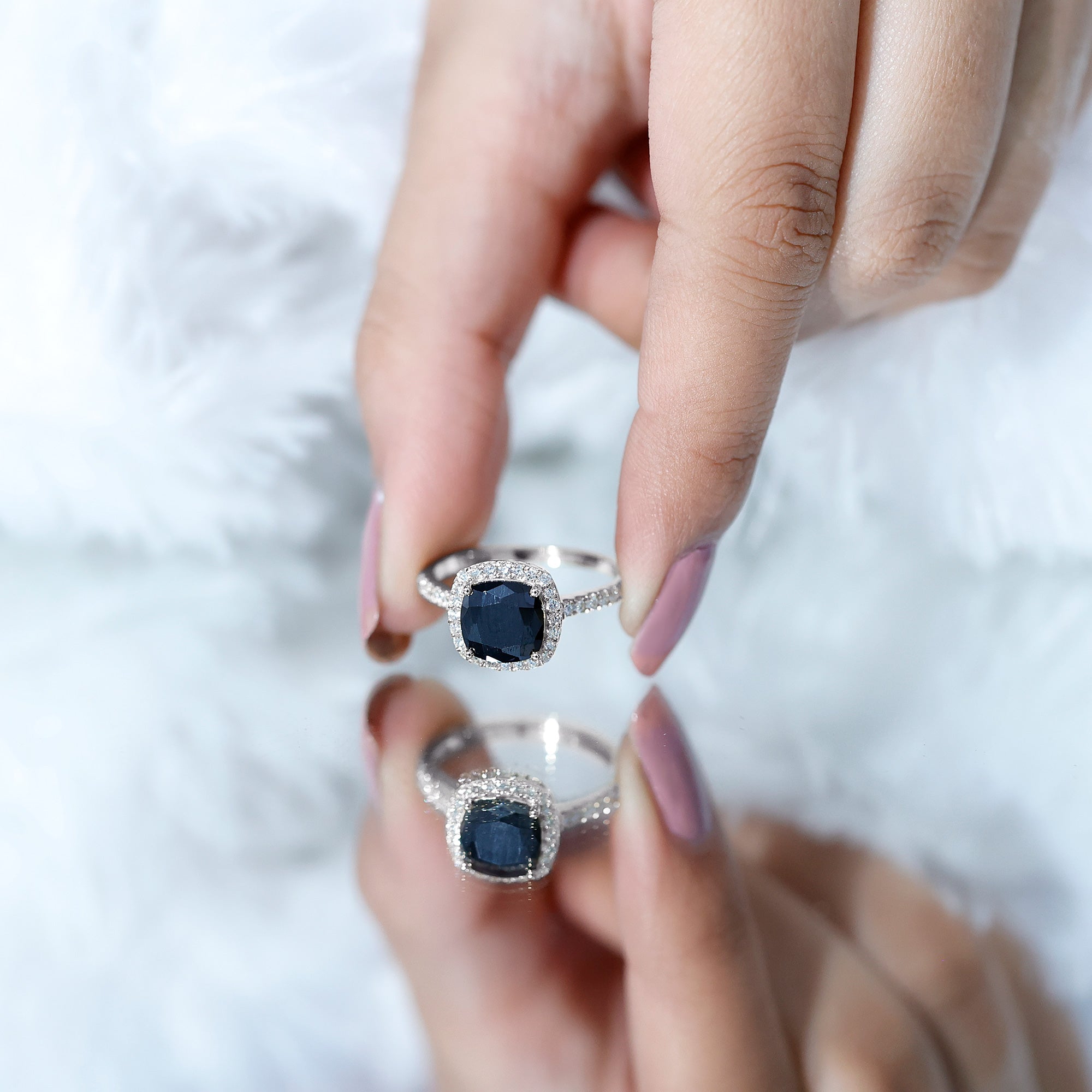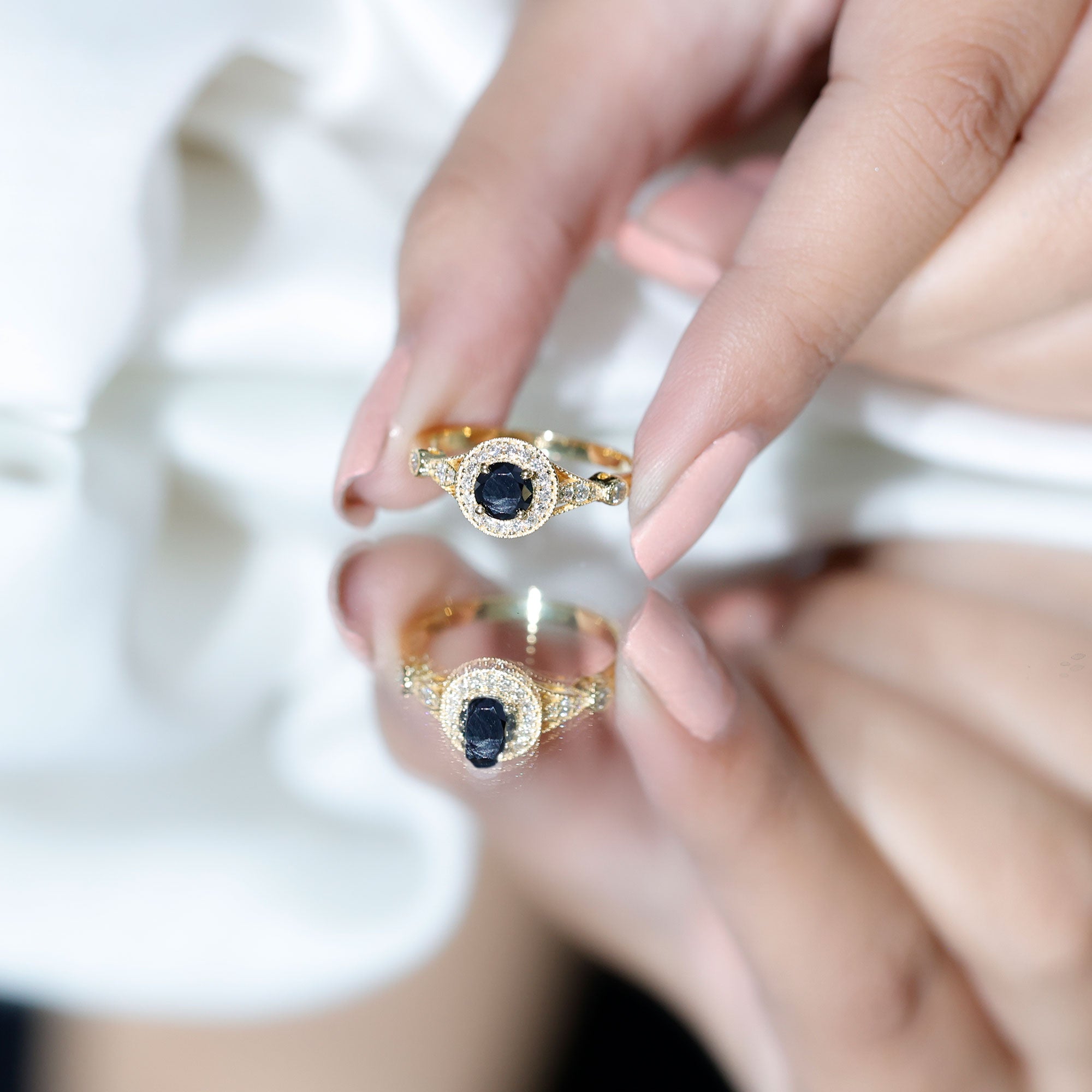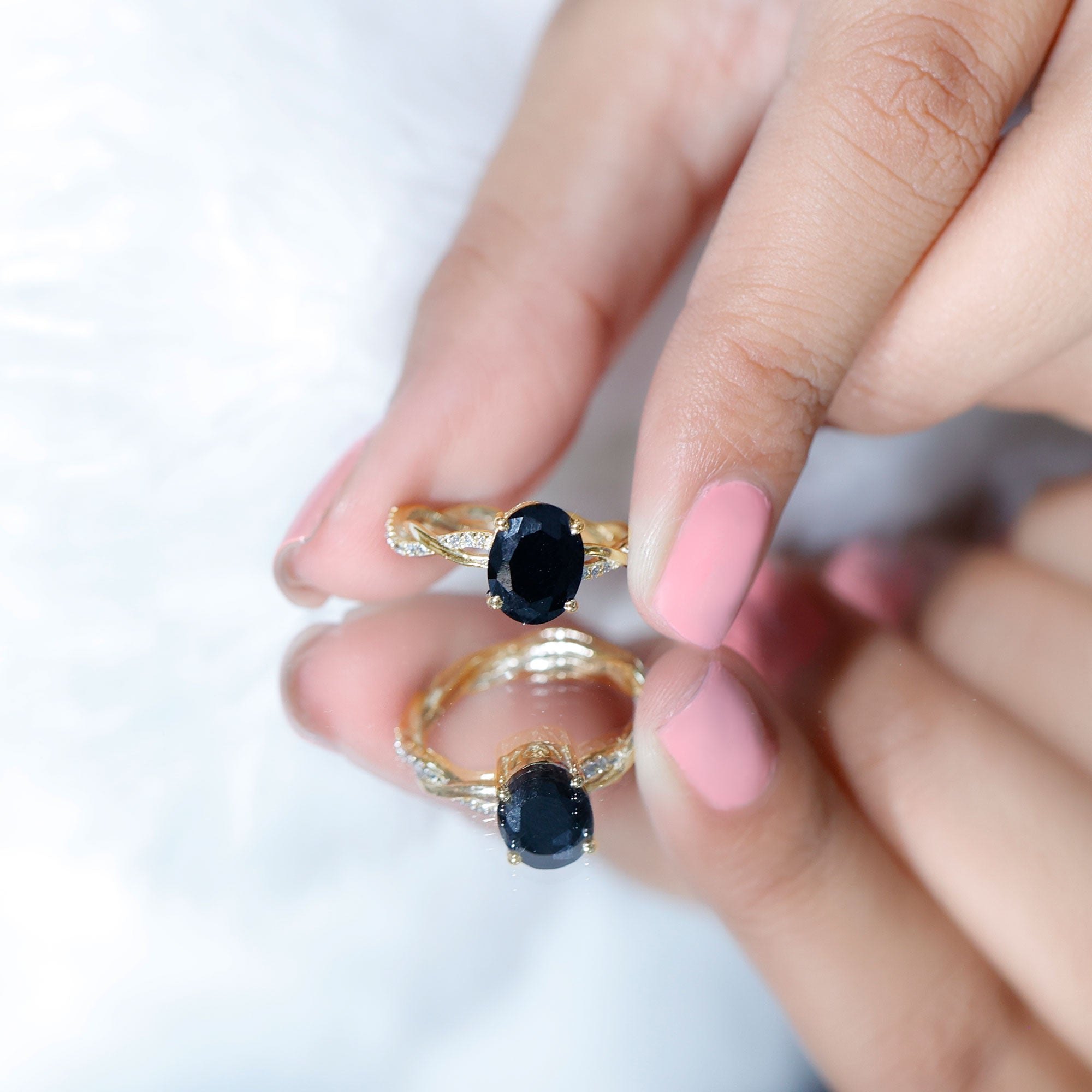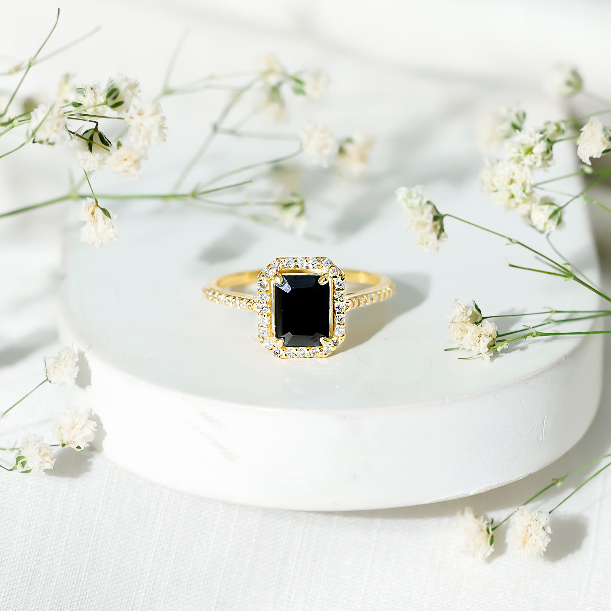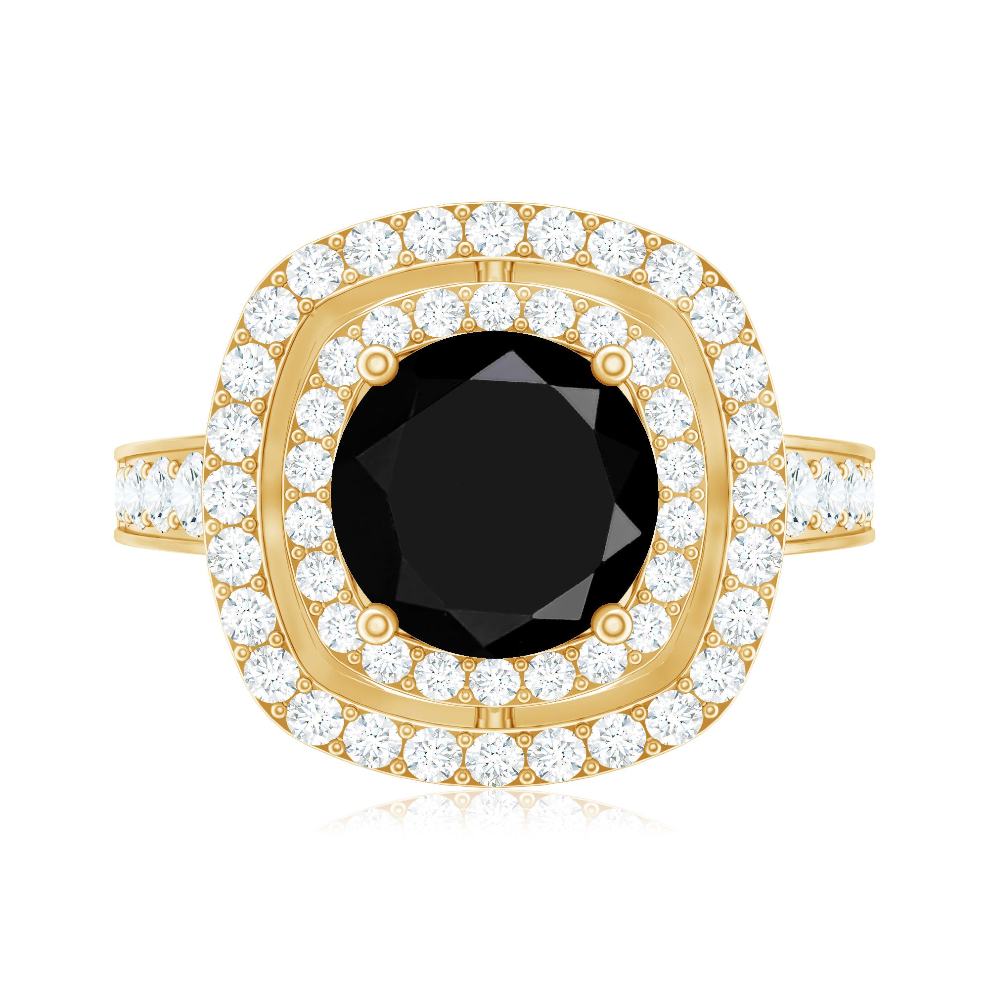 Lab Created Black Diamond Halo Engagement rings: Black diamond making the heart of the ring is surrounded by the accent of other shining gemstones, like moissanite or diamonds. The halo around the gemstone not only adds a sparkle, but offers it protection too.