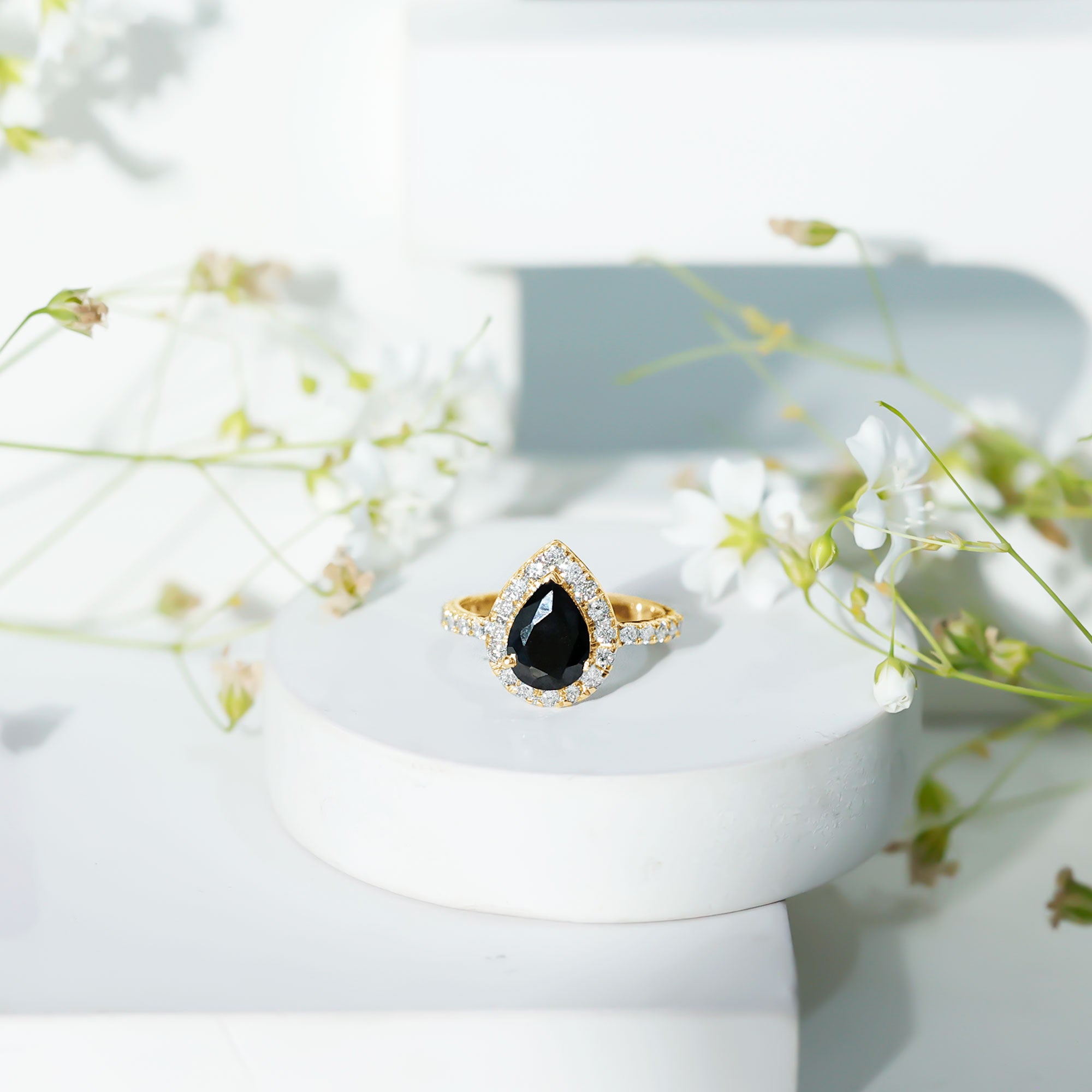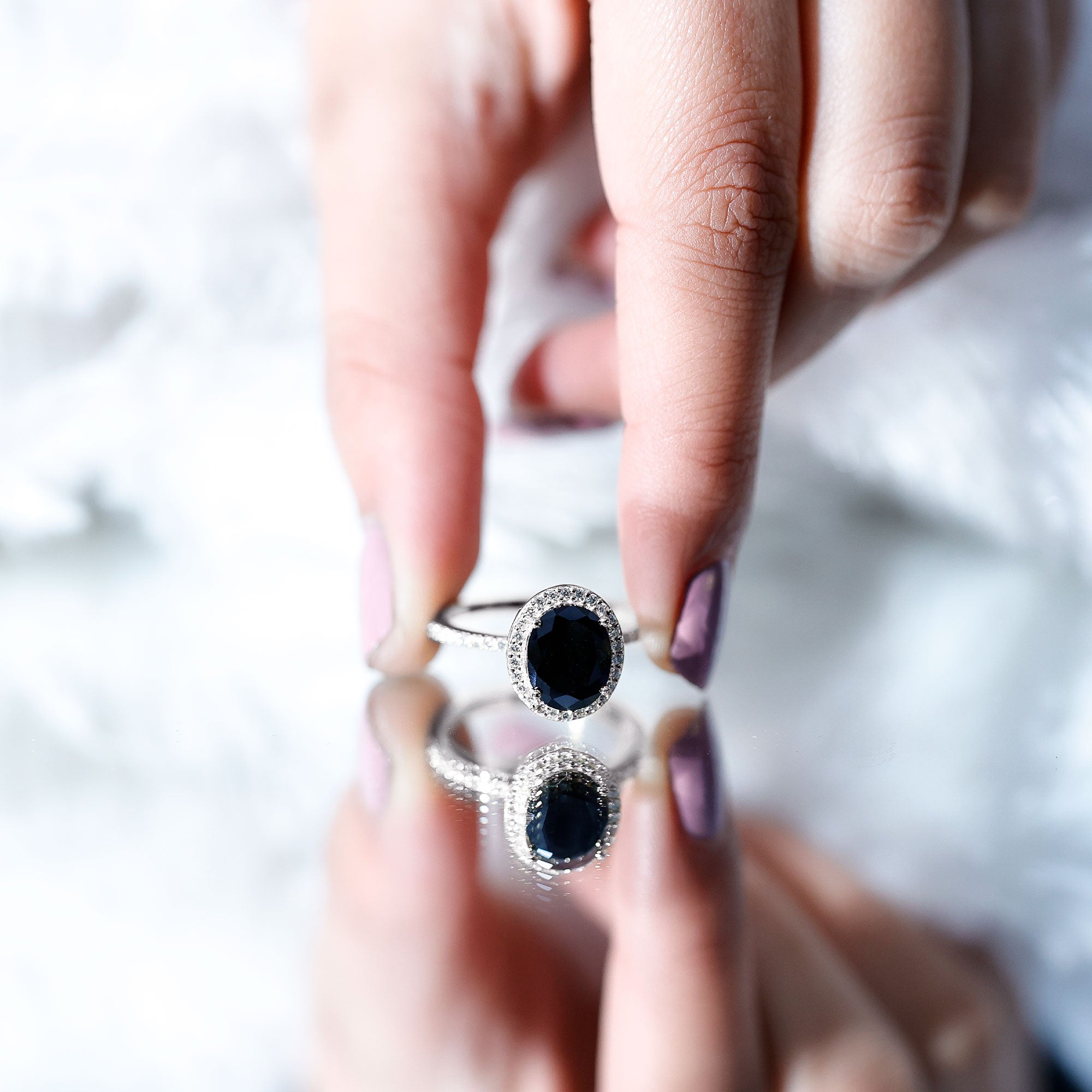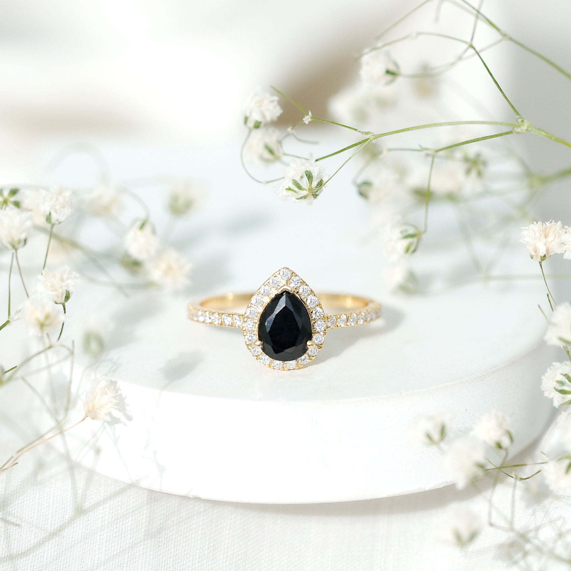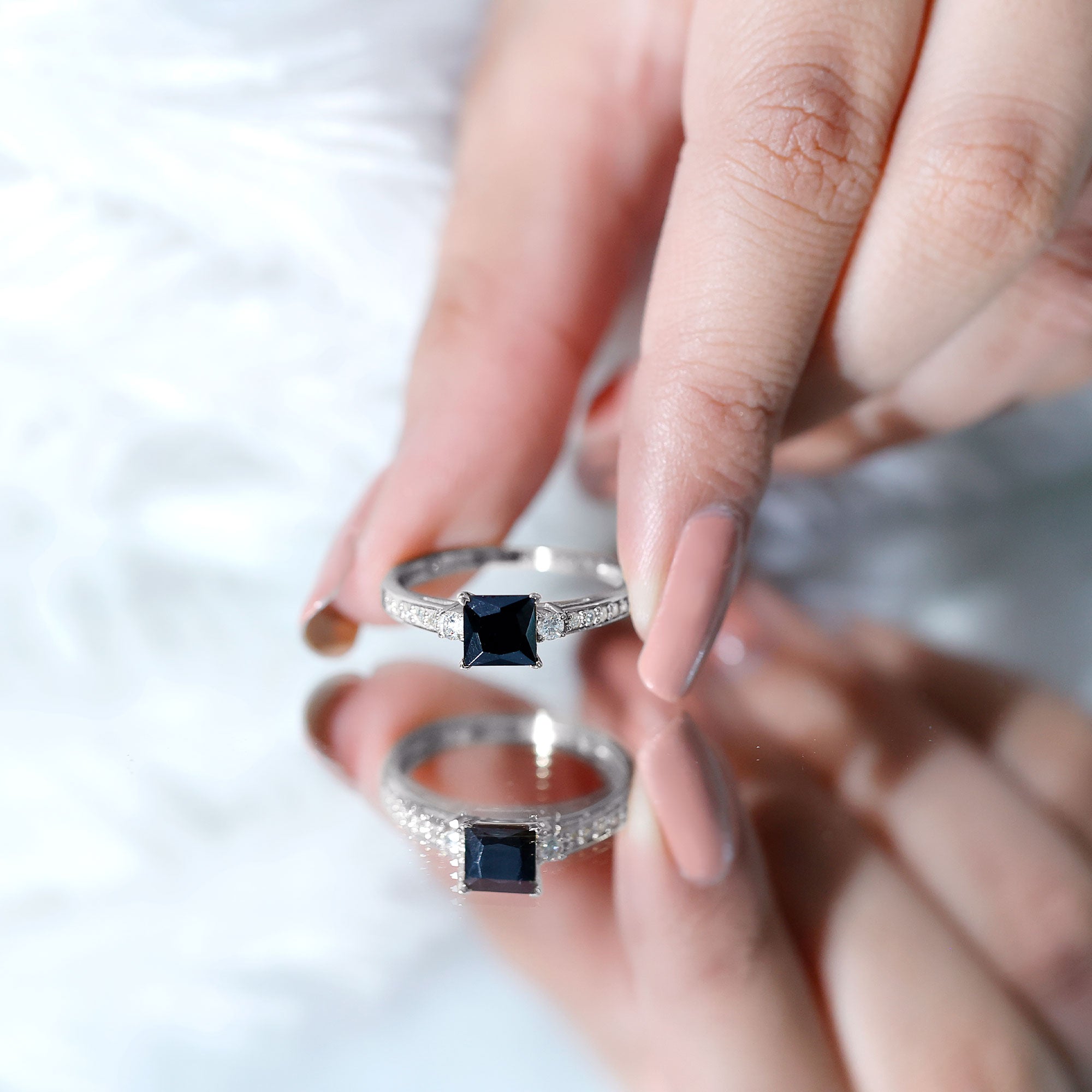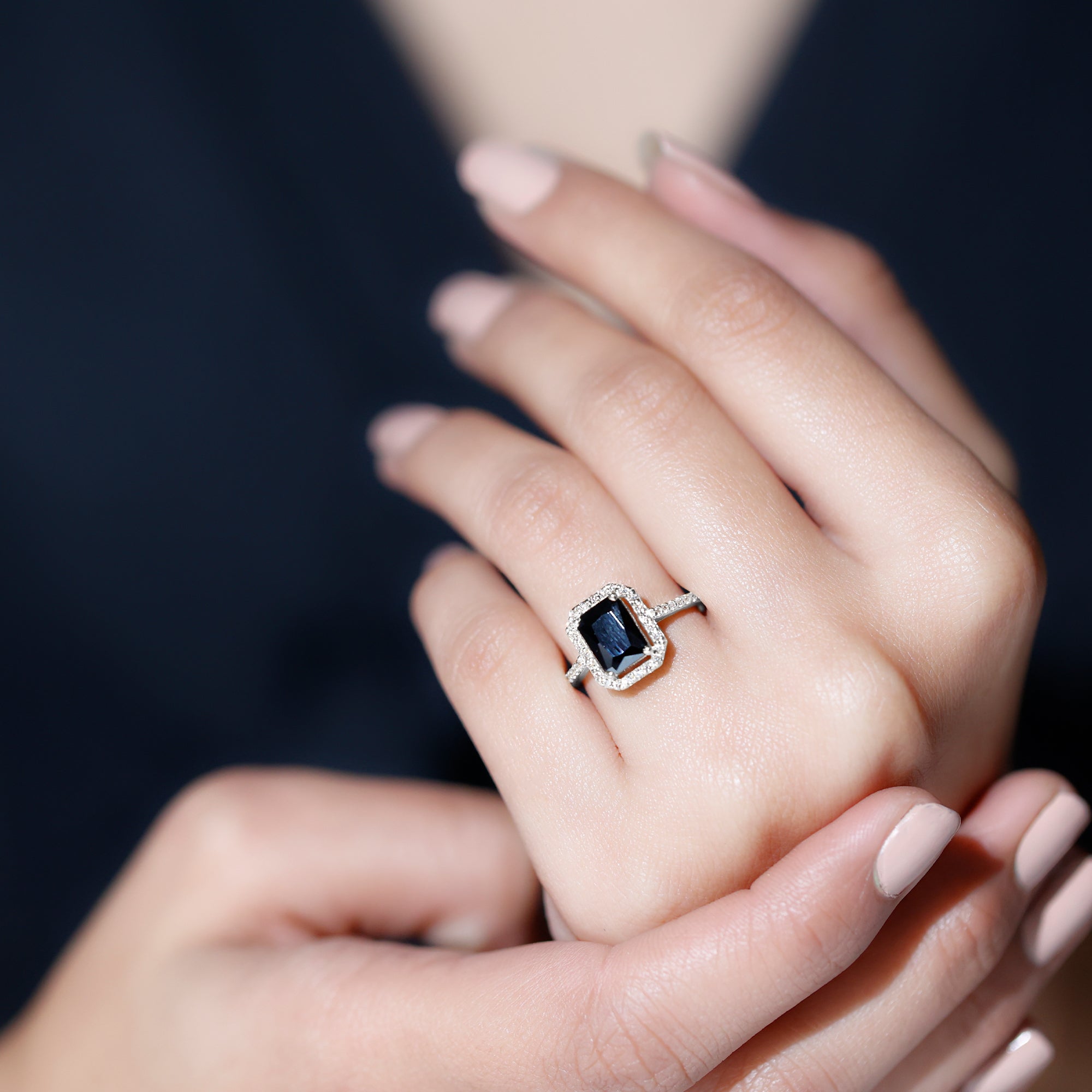 Lab Created Black Diamond Halo Engagement rings: Black diamond making the heart of the ring is surrounded by the accent of other shining gemstones, like moissanite or diamonds. The halo around the gemstone not only adds a sparkle, but offers it protection too.