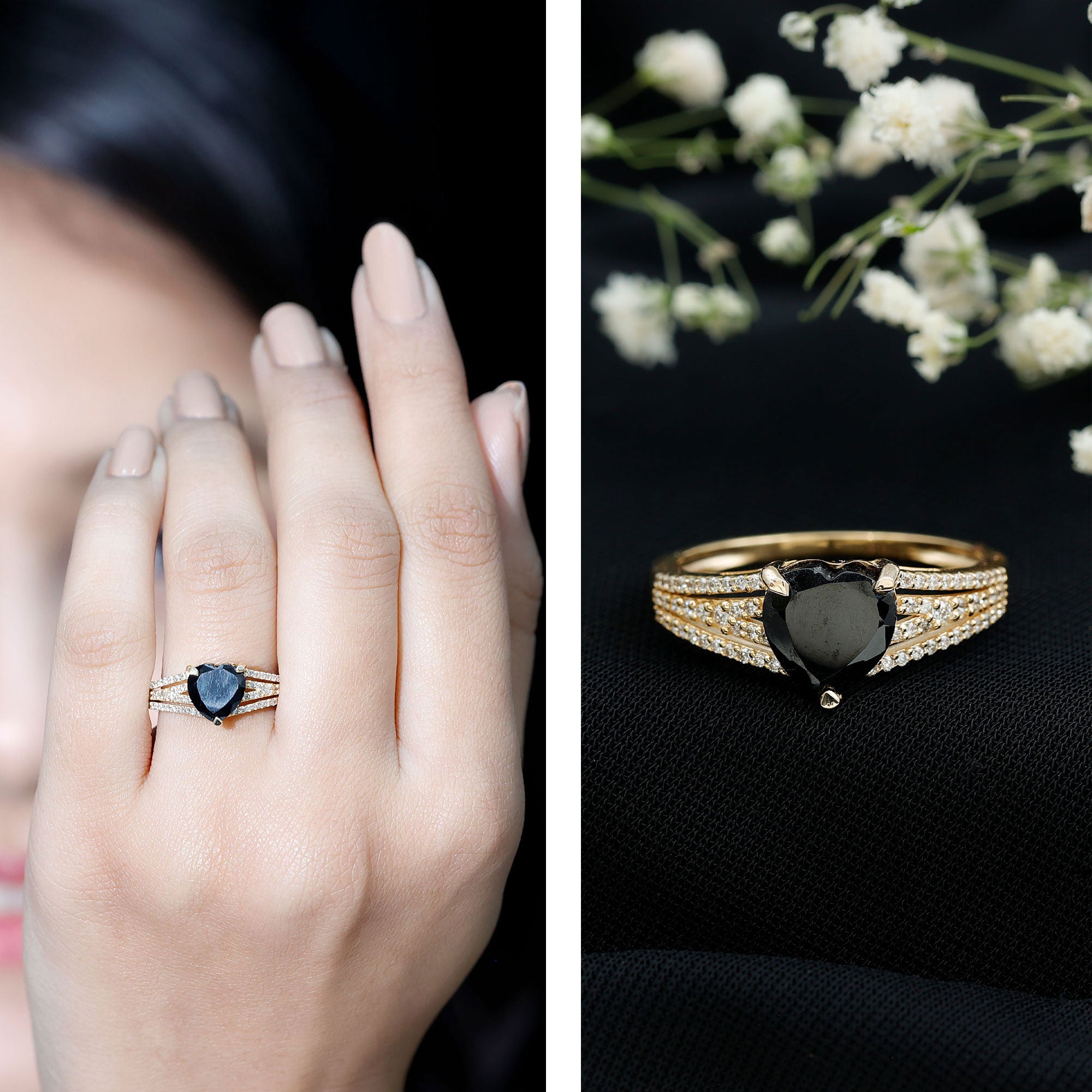 Black diamond rings carry a deep symbolic meaning. These durable rings represent your strong bonding and bold character.