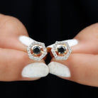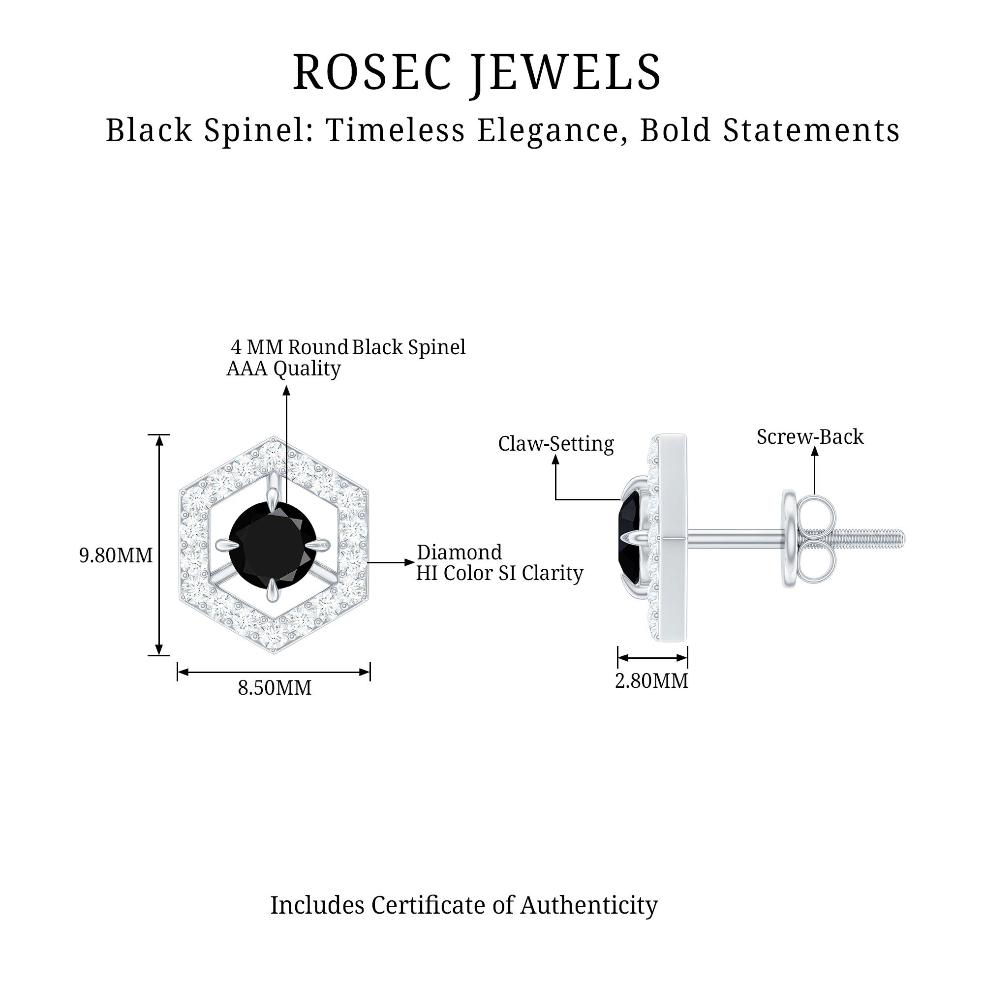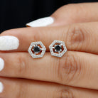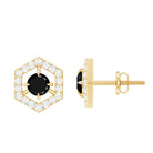 Feel unique with these Geometric Stud Earrings, adorned with Round Shape Black Spinel Gemstone set as a center stone with Diamond Accent. These Minimal Stud Earrings are crafted in Solid Gold