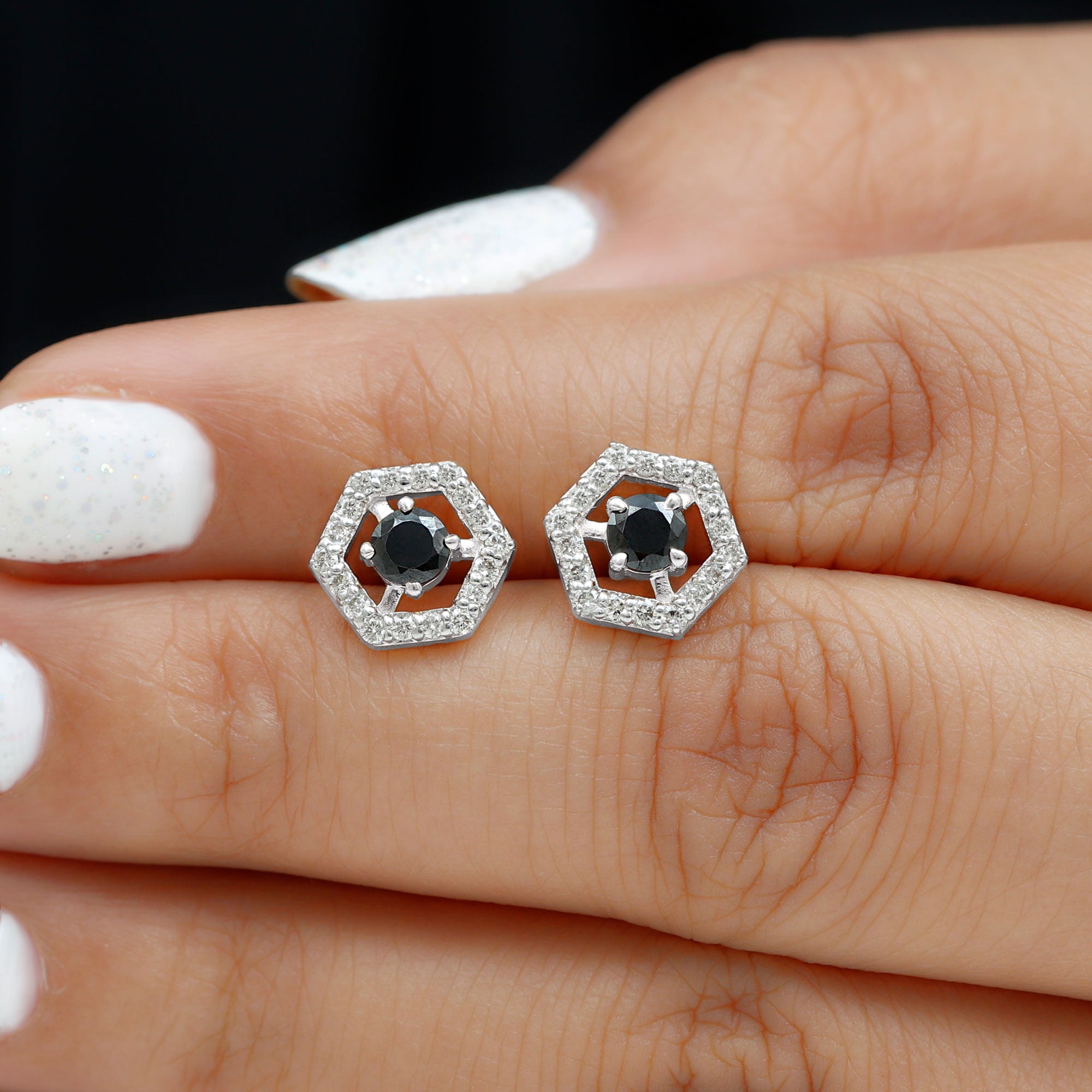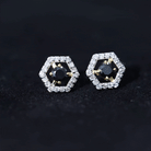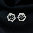 1 CT Minimal Black Spinel and Diamond Geometric Stud Earrings