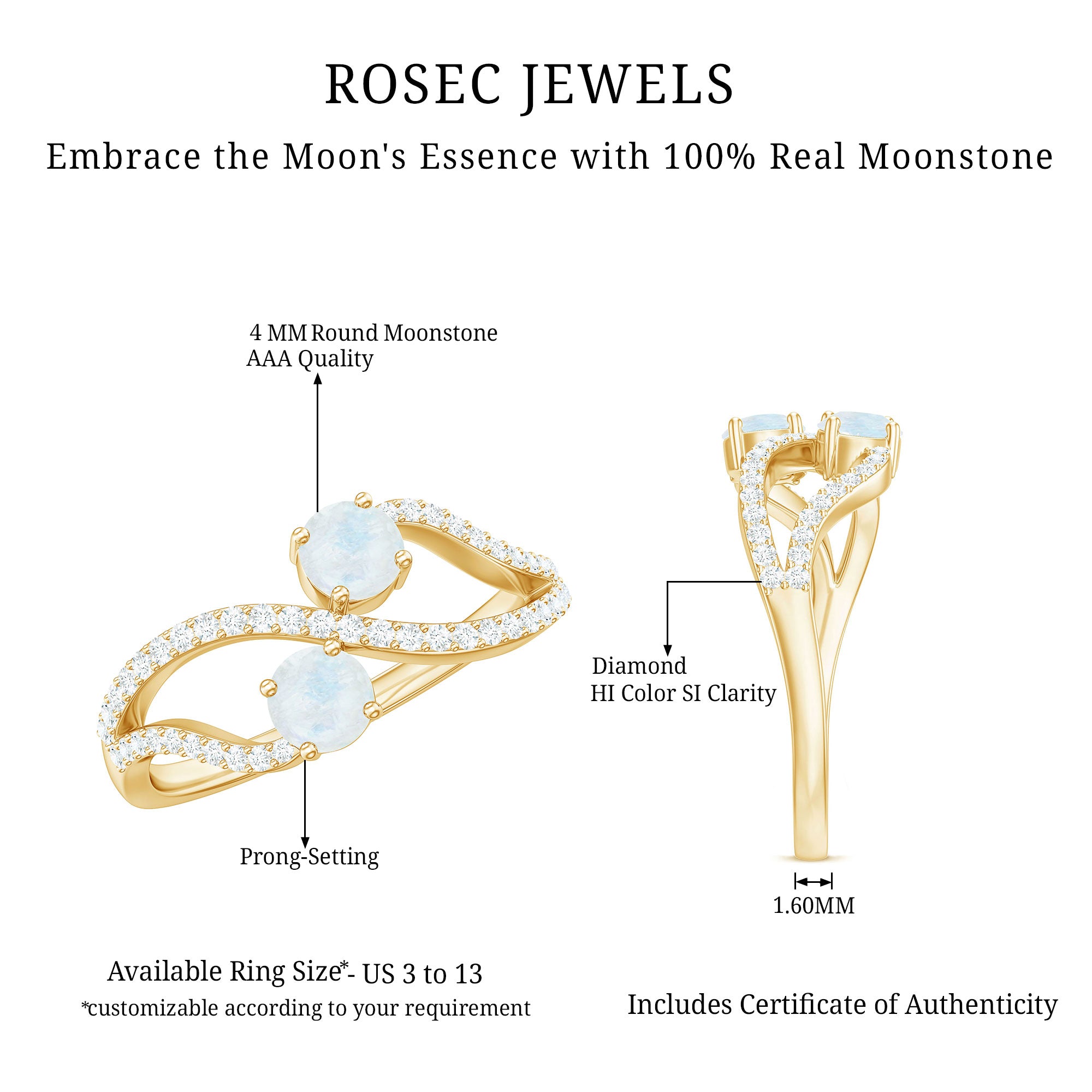 Flaunt Your Style with this Minimal Engagement Ring is crafted in solid gold which is embellished with Round Shape Moonstone and Diamond in a prong setting. This Gold Engagement Ring is available in solid gold.