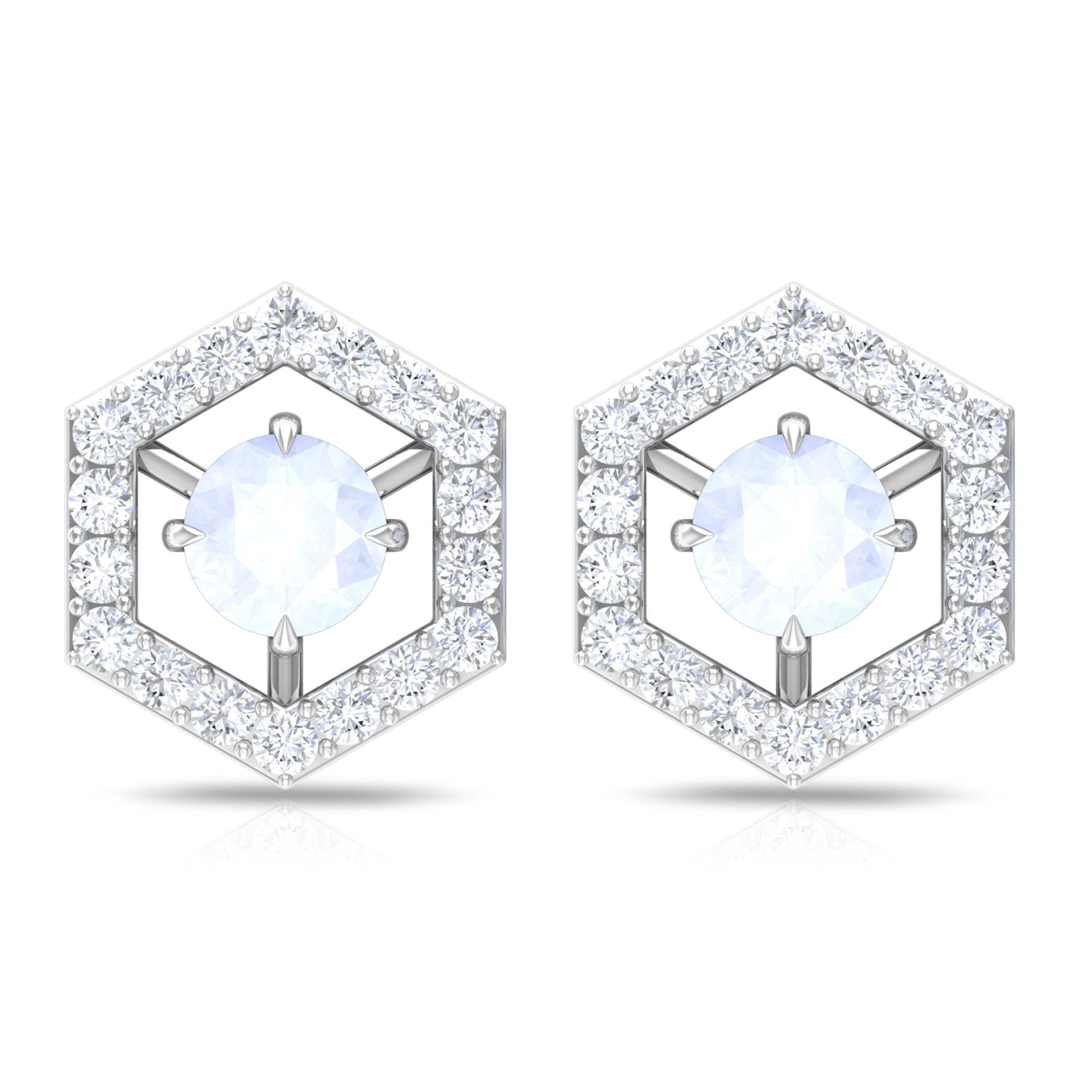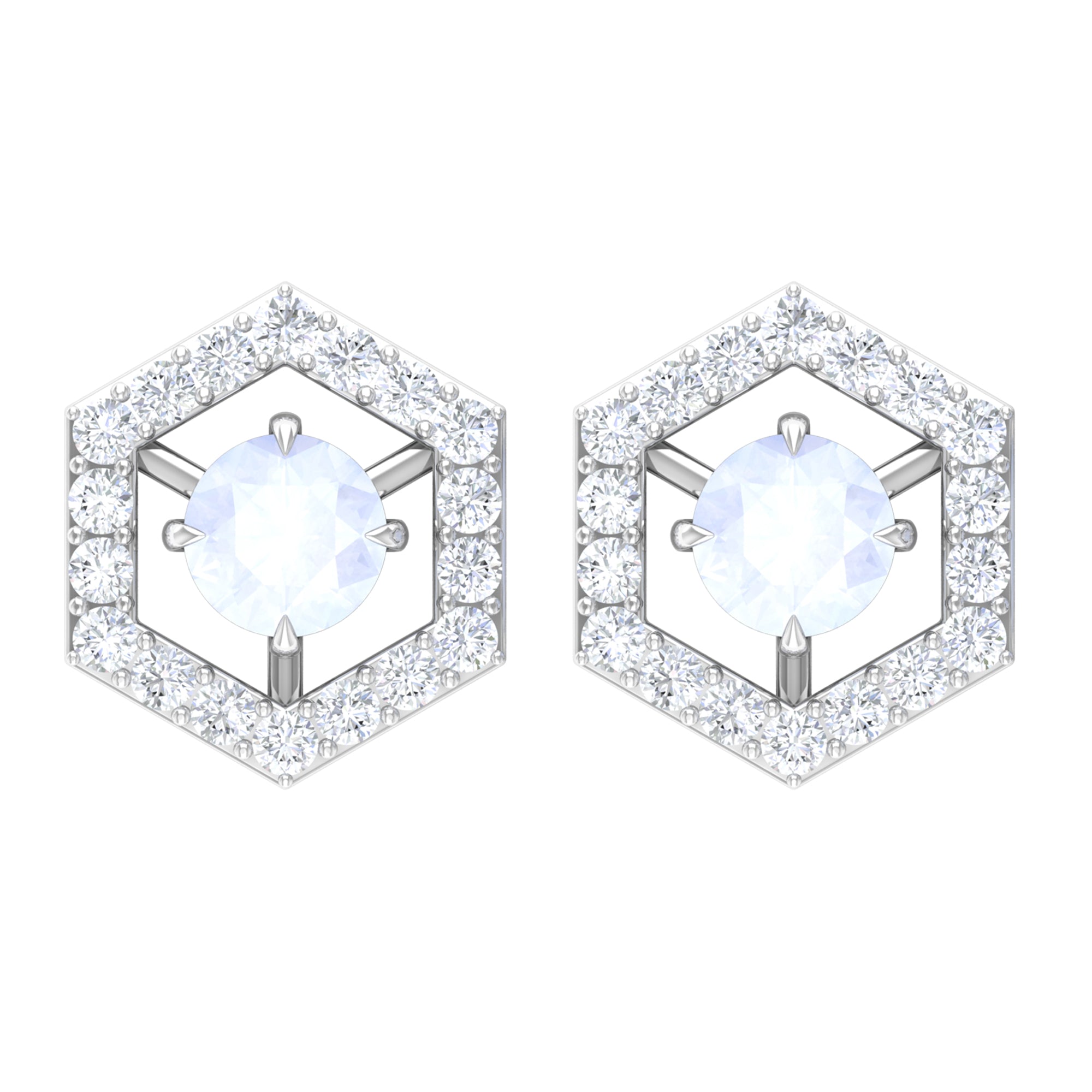 1 CT Minimal Moonstone and Diamond Geometric Stud Earrings