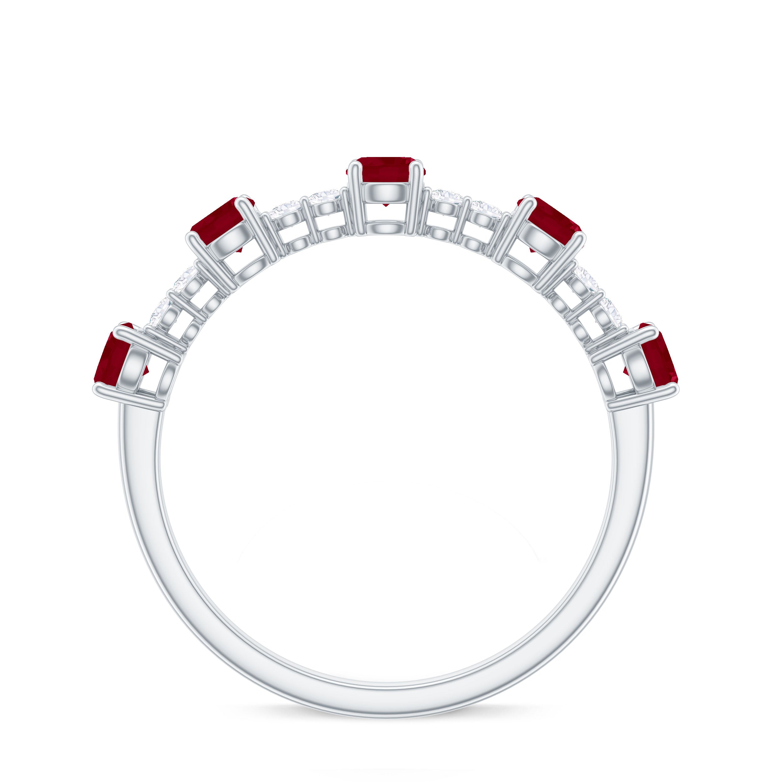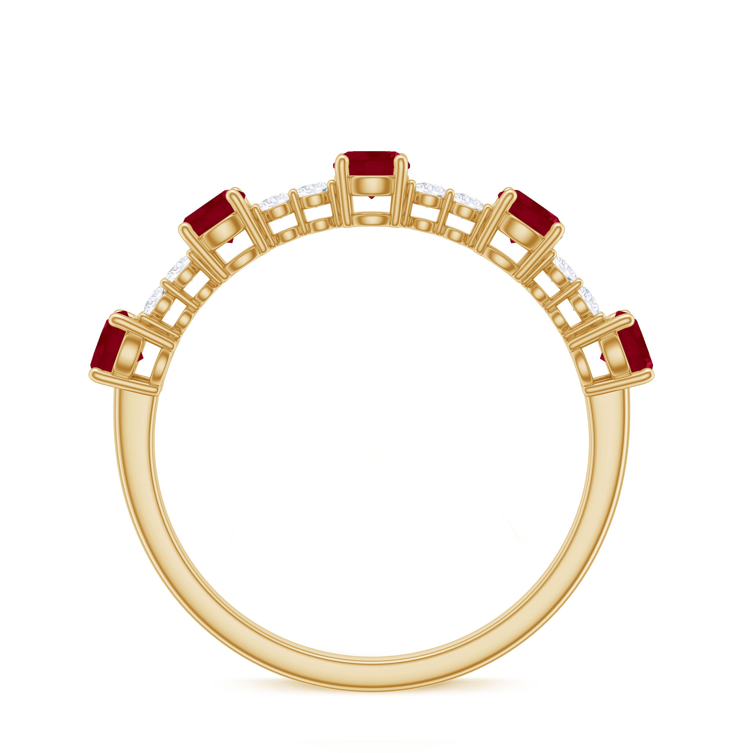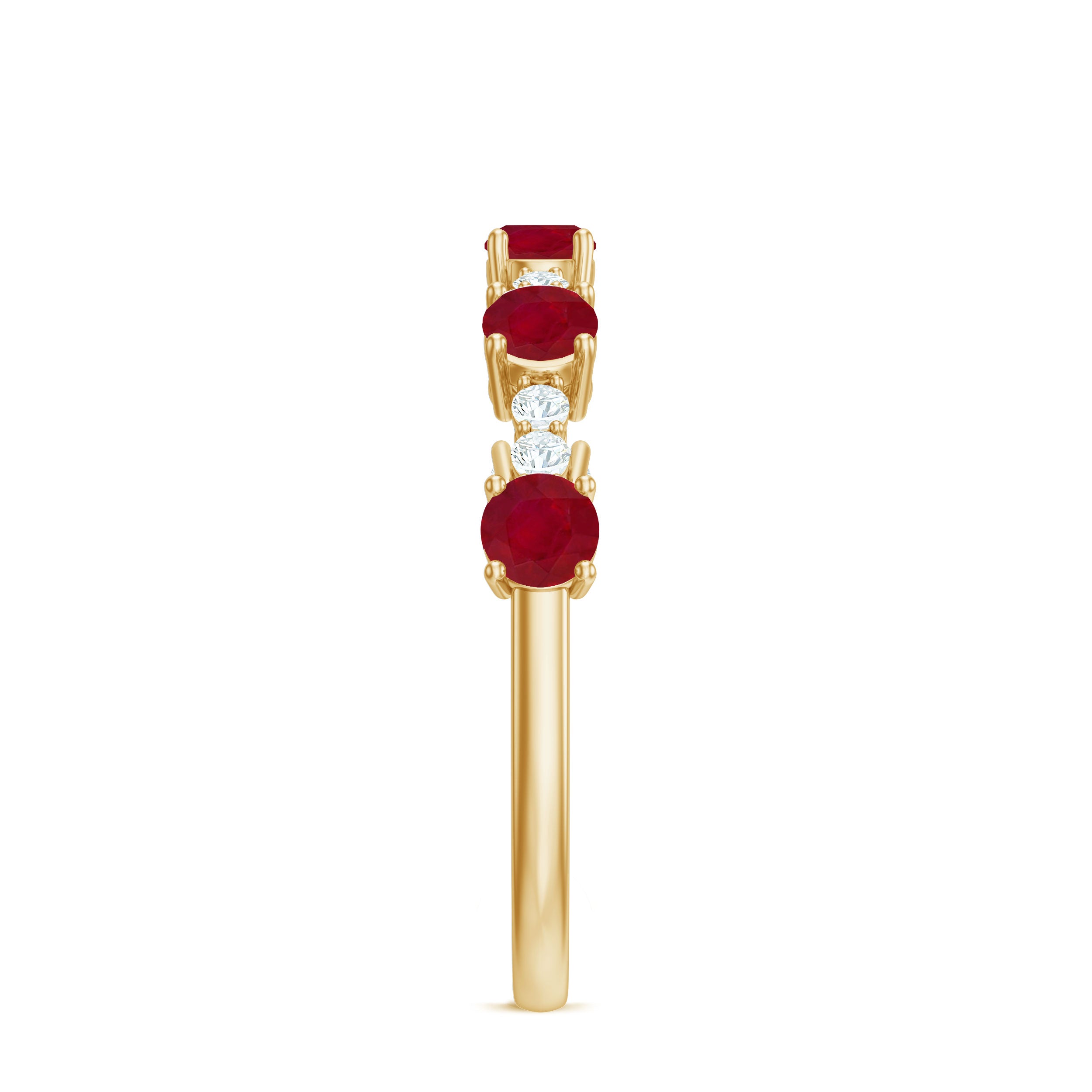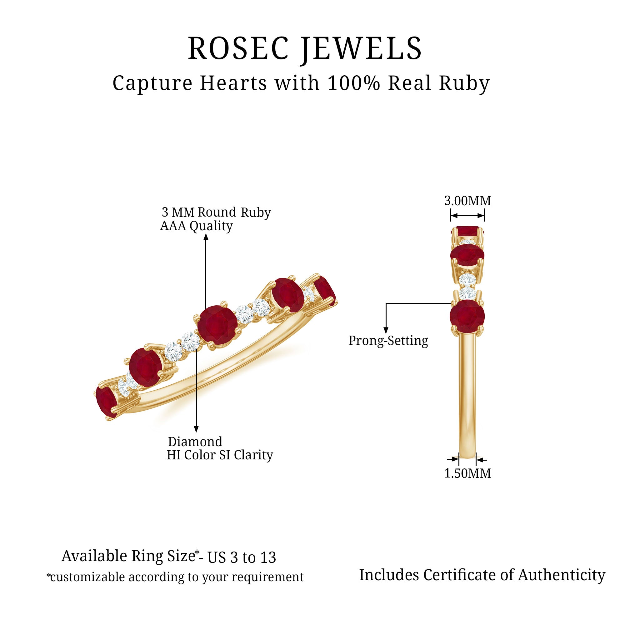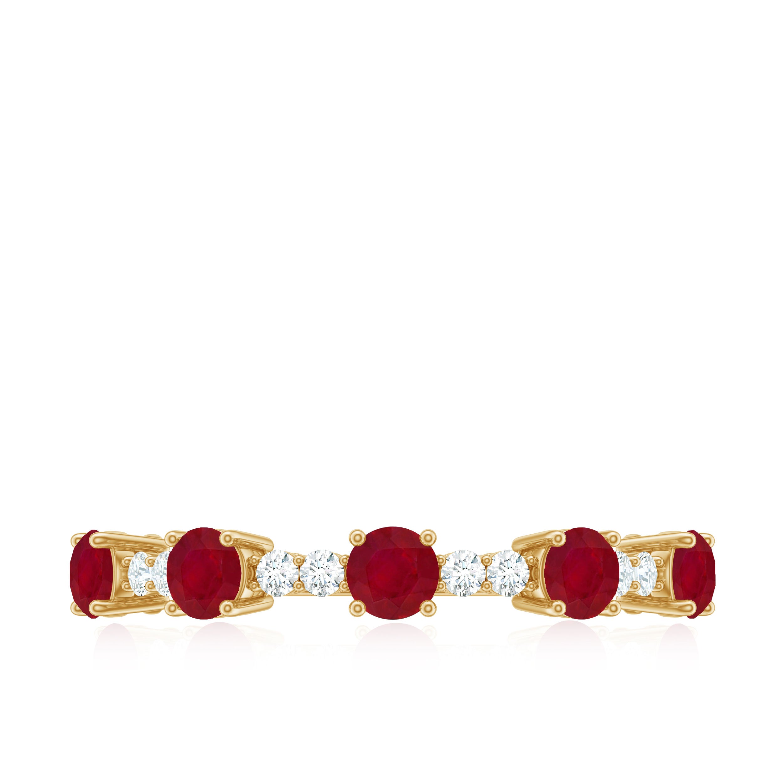 1 CT Minimal Round Shape Ruby and Diamond Stackable Ring