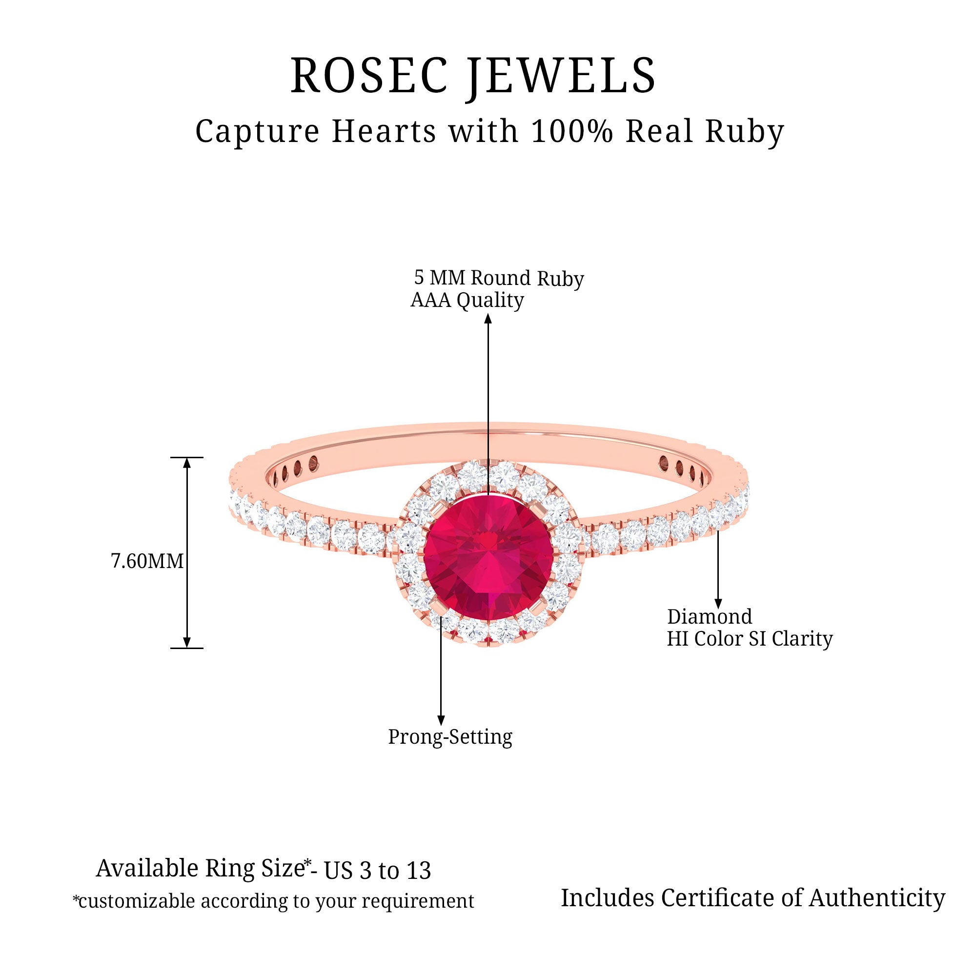 1 CT Minimal Ruby and Diamond Engagement Ring